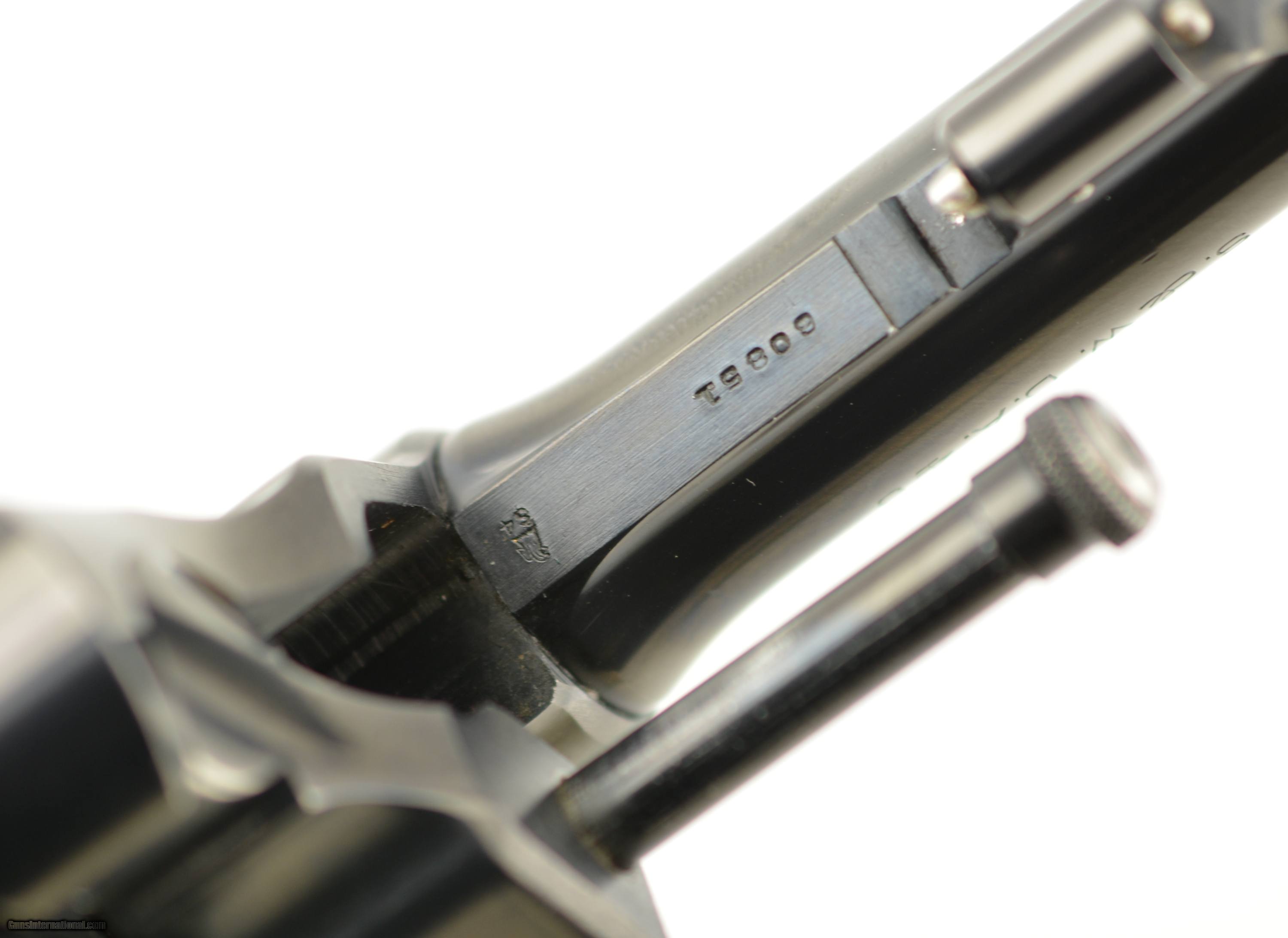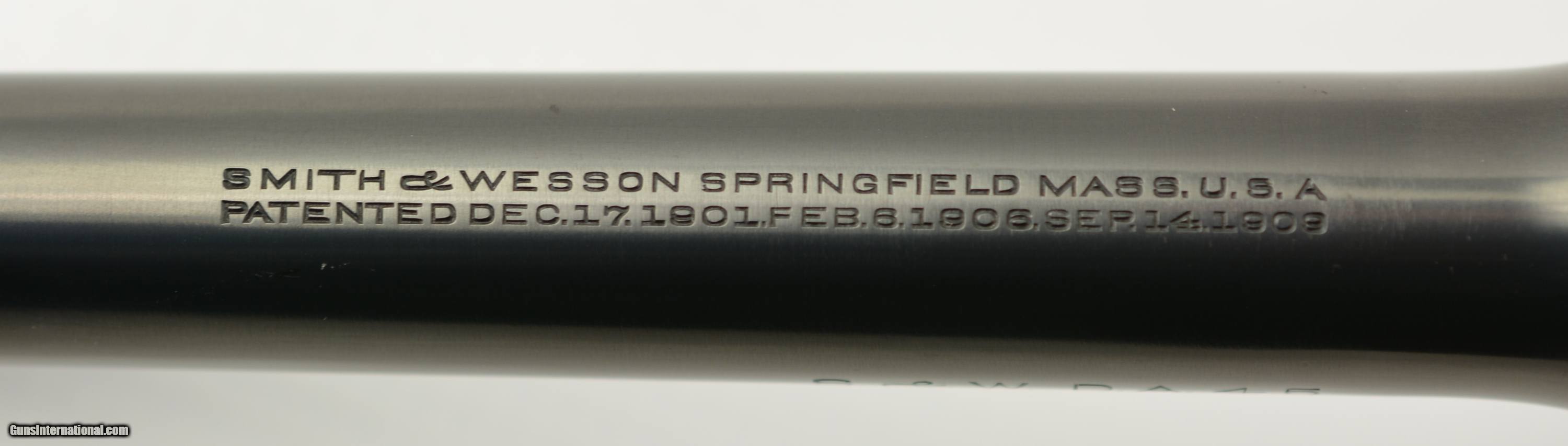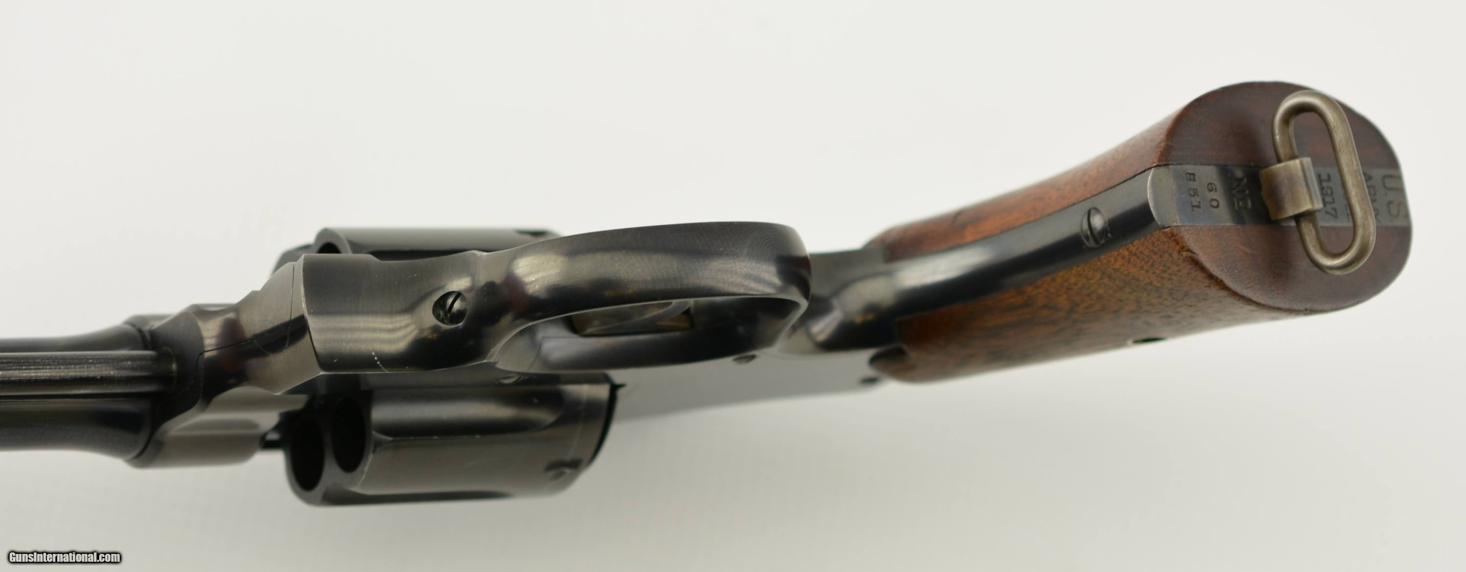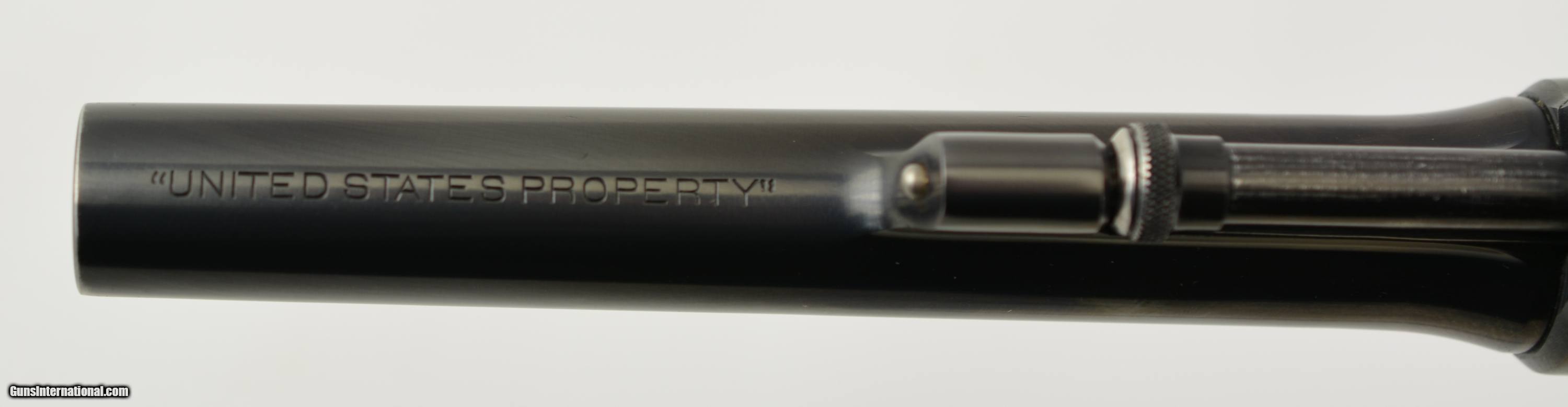 Description: Serial #60851, .45 ACP/Auto Rim, 5 1/2" barrel with an excellent, bright bore. This revolver has matching numbers on the frame, barrel, cylinder, yoke, and ejector, with the metal retaining 98-99% of the original blue finish. There is a mild turn-ring on the cylinder and very minor imperfections, but these are negligible. The hammer, trigger, and lanyard swivel likewise retain nearly all of their original color case-hardening. The smooth walnut grips are numbered to the gun, and have scattered small handling marks and minor surface blemishes in the original oil finish on both sides. The lock-up rock-solid, and the action functions flawlessly. The revolver is accompanied by a 2017 dated S&W factory letter that lists a shipping date of June 12th, 1918 to Springfield Armory. This is an exceptional, almost unused example of a Smith & Wesson Model 1917, and would be very difficult to upgrade from. FFL or C&R SOLD Curio/Relic: Yes Manufacturer: S&W Model: 1917 Serial Number: 60851 Caliber Info: .45ACP Gauge Info: .45ACP |