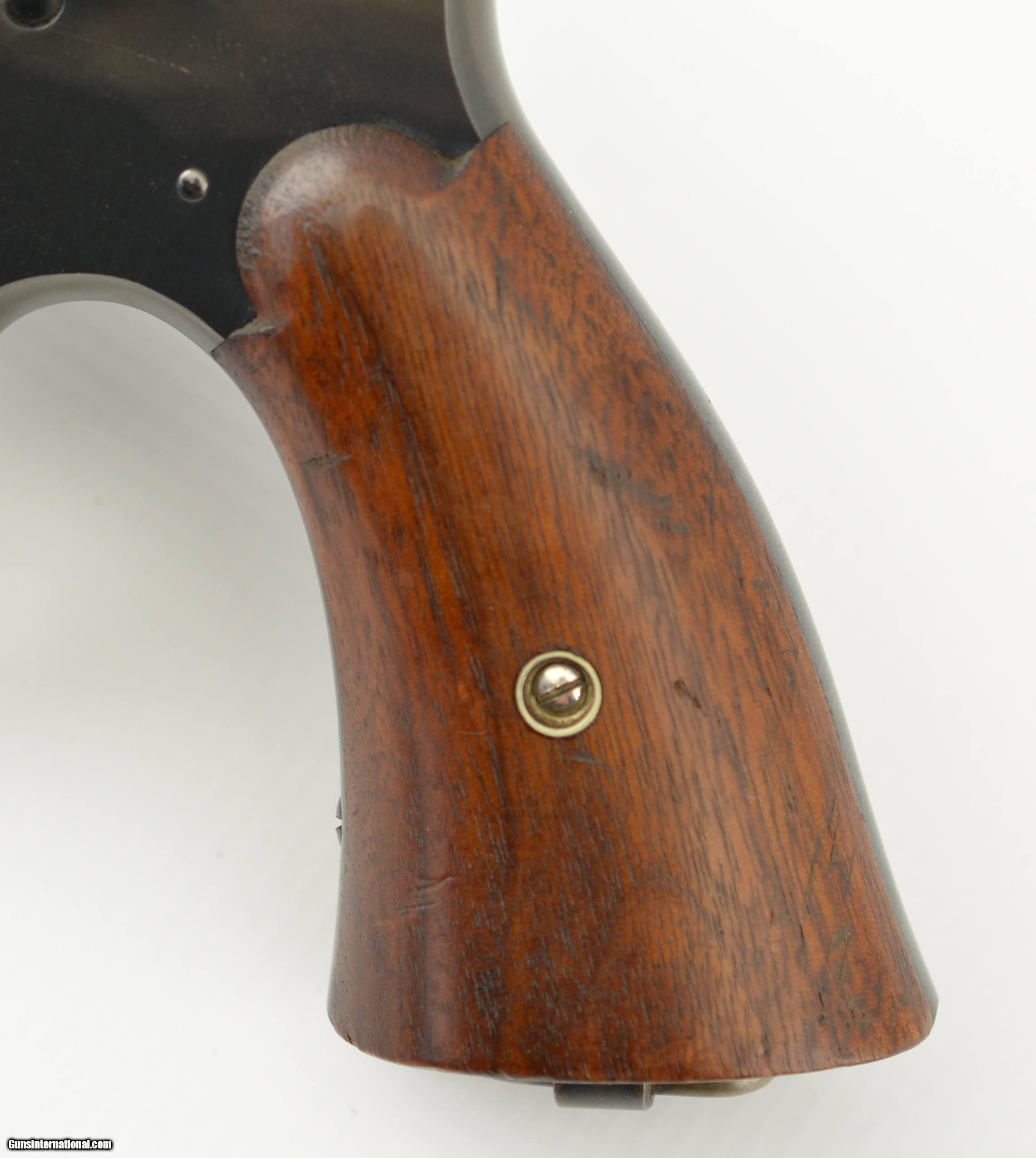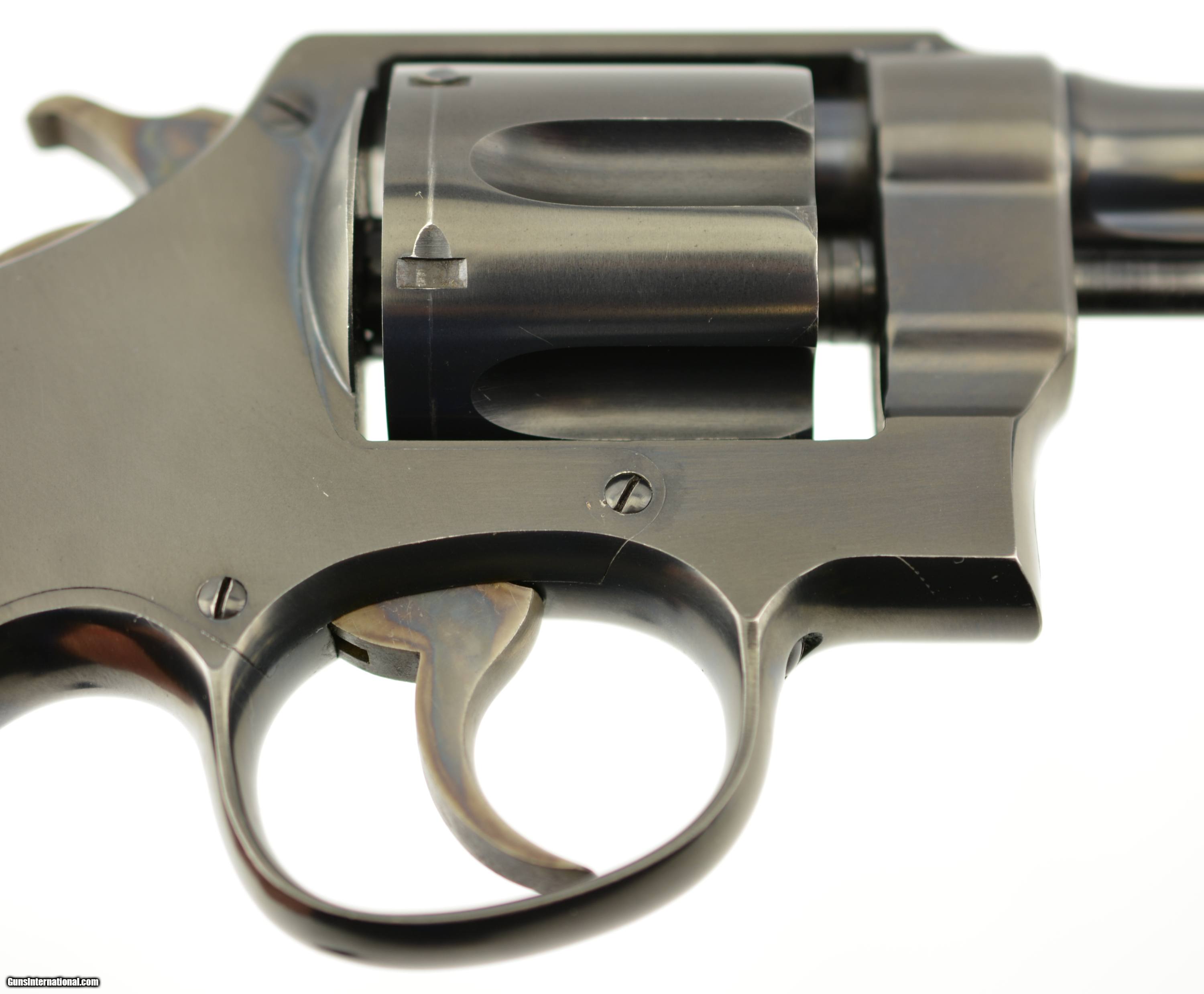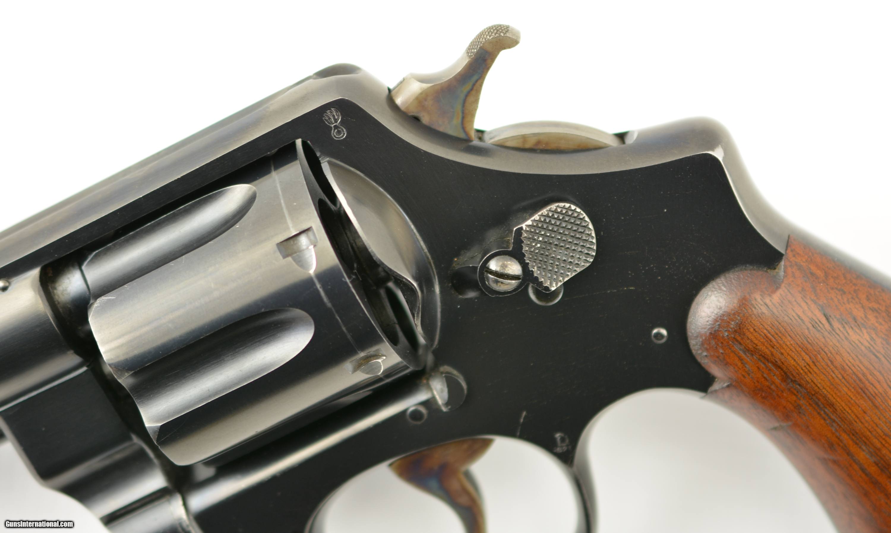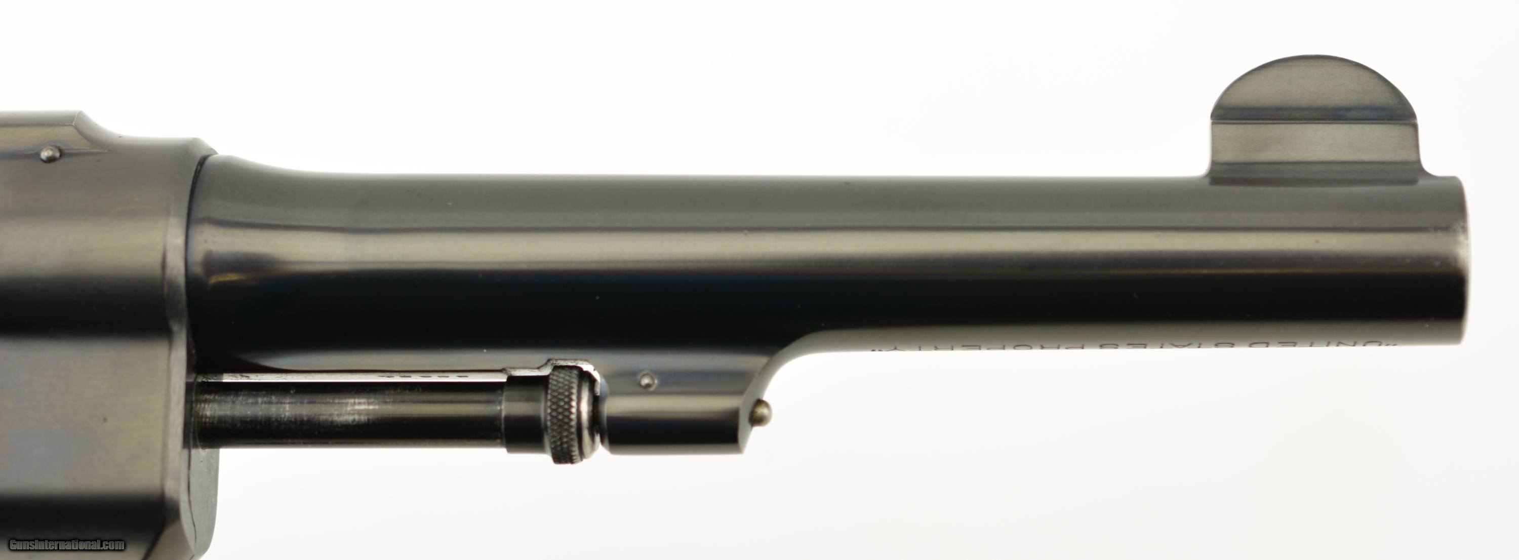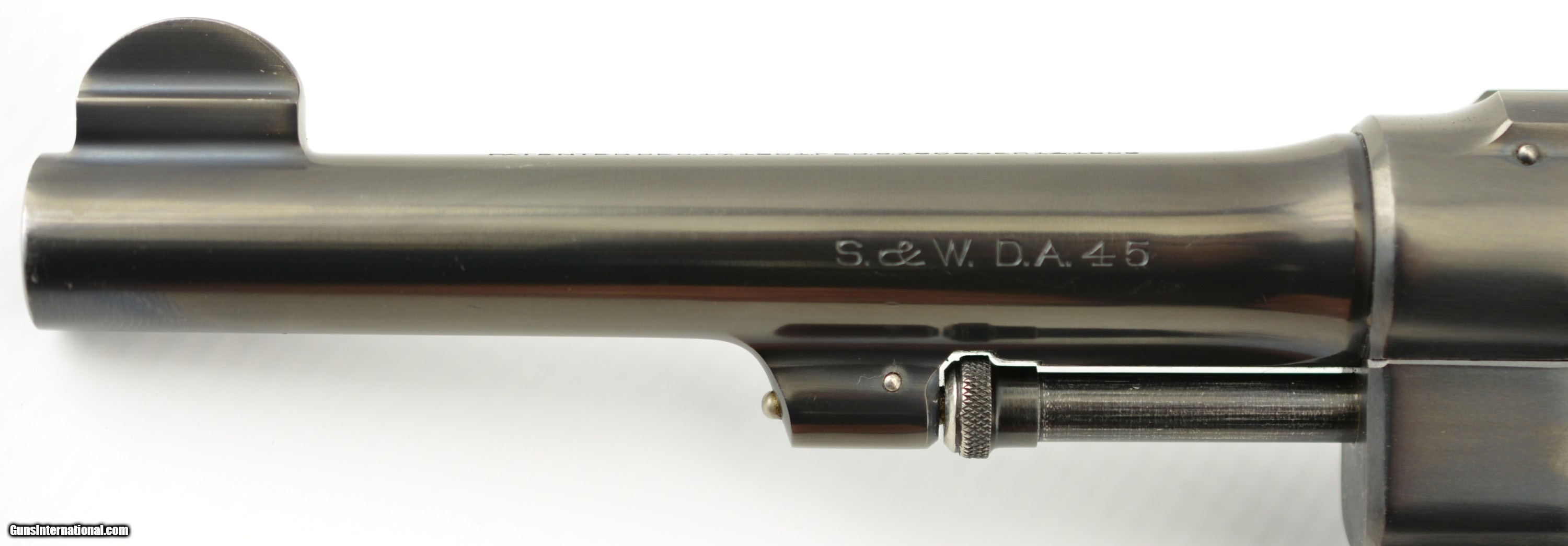 Description: Serial #60851, .45 ACP/Auto Rim, 5 1/2" barrel with an excellent, bright bore. This revolver has matching numbers on the frame, barrel, cylinder, yoke, and ejector, with the metal retaining 98-99% of the original blue finish. There is a mild turn-ring on the cylinder and very minor imperfections, but these are negligible. The hammer, trigger, and lanyard swivel likewise retain nearly all of their original color case-hardening. The smooth walnut grips are numbered to the gun, and have scattered small handling marks and minor surface blemishes in the original oil finish on both sides. The lock-up rock-solid, and the action functions flawlessly. The revolver is accompanied by a 2017 dated S&W factory letter that lists a shipping date of June 12th, 1918 to Springfield Armory. This is an exceptional, almost unused example of a Smith & Wesson Model 1917, and would be very difficult to upgrade from. FFL or C&R SOLD Curio/Relic: Yes Manufacturer: S&W Model: 1917 Serial Number: 60851 Caliber Info: .45ACP Gauge Info: .45ACP |