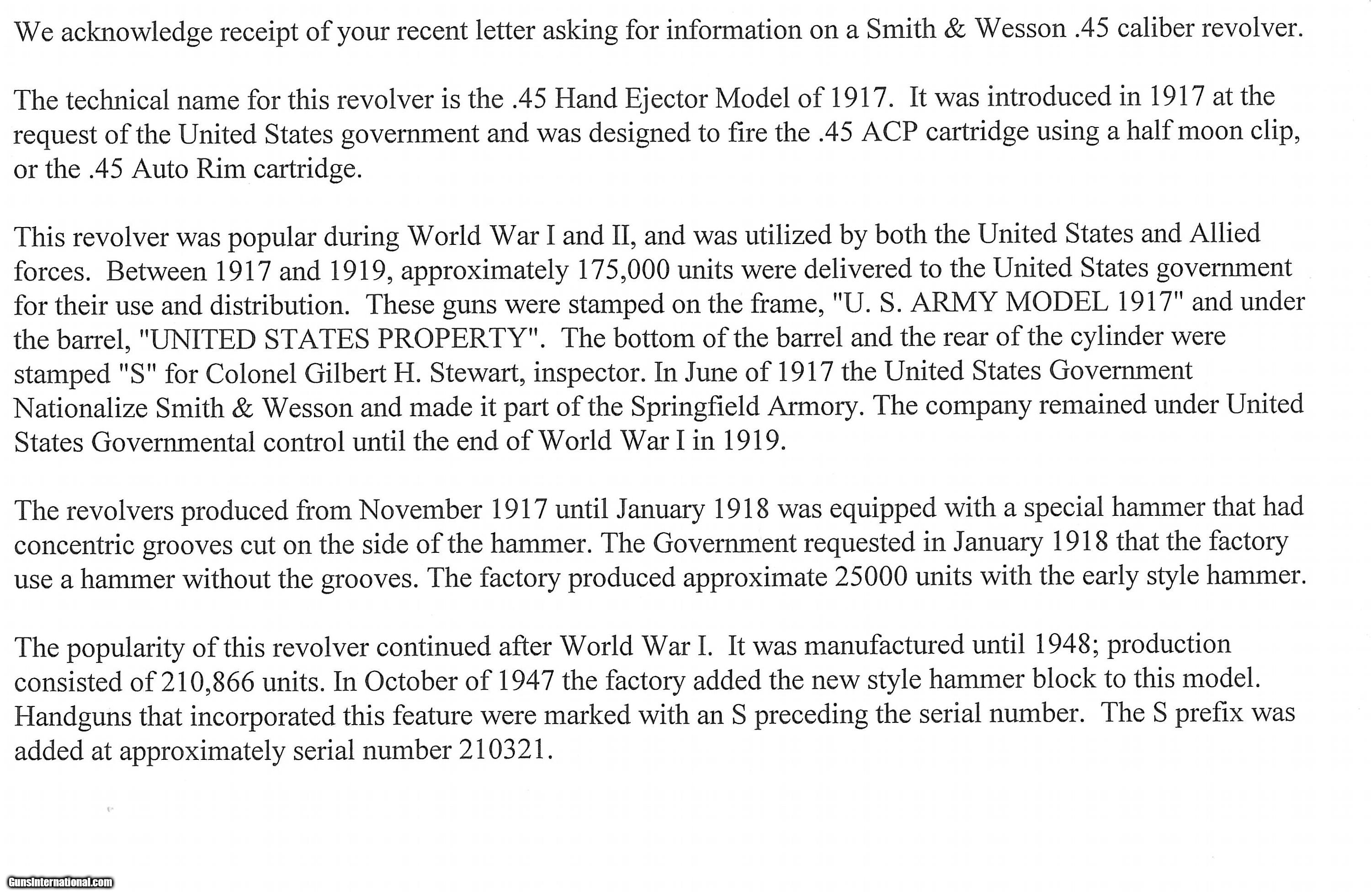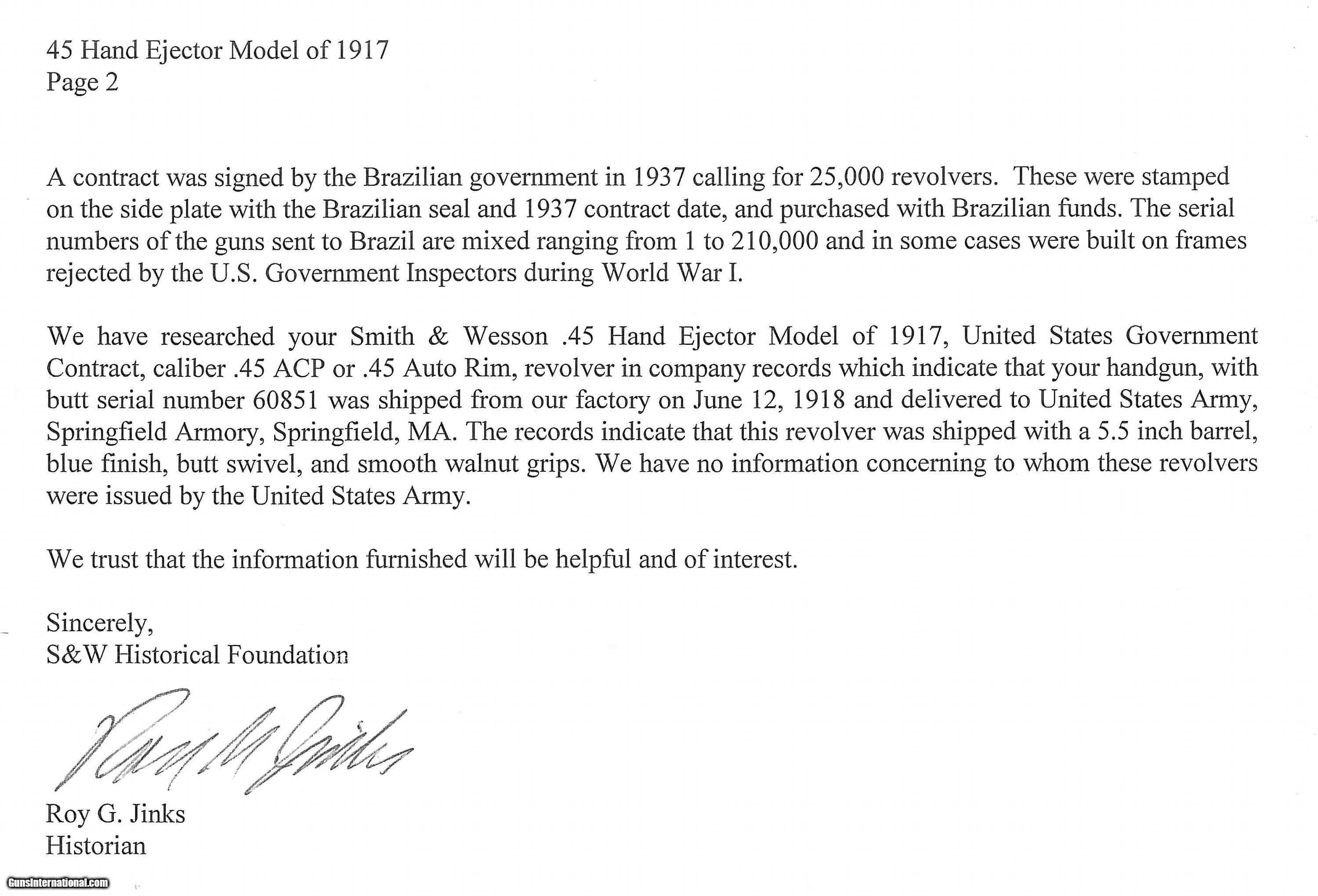 WW1 Smith & Wesson 1917 Revolver w/ Letter Very Good