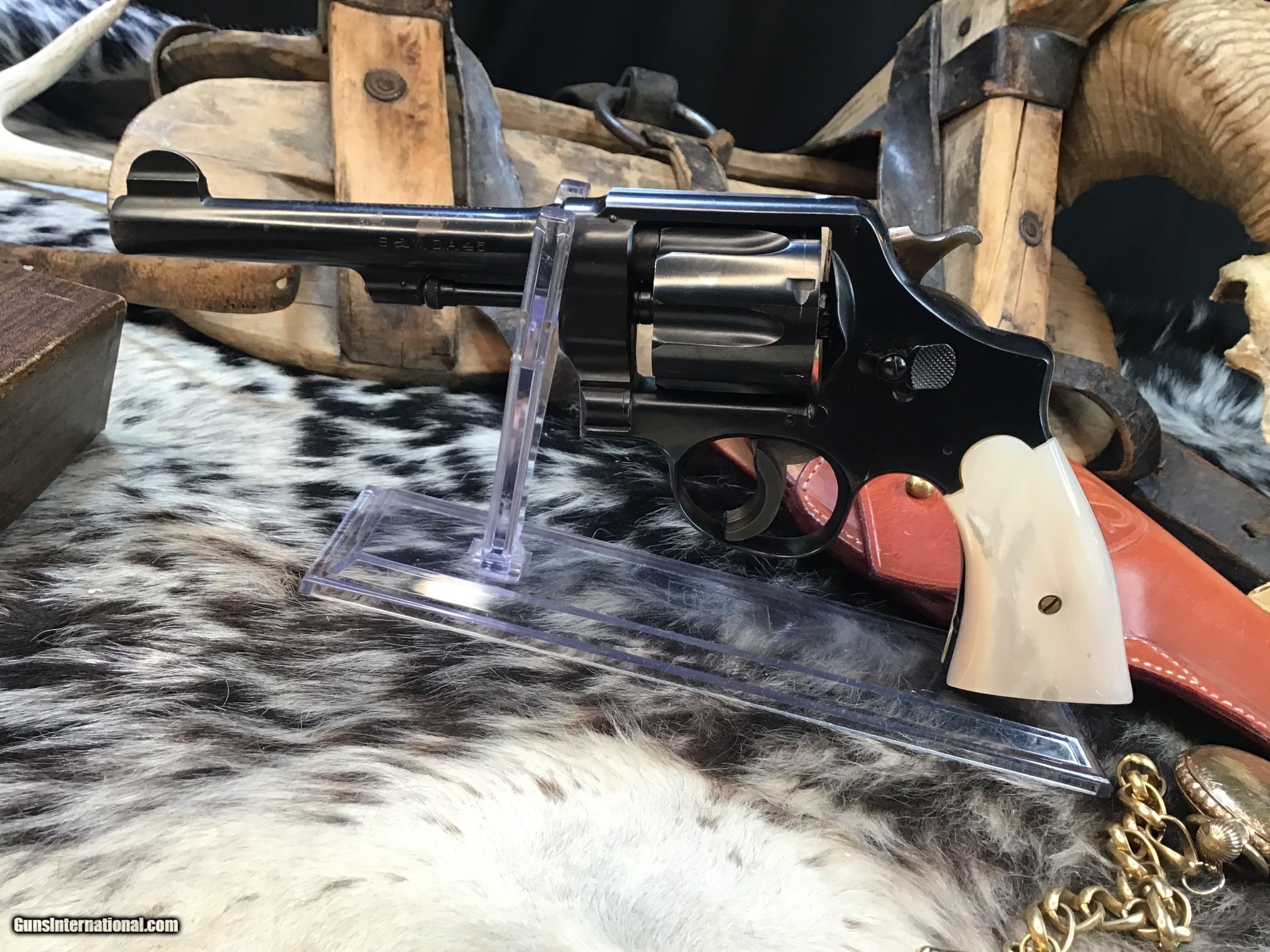 Smith & Wesson 1917 .45 ACP Revolver, US Property Marked, Mother of Pearl Grips. Trades Welcome