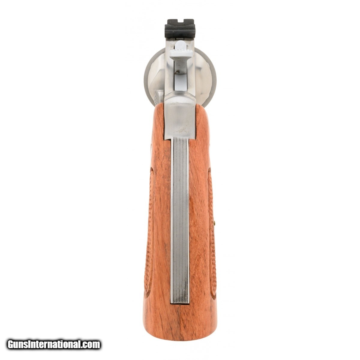 Description: " SN: AJR5833. Made circa 1980's. .41 Magnum with a 8 3/8"" barrel. Bore is bright with strong rifling. Stainless double action revolver. Metal is in very good condition with a scratch noted on the left side of the barrel. Reproduction Smith & Wesson grips are in near excellent condition. Overall very good condition. SOLD |