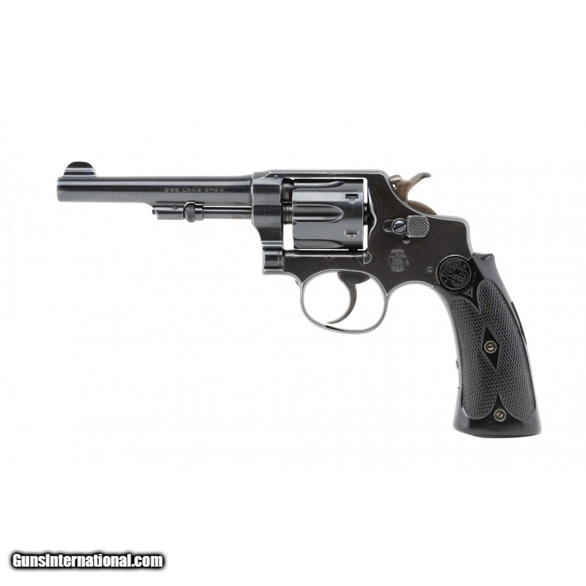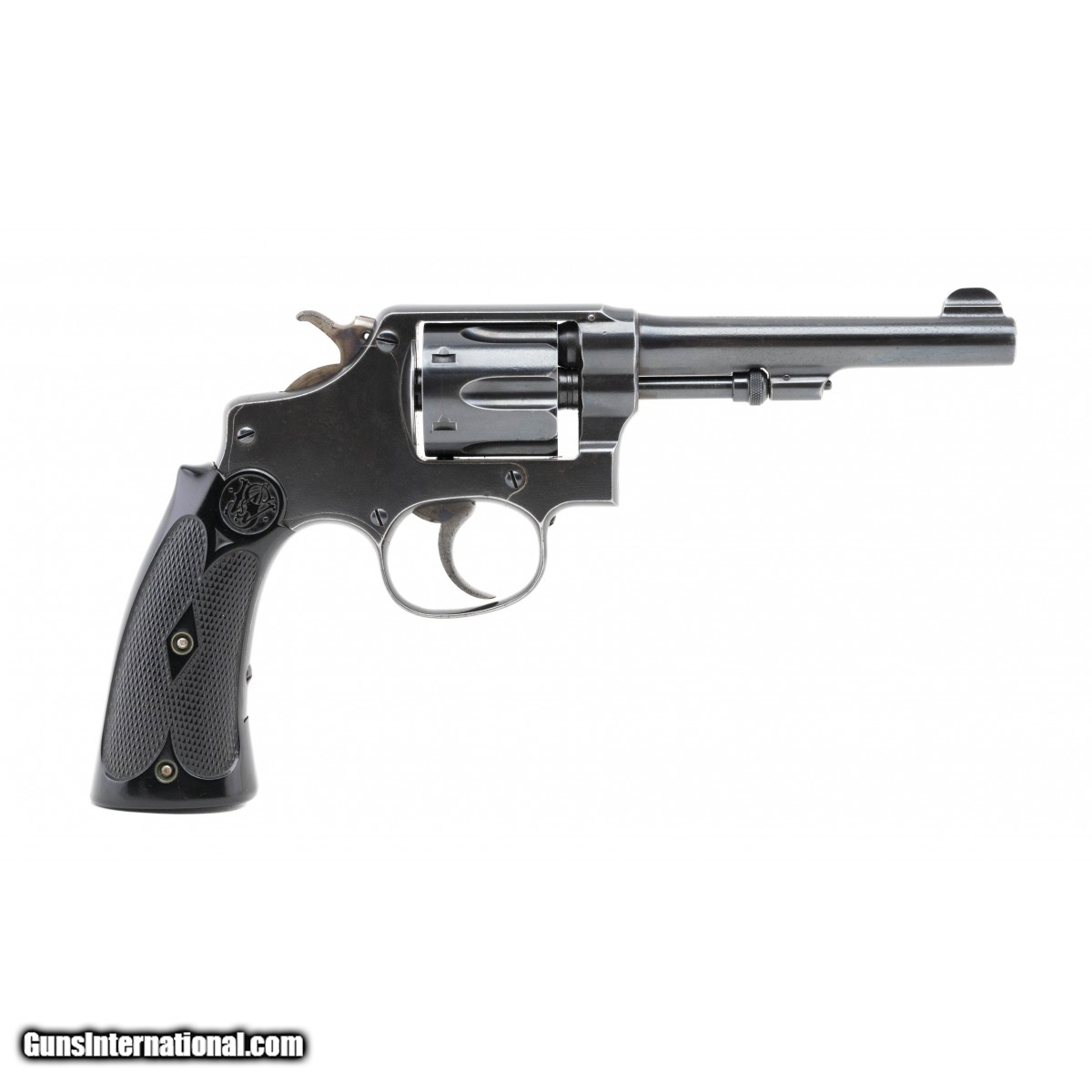 Description: " Pre-war revolver with 4"" barrel. Metal has a thinning blue turning to patina. Bore has strong rifling with some pitting. Grip have some chips on backstrap. Action works perfectly. Good overall condition. SOLD |
