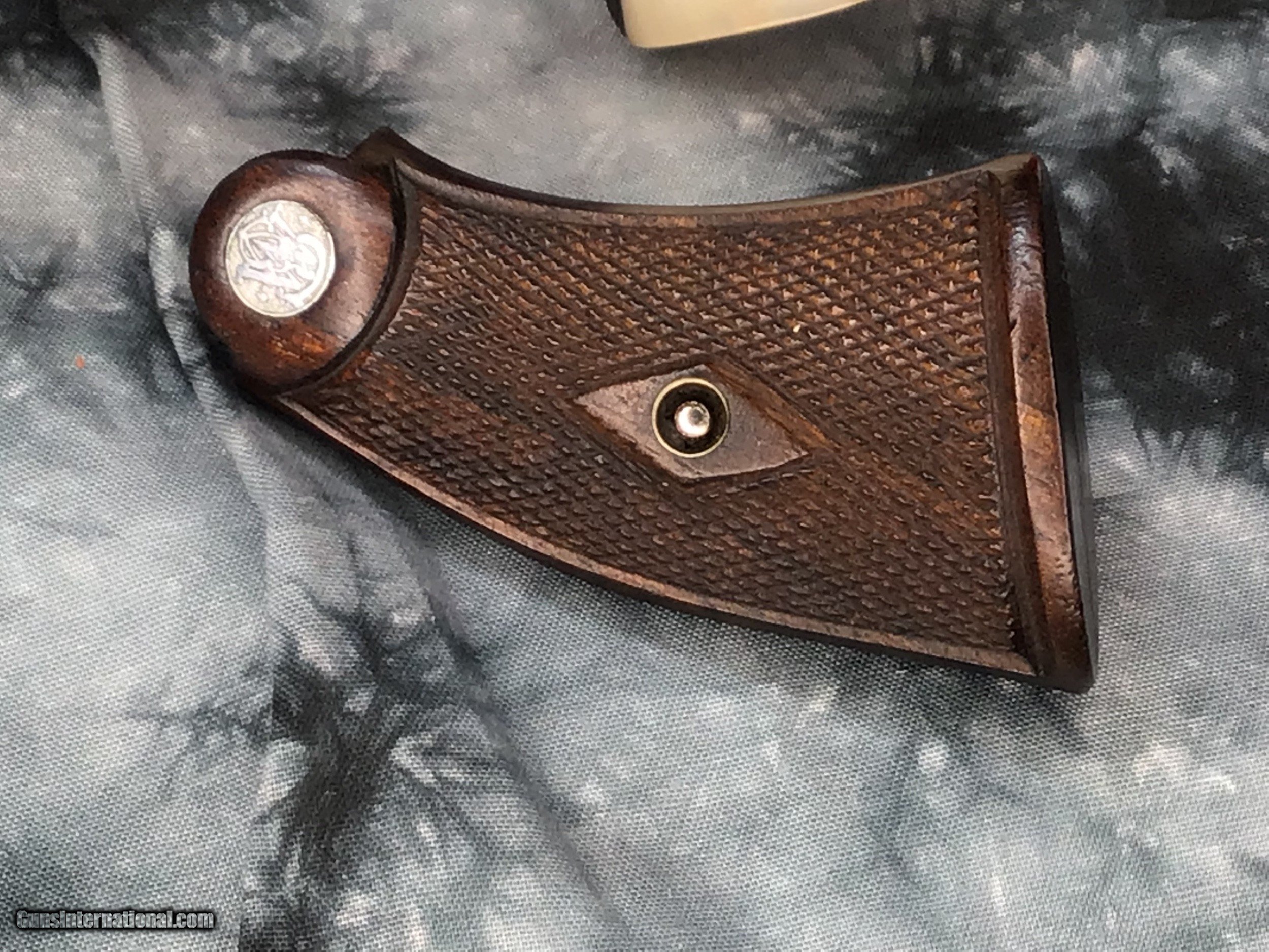 Description: Humpback Prewar 1939 Mfg. K-22 Outdoorsman First Model. .22 Long Rifle double action revolver built on K frame with 5 screws, 6 shot counterbored and fluted cylinder, Blued finish, 6 inch round pinned barrel with no rib, Patridge front sight, K Target frame with floating firing pin and flat faced hammer, Circassion Walnut grips with small Silver medallions on a square butt frame, non - shrouded ejector rod, smooth semi round top strap with adjustable rear sight for elevation and windage, Excellent original finish in 98% or better condion. Wearing Mother of Pearl grips with factory Walnut grips in box. Comes in original Red picture box with sight adjustment tool and brushes. Two sets of grips: walnut Circassion grips with medallions and Mother of Pearl grips. Excellent quality pre-war K-22 Outdoorsman, First model. Add 3% if paying with credit card. Free shipping for US Veterans. God Bless America from a proud American, and a Viet Nam Vet , thankful for our freedoms.. paid for by the Blood ,Sweat and Tears of our brave men and women in uniform. Ten Below Firearms is a Veteran owned and operated business. We specialize in out of production models of high quality firearms. We love to ship! We ship to all states where legal, just give us a call! Handguns normally ship for $35 and Long guns for $45 up to $75 for extra length long guns. That's 2-3 day USPS Priority shipping, Delivery conformation and with tracking number. Optional Postal insurance is additional $1.70 per $100 and highly recommended. We are OPEN BY APPOINTMENT ONLY FOR IN PERSON VISITS, We trade, sometimes. Layaway:If needed we offer a 60 day layaway program. Terms, 1/3 of purchase price down, 1/3 due in 30 days, and the final third to include card fees and shipping due at 60 days. Funds are non transferable and non refundable .Layaway is not available on negotiated prices. SOLD Curio/Relic: Yes Handgun Caliber: .22 Long Rifle Manufacturer: Smith & Wesson Model: K-22 Outdoorsman 1st Model Serial Number: 665797 Barrel Length: 6 inch Chambers: 6 Condition: Excellent Metal Condition: Excellent Wood Condition: Excellent Bore Condition: Excellent Barrel Type: Round Action: DA/SA Triggers: Grooved Target Finish: Blued Sights: Adjustable Manufacture Date: 1939 Extras: Tools Case: Box Item Location: Mn |