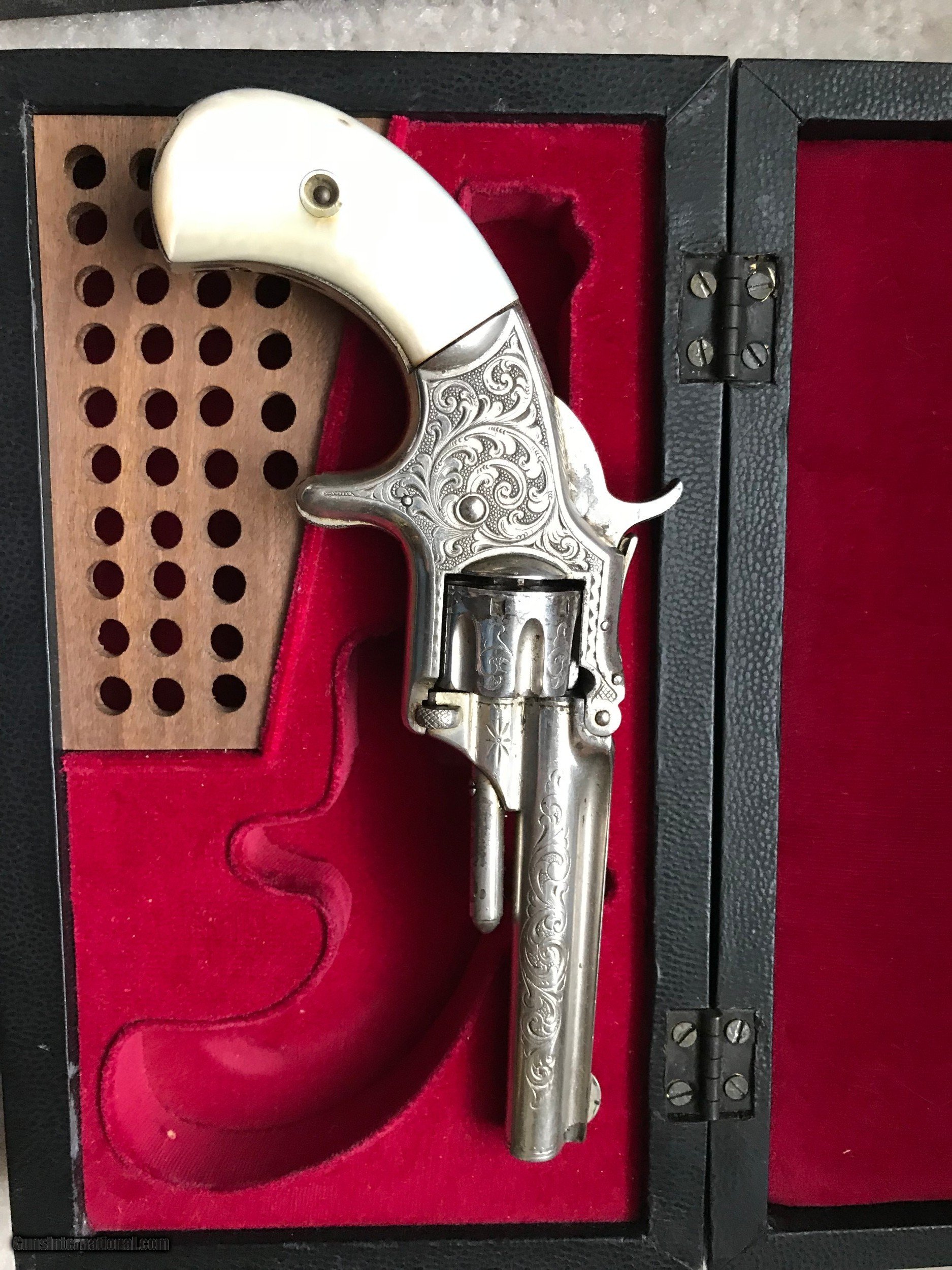 Pair of Smith & Wesson Model 1 Third Issue Engraved Nickel Revolvers 22 Short Rimfire