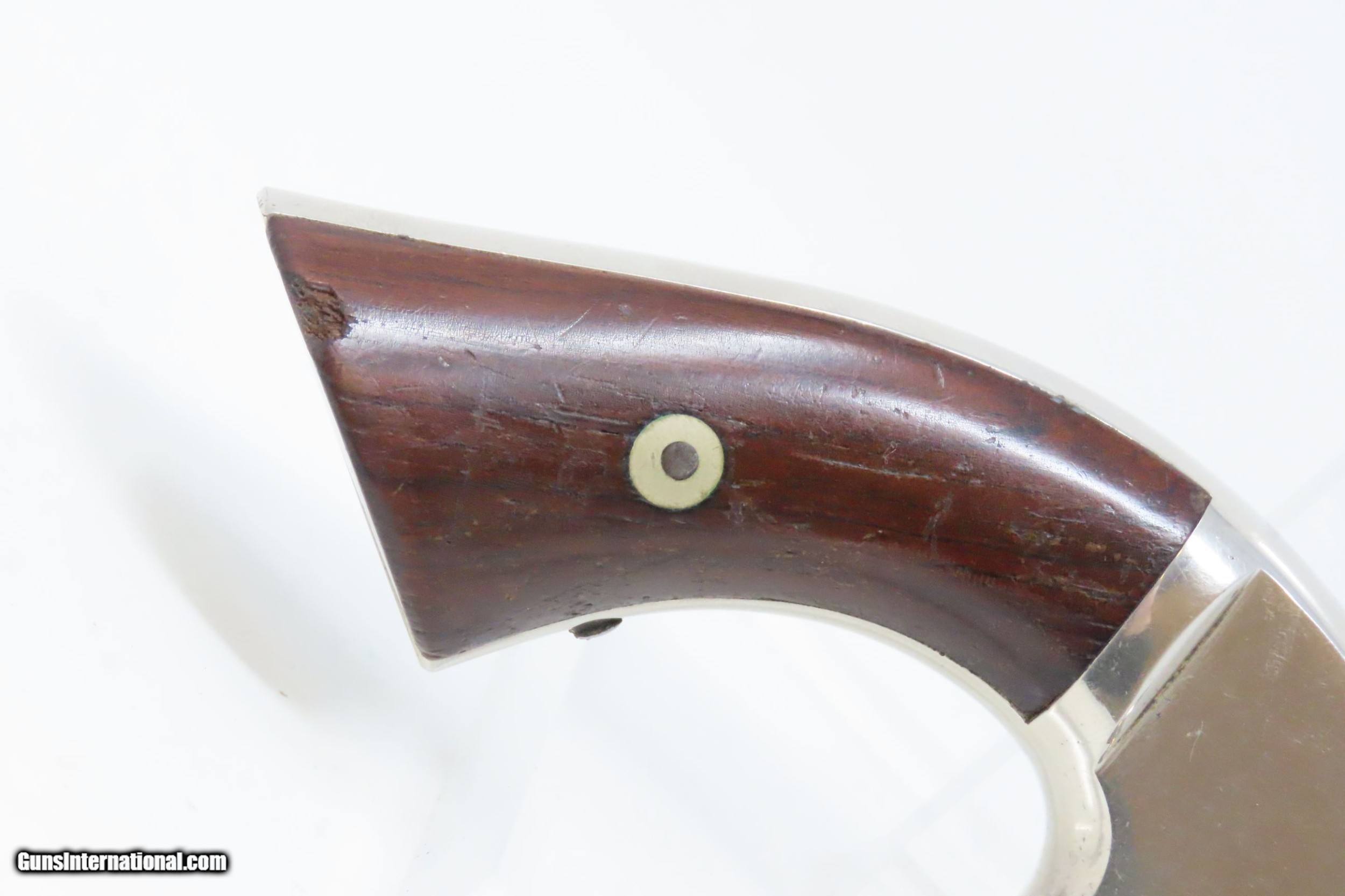 Description: Rare “2D QUALITY” SMITH & WESSON No. 1 Second Issue .22 REVOLVER Antique S&W ROLLIN WHITE “Bored Through Cylinder” Patent Here we present an antique Smith & Wesson Model No. 1 Second Issue Revolver with the Rare “2D QUALITY” marking. The No. 1 Second Issues were manufactured circa 1860 to 1868 in Springfield, Massachusetts. Approximately 117,000 were made with only 4,402 bearing the quality marking due to some flaw or other—usually in the casting of the frame in our experience. The No. 1 was Smith & Wesson’s first metallic cartridge firearm. It utilized the idea of the “bored through cylinder”, which was patented by Rollin White and subsequently exclusively licensed by Smith & Wesson. The overall condition is very good. This piece was refinished in nickel at some point. On the right side of the frame you can observe the circular aberration which we believe is the reason this was marked as second tier quality. The action (hammer/trigger) is excellent. The cylinder advances but the lockup is weak due to the design. The rosewood grips are in great shape. Own the original! This is a legitimate antique and not a reproduction. Barrel is 3-1/4 inches. Caliber: .22 Short Rimfire (Black powder) Overall condition as seen in photos. Very Fast. Very Safe. FREE SHIPPING WORLDWIDE. Delivered directly to your door by express mail! Guaranteed AUTHENTIC & Includes CERTIFICATE OF AUTHENTICITY. ancestryguns $1600 #217472 SOLD Antique: Yes |