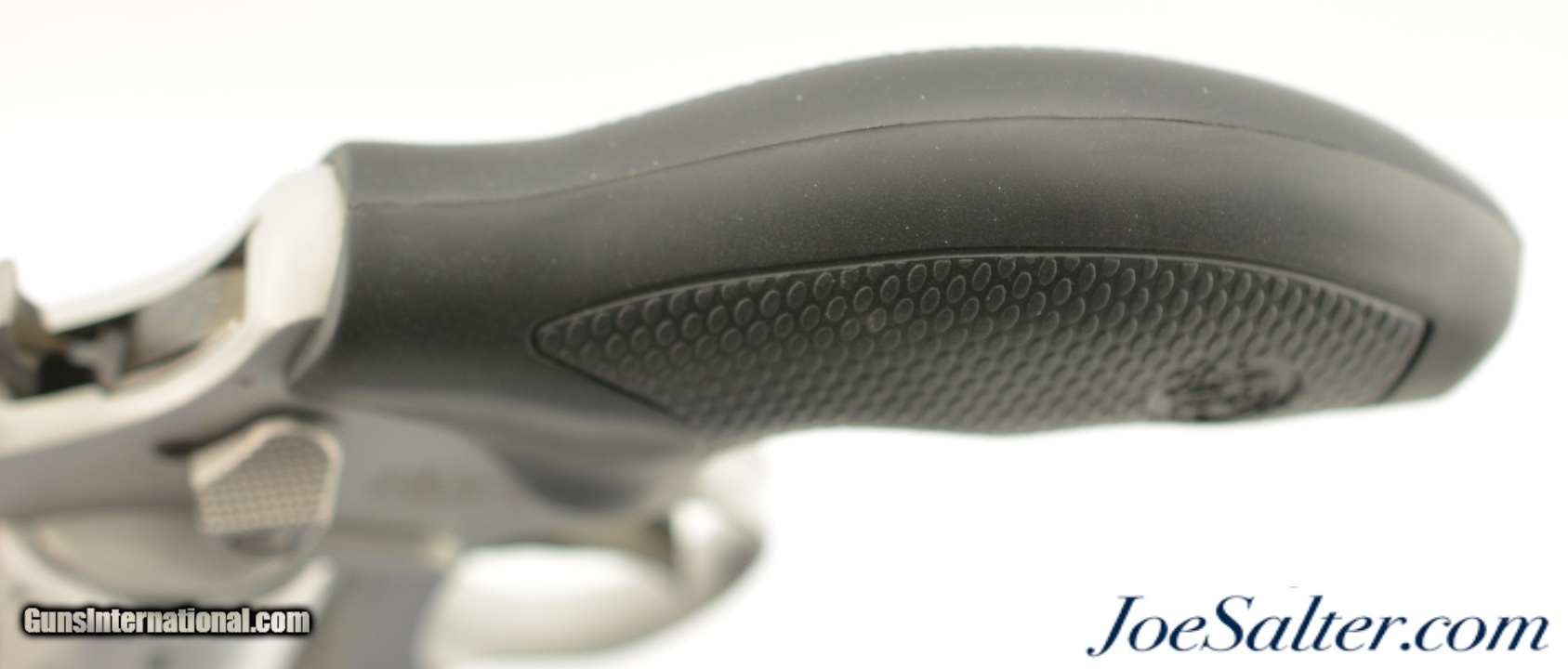 Description: Serial #DRD5021, .22 LR, 3" barrel with an excellent, bright bore. This is a lightly used, modern, alloy frame S&W revolver that has practically all of the original matte silver finish remaining, with only a faint turn-ring on the cylinder. The hammer and trigger retain their original color case-hardening, and the round-butt synthetic grip is in practically unused condition. The revolver is housed in the original blue cardboard box, with papers, gunlock, and safety lock keys. This is a great little, modern Kit Gun, and is in excellent, like new condition. FFL SOLD |