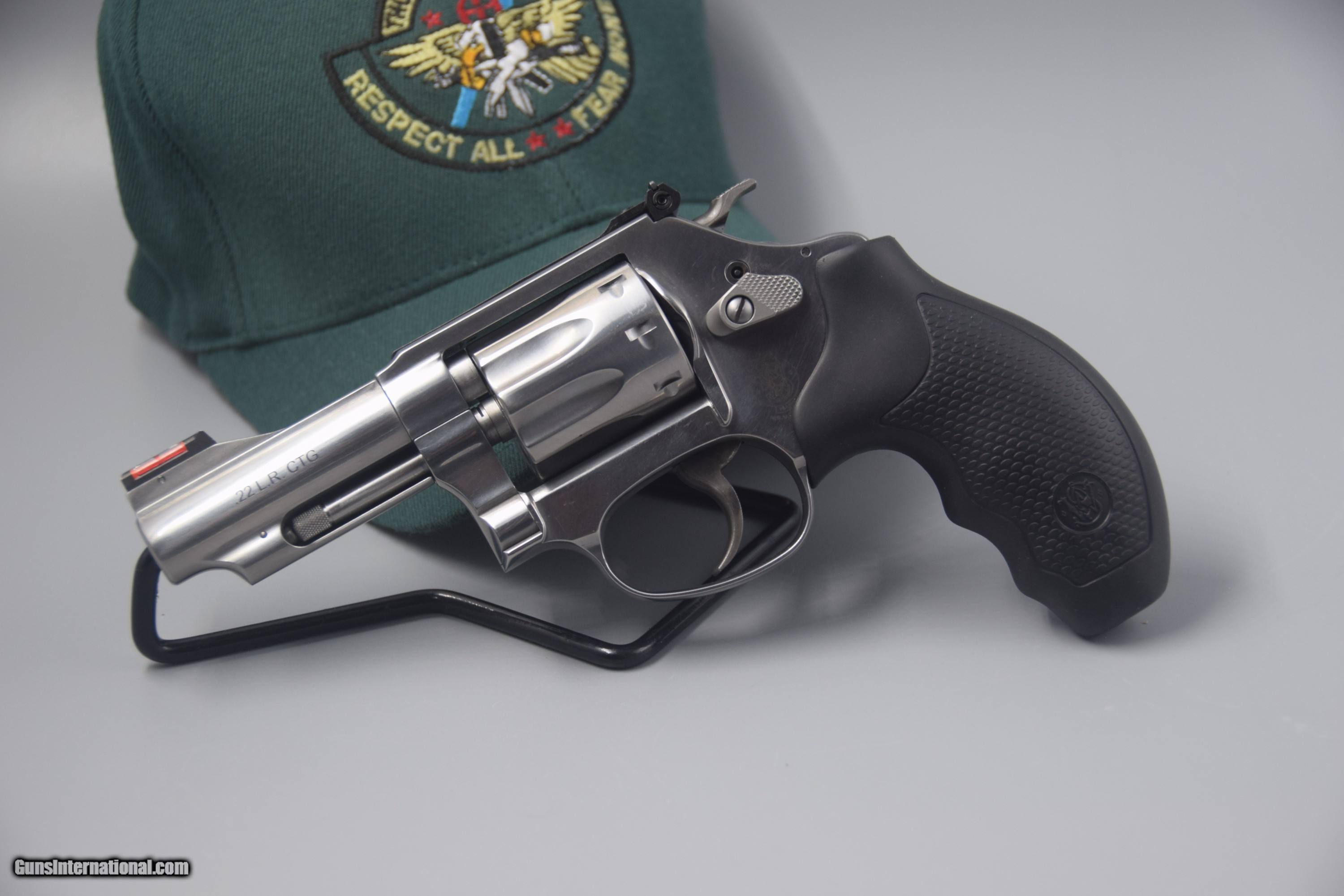 Description: Here's a new-in-box and extremely popular S&W MODEL 63 STAINLESS .22 LR 3-INCH 8-SHOT REVOLVER. It's got a hi-viz fiber optic sight, and is offered at ONLY $769.95 plus $35 FLAT-RATE shipping and insurance to the EAST; and $45 to the WEST coast, with NO ADDITIONAL FEES for credit card use.... SOLD |