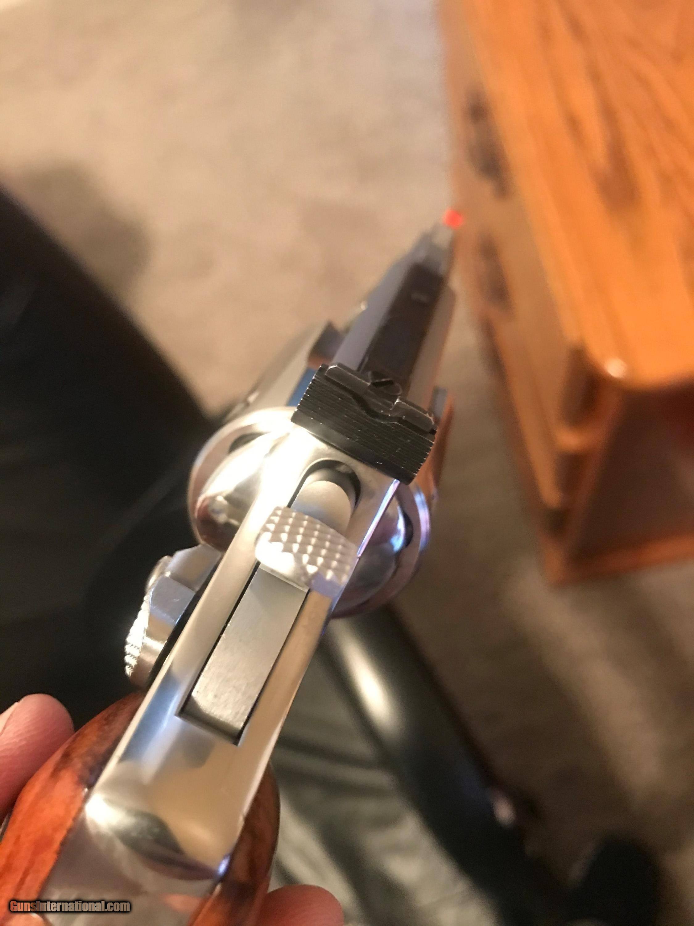 Description: These guns are so hard to find! This 22LR features a 1 7/8ths barrel, stainless finish, red ramp front sight, and a beautiful set of "banana" target grips. The gun has been polished, so it is shiny! NO BOX. Please email with questions. Shipping included. Cards add 3% SOLD Manufacturer: Smith and Wesson Model: 63-3 Barrel Length: 1 7/8ths Condition: Used Metal Condition: Excellent Wood Condition: Excellent Bore Condition: Excellent Action: Double Finish: Stainless Sights: Target Item Location: 37075 |