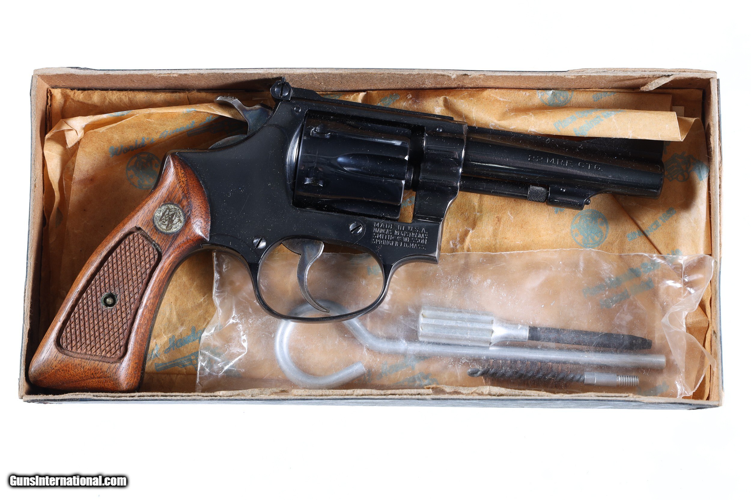 Description: Excellent overall condition in factory box numbered to gun. One small spot present at front edge of cylinder. Includes warranty card and cleaning kit with screwdriver. Free Shipping, No Credit Card Fees! SOLD Manufacturer: Smith & Wesson Model: 51 Serial Number: M32182 Barrel Length: 3-1/2 Caliber Info: .22 mag |