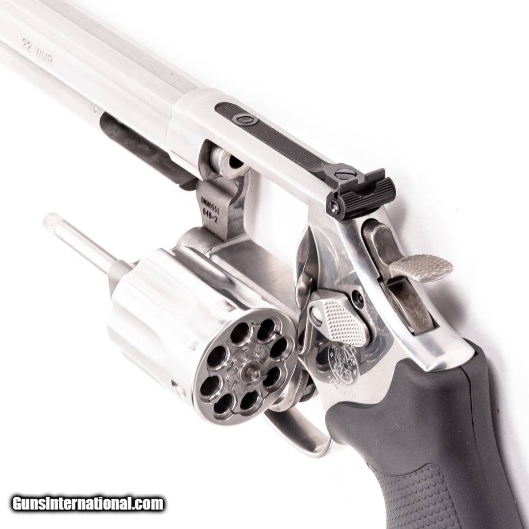 Description: Guns Listing ID: 343375 The Smith & Wesson Model 648-2 is a stainless-steel revolver chambered in .22 Magnum (.22 WMR). This is a handy revolver for target shooting, hunting small game, and plinking. The original case and manual are included. SOLD Manufacturer: SMITH & WESSON Model: 648-2 Caliber Info: .22 WMR Condition: Used - Certified Barrels: 6 BARREL Finish: STAINLESS |