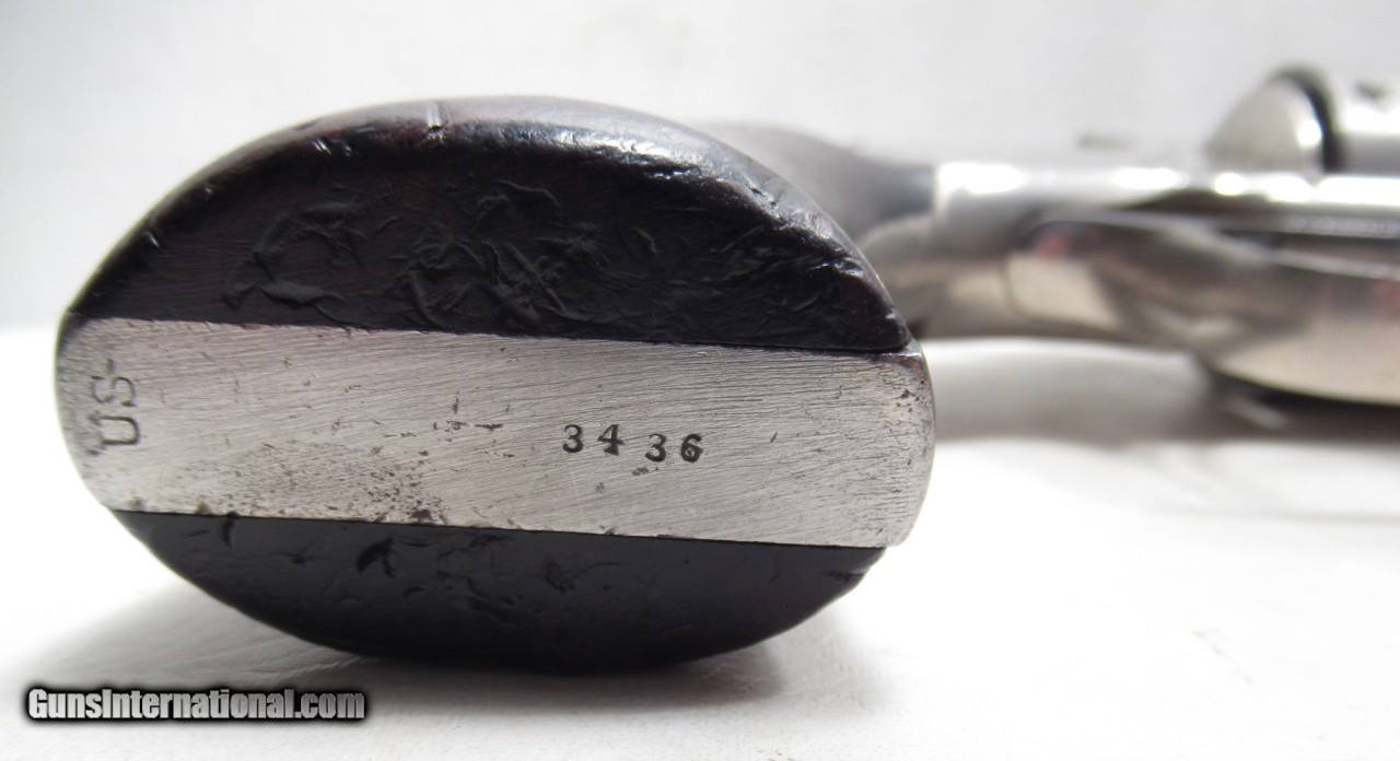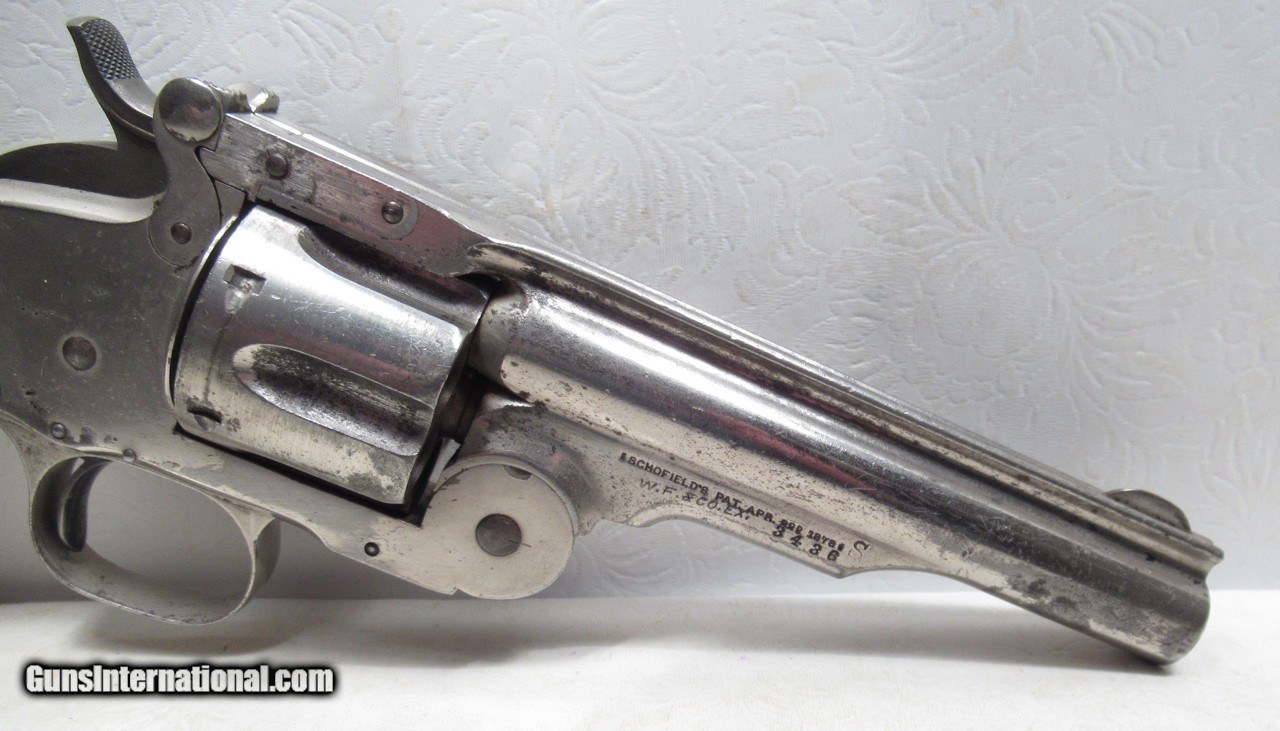 Description: Smith & Wesson 2nd Model Schofield Revolver; Serial No. 3436; .45 Caliber; 5” Barrel; Nickel Finish; Wood Grips Numbered to Gun; Good Action; Poor Bore; Most Nickel Finish Present; U.S. Marked on Butt of Revolver; “W.F. & Co. Ex” – 3436” on Barrel; Decent Original Example; Made 1876-1877; See All Photos for Condition; No Texts; Call (254)541-5765 or Email Only; PERSONAL PROPERTY of Harold Wieser; NOTICE: We Do Not Do Any Consignments - All Items Listed are Owned by Us - NO SALES to New Jersey or New York City - Antiques Only to Massachusetts and California; Price: $6,975 + $45 S&H Via USPS PRIORITY MAIL; Payment Address: Harold Wieser - 1466 U.S. Hwy 77 - Rosebud, TX 76570; SEND PAYMENTS VIA USPS PRIORITY MAIL; BEWARE of SCAMS!!! – DO NOT SEND MONEY or CORRESPONDENTS ELECTRONICALLY UNLESS YOU HAVE SPOKEN to HAROLD WIESER FIRST! 254-541-5765 SOLD Antique: Yes Manufacturer: Smith & Wesson Model: 2nd Model Schofield Serial Number: 3436 |