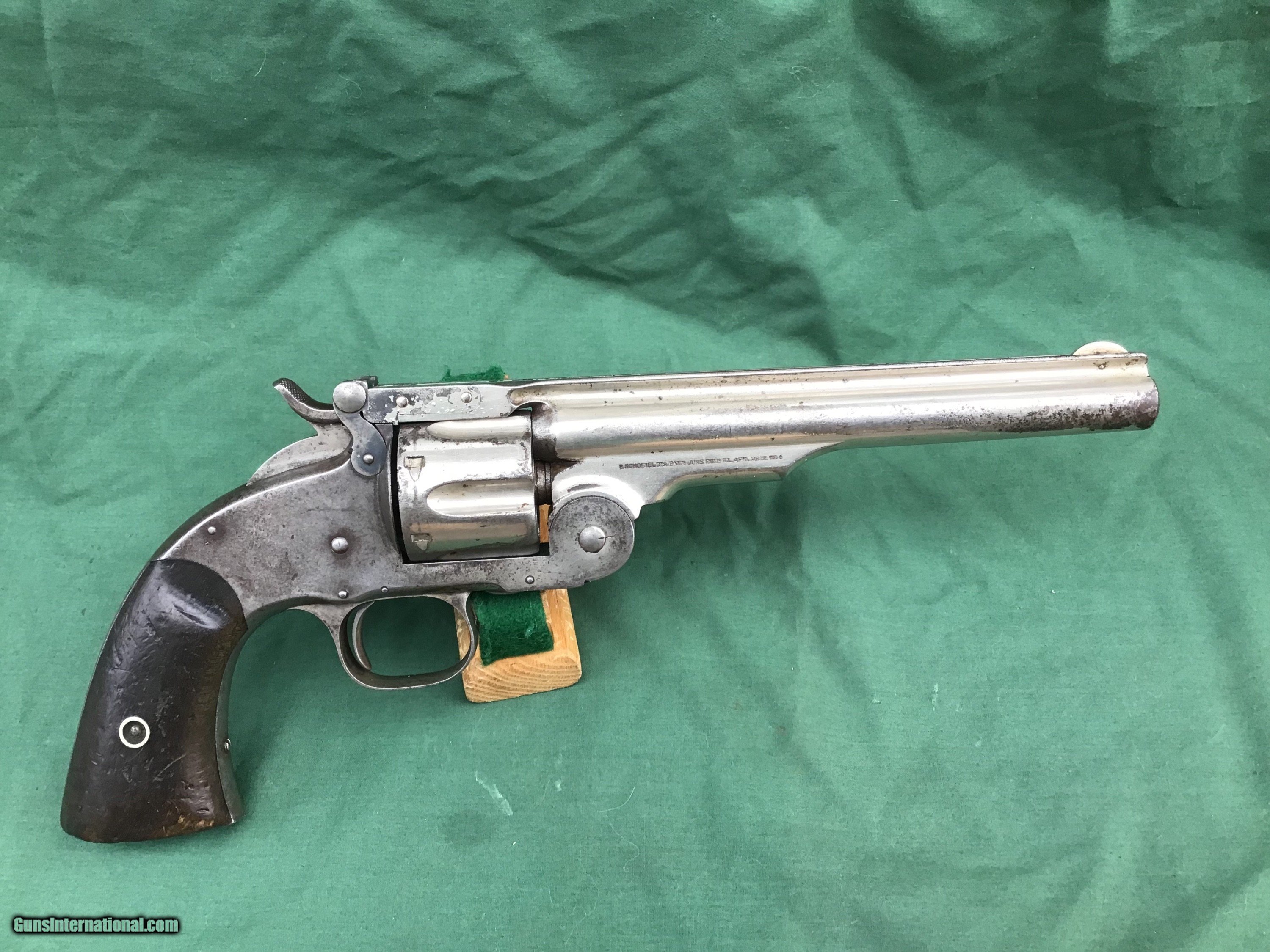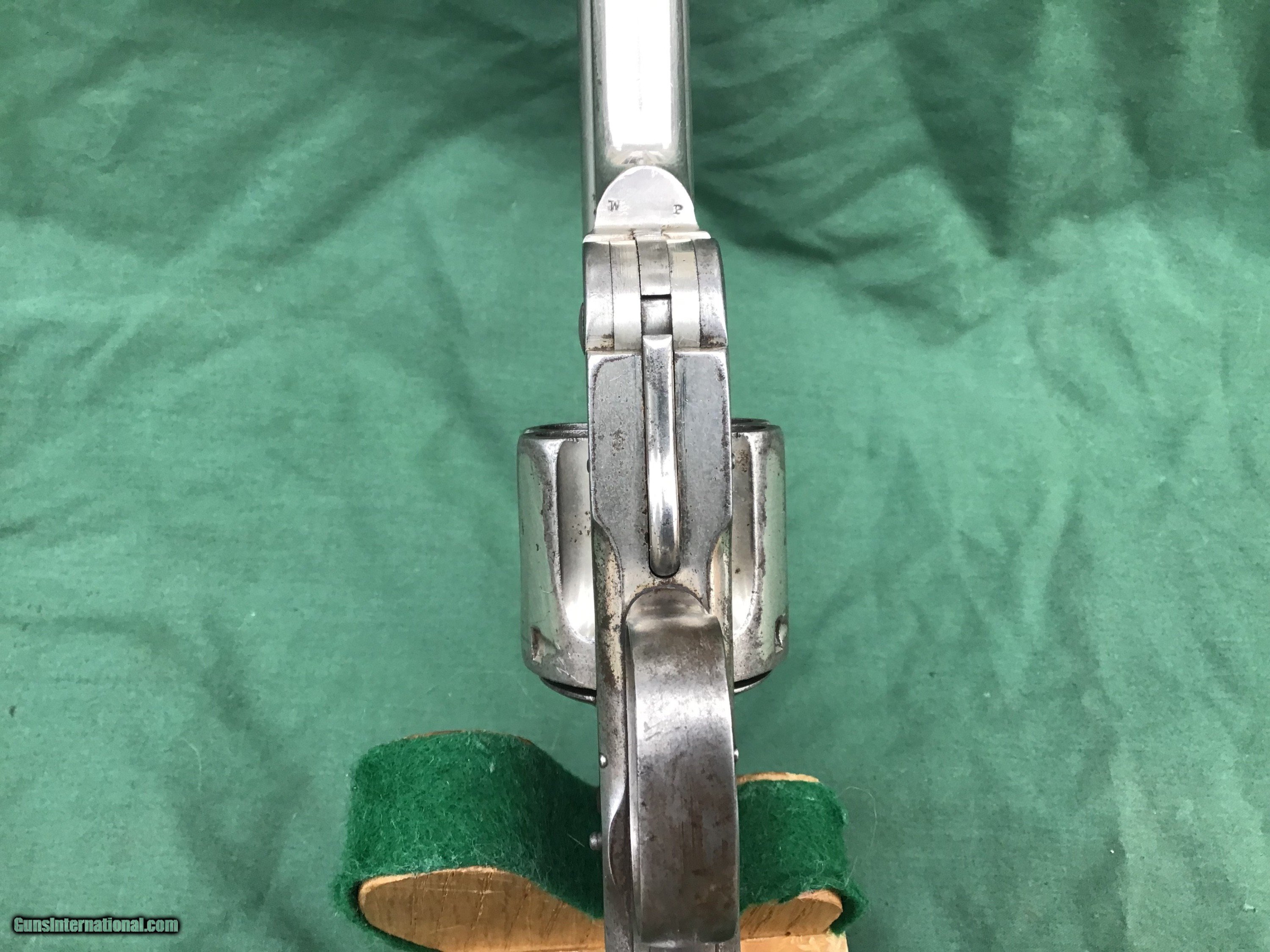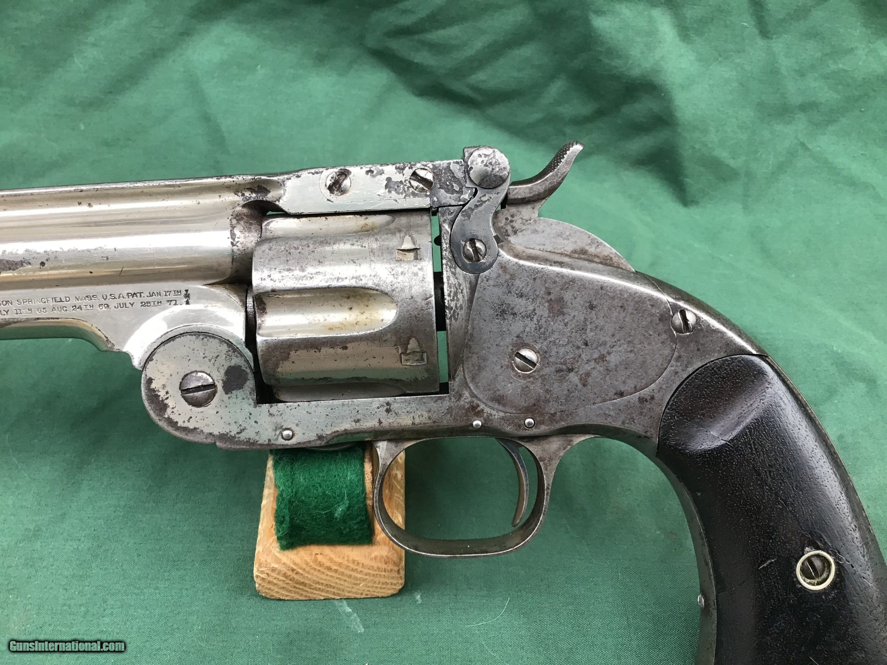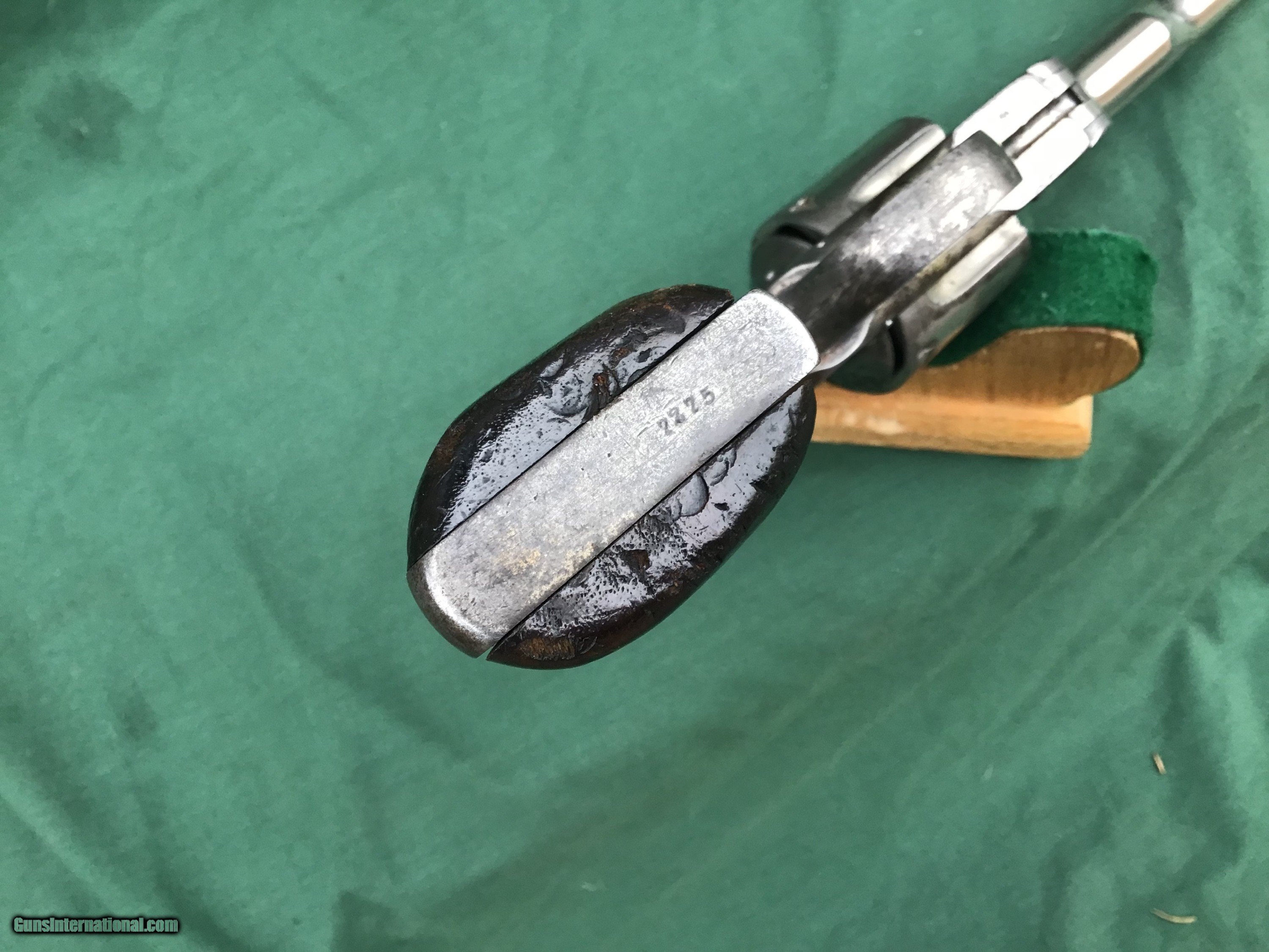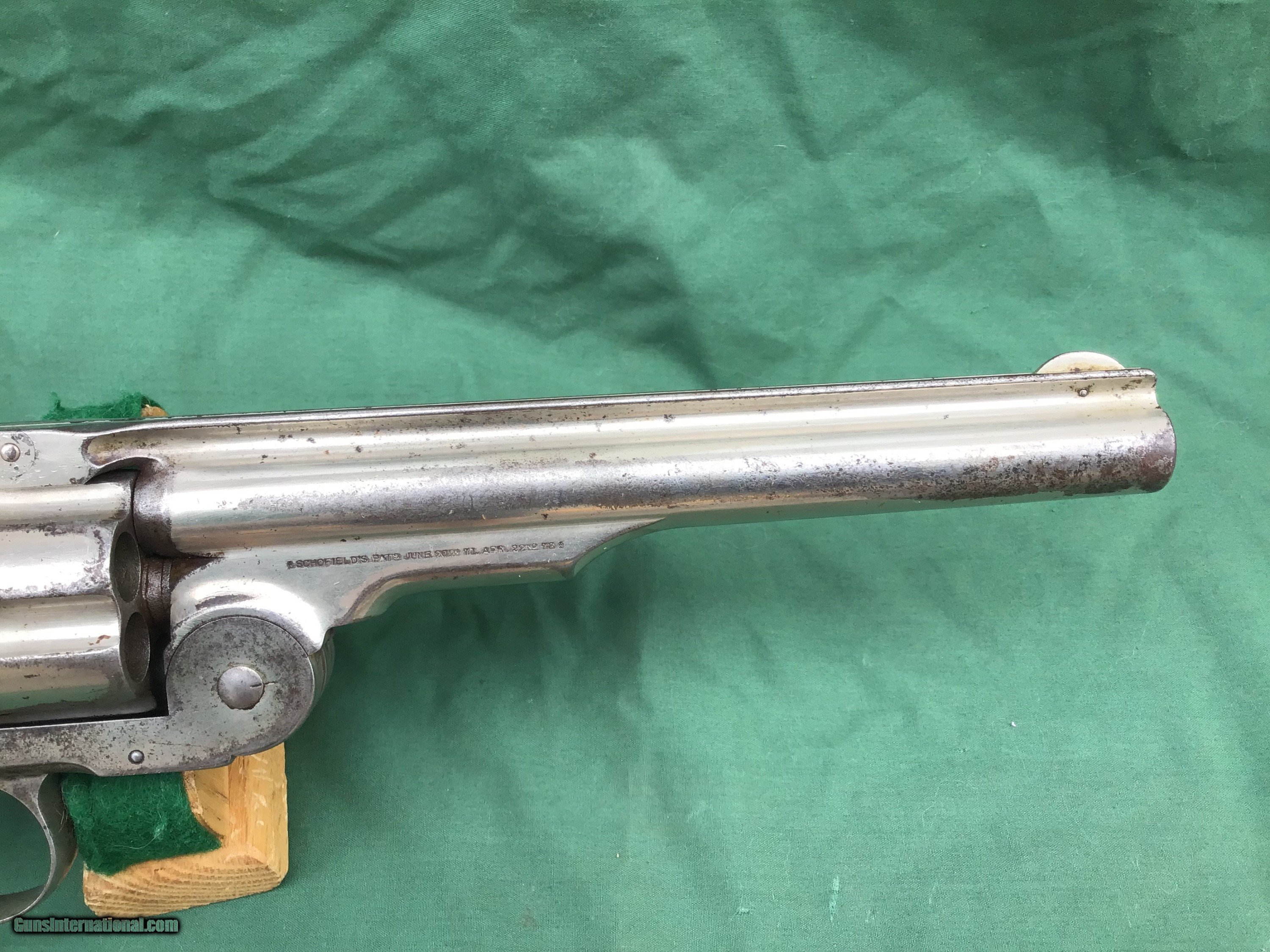 Description: Smith &Wesson 2nd Model Schofield Revolver. Very rare Civilian purchased Smith & Wesson. Serial number 7275 and is all matching. Revolver functions as it should with good lock up. Indexes nicely. Grips show usage. Left grip is cracked in 3 places (see pics), right grip has matching serial number as well. 7" inch barrel with great markings. About 45% of the nickel plating remains. Bore is good. Civilian Schofield's don't come up for sale often, so don't miss an opportunity to get yours. Please feel free to ask questions. SOLD Antique: Yes |