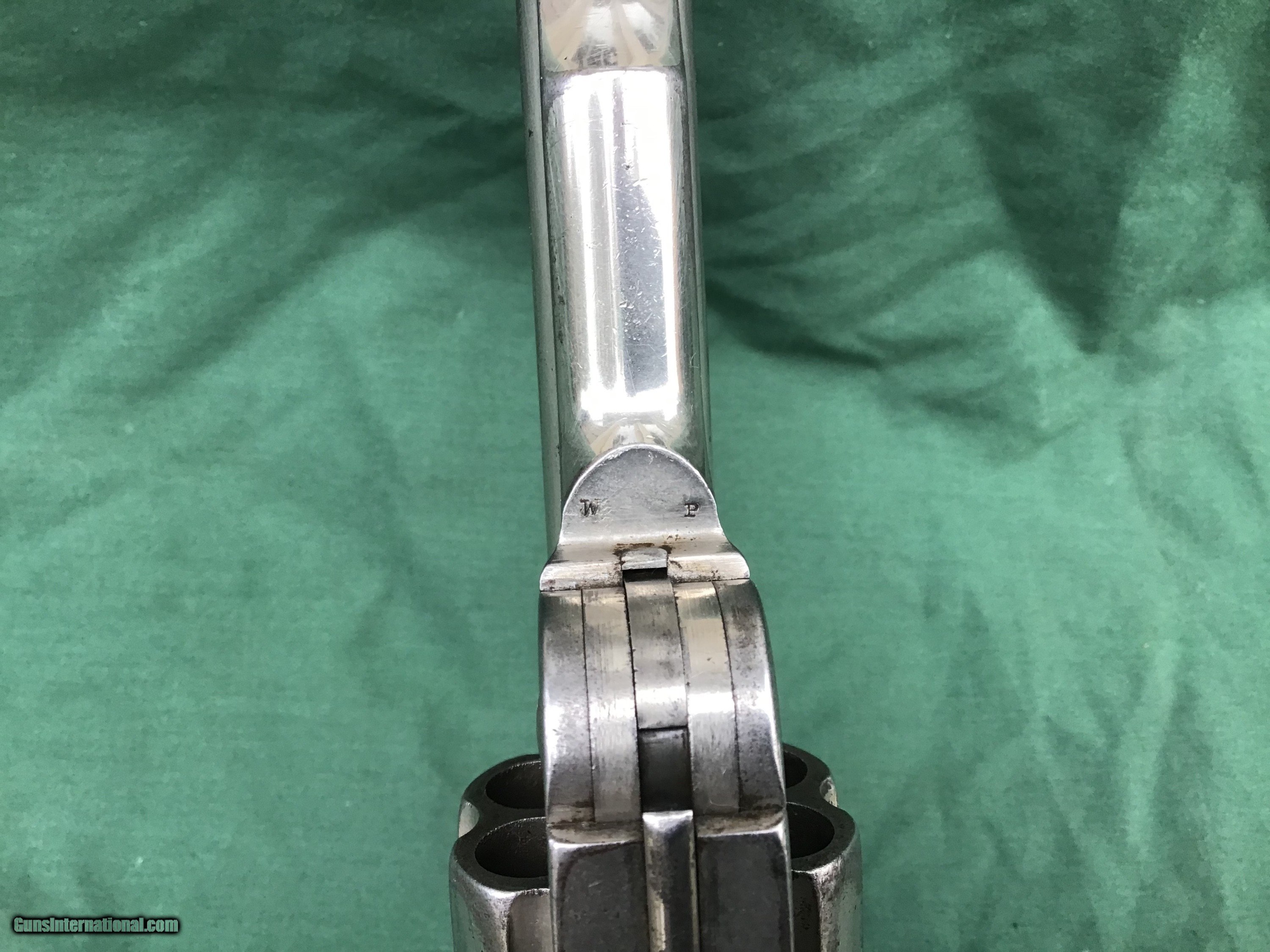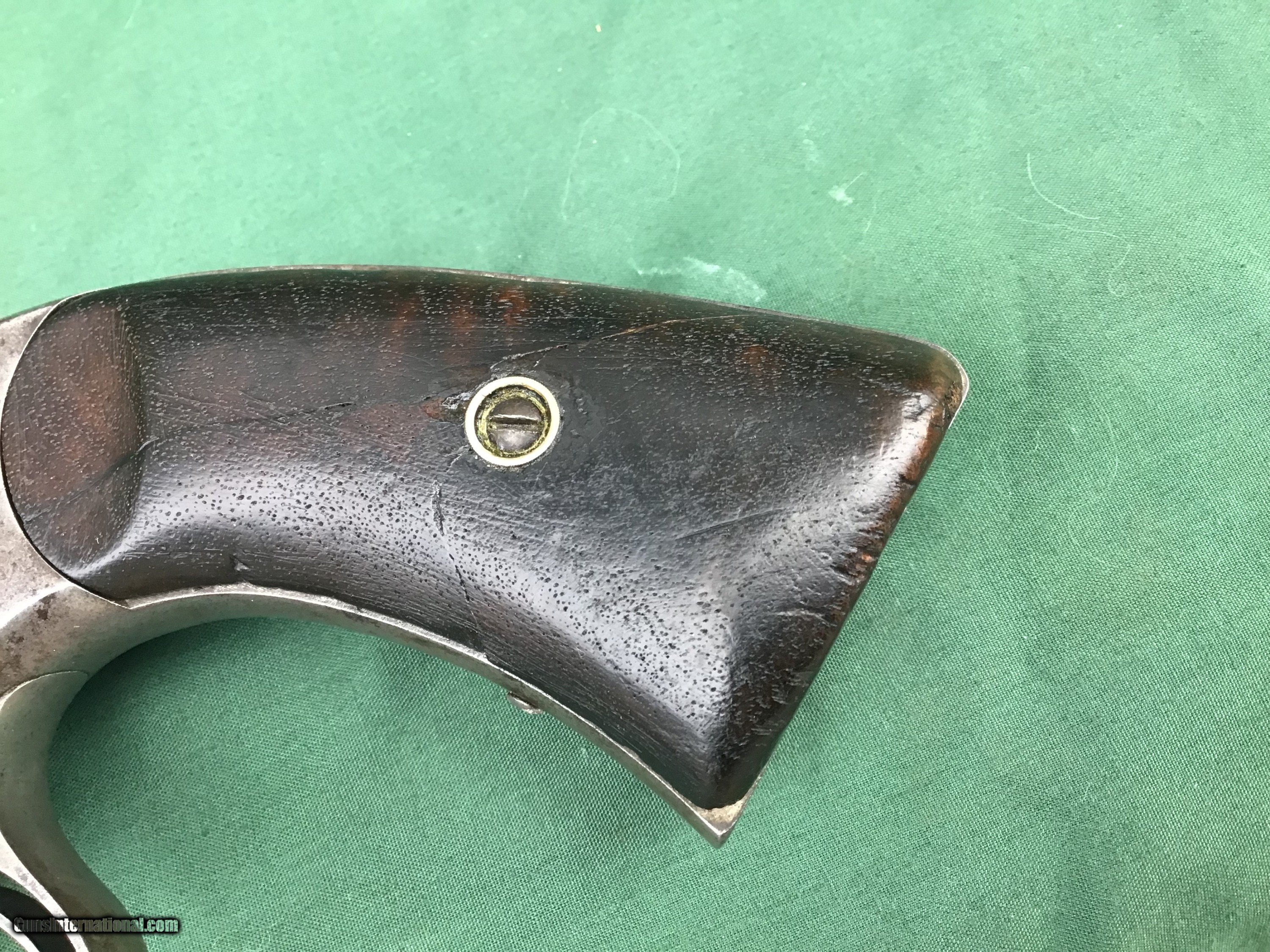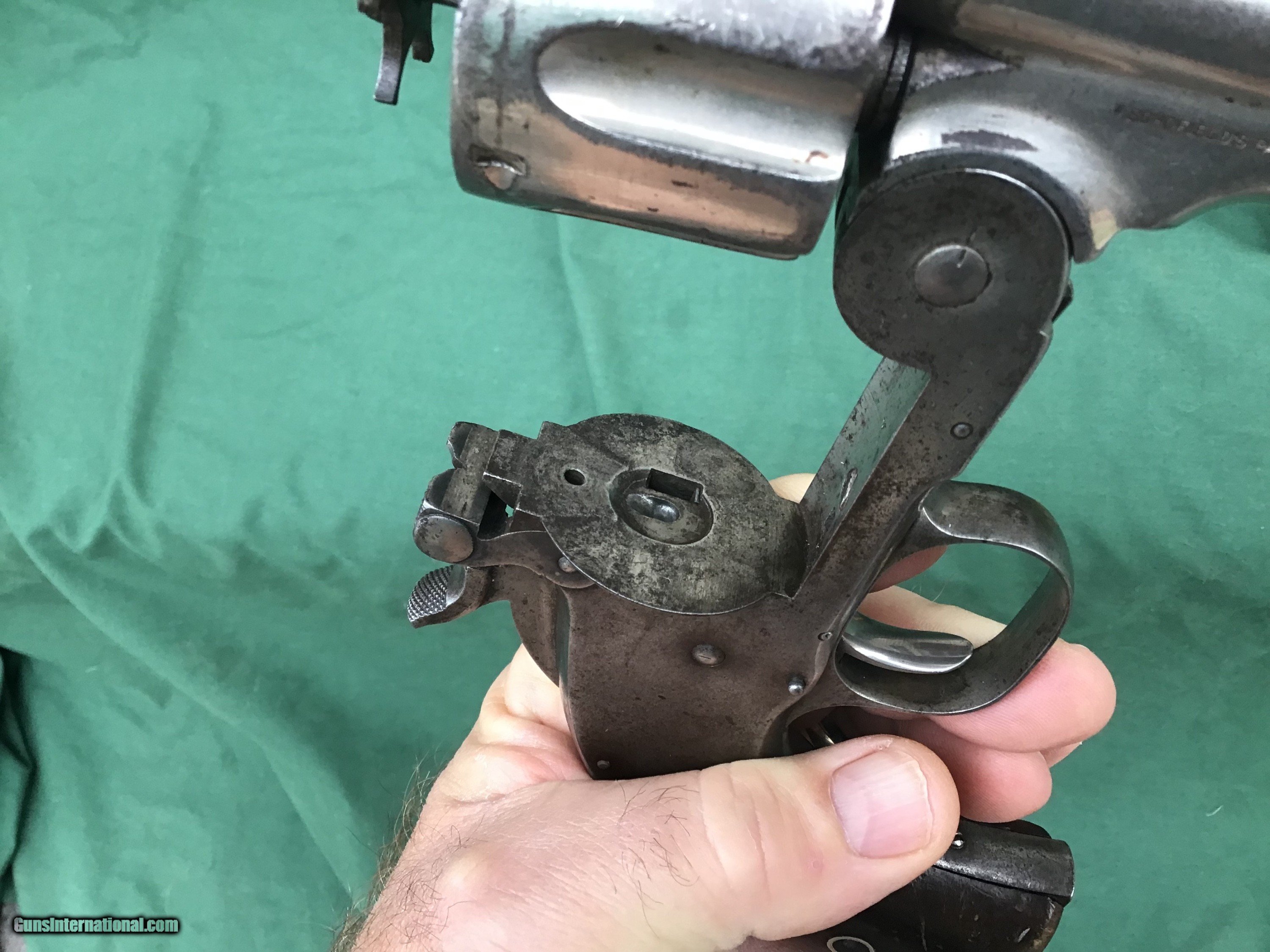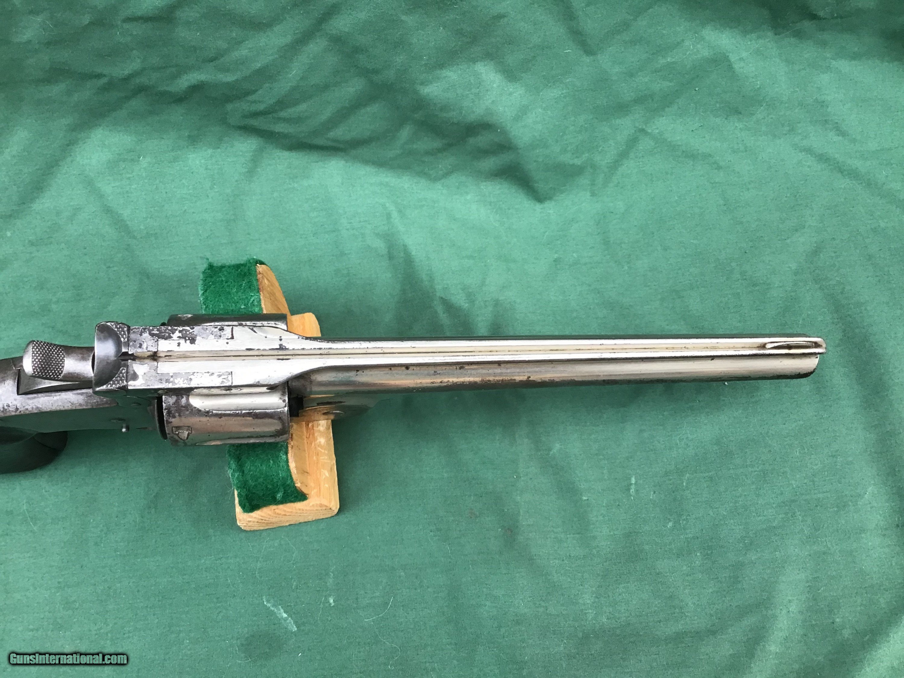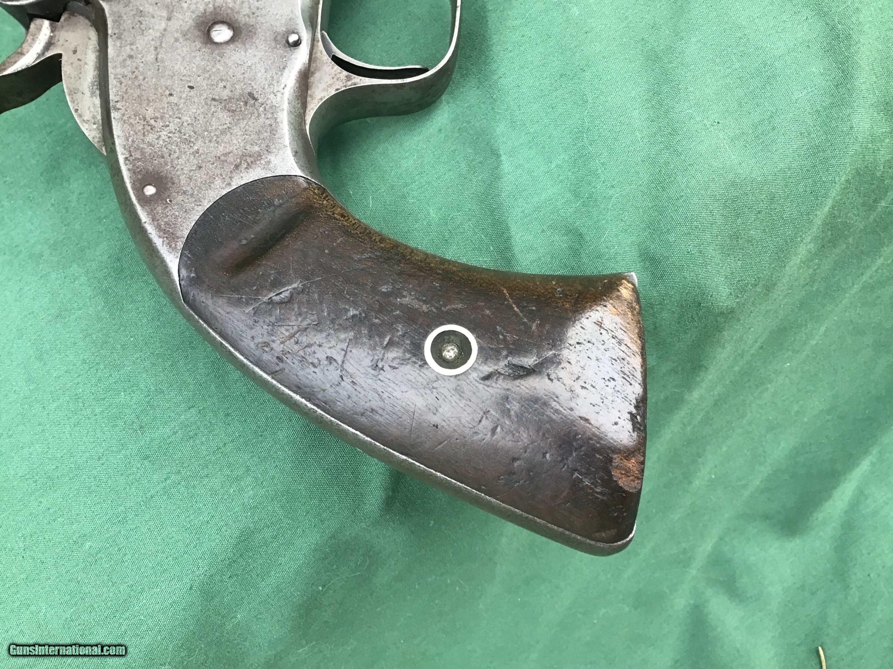 Description: Smith &Wesson 2nd Model Schofield Revolver. Very rare Civilian purchased Smith & Wesson. Serial number 7275 and is all matching. Revolver functions as it should with good lock up. Indexes nicely. Grips show usage. Left grip is cracked in 3 places (see pics), right grip has matching serial number as well. 7" inch barrel with great markings. About 45% of the nickel plating remains. Bore is good. Civilian Schofield's don't come up for sale often, so don't miss an opportunity to get yours. Please feel free to ask questions. SOLD Antique: Yes |