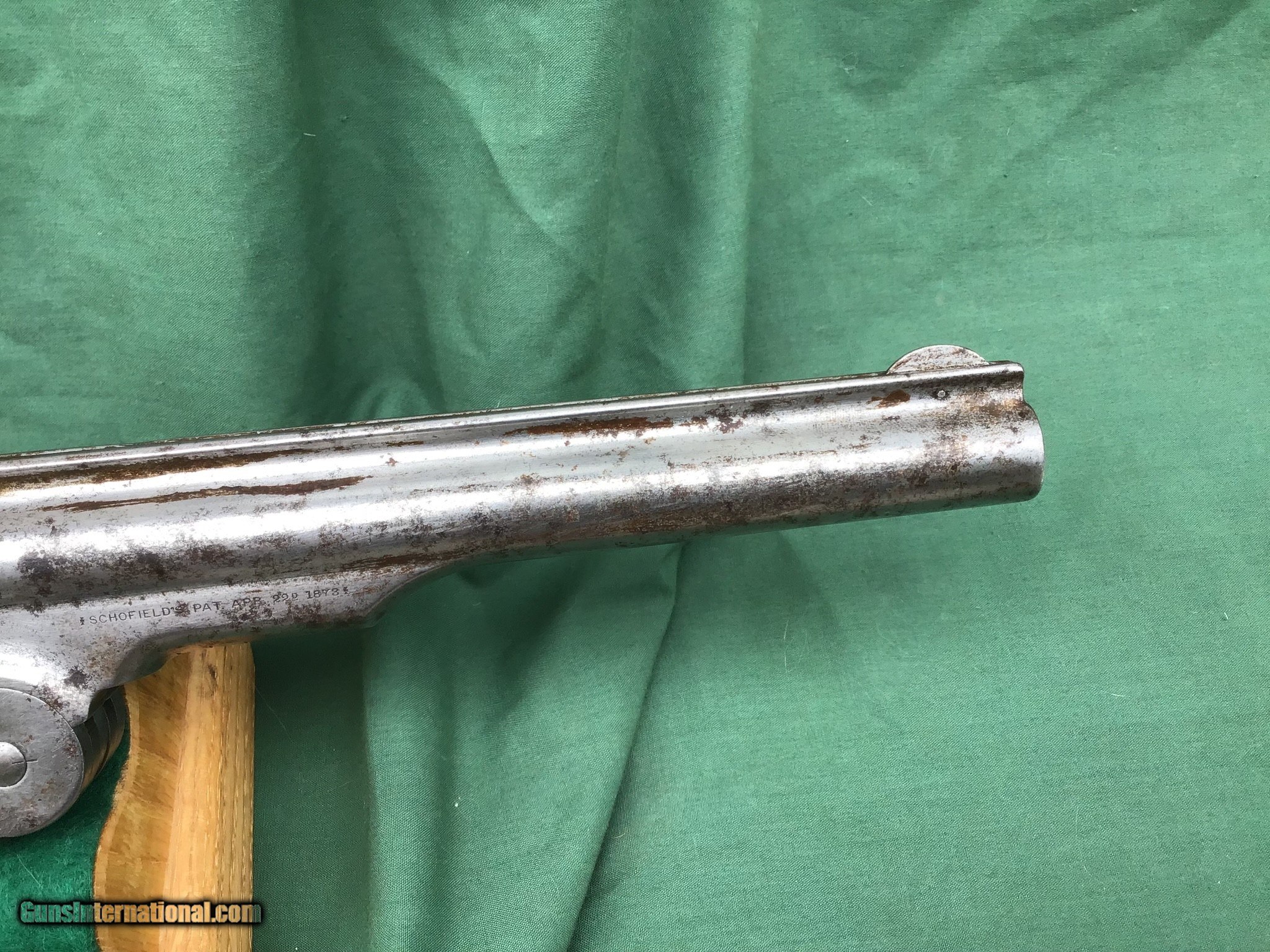 Description: Very early U.S. marked 1st Model Schofield serial number 127. 7" barrel with a very good bore. Action functions nicely. Very nice markings. Matching serial number cylinder. Overall condition is a gun metal gray / brown patina. Grips fit perfectly and are in good condition. Not much condition but super low serial number. Very early martial marked Schofield that has definitely been there and done that. Antique and can be shipped directly to your doorsteps. Please feel free to ask questions. SOLD Antique: Yes |