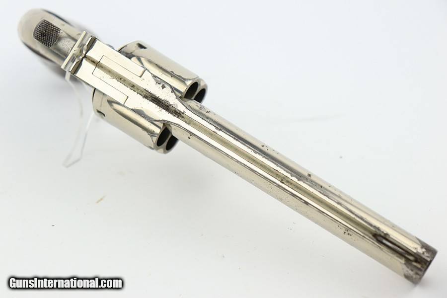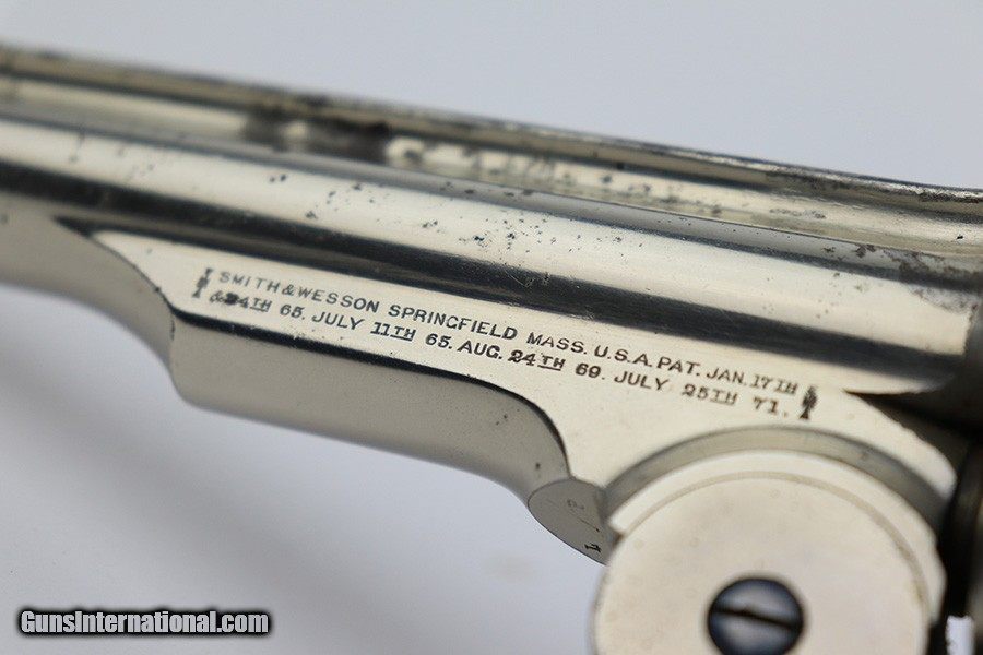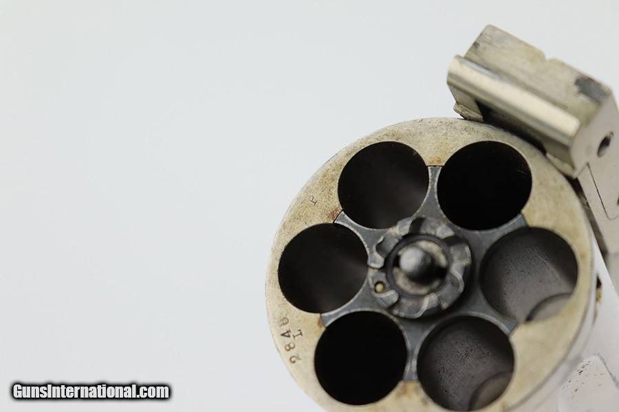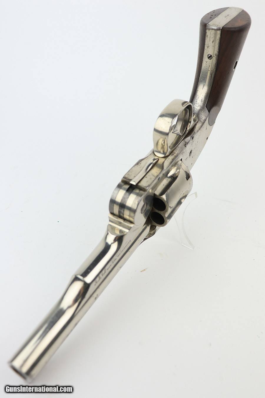Description: This is a very rare and very desirable early Smith and Wesson - Schofield Model Revolver. These were made for the US Army - mostly for cavalry soldiers in the Western Frontier and California. During the 1880s, the US military began divesting themselves of both 1st & 2nd Model Schofield revolvers. The guns were primarily sold to retailers in N.Y. Many of these guns were subsequently altered by having their 7” barrels cut down to 5”, and often the guns were nickel-plated. The single largest customer for these altered Schofield revolvers was the Wells Fargo Express Company, who marked the guns W.F. & CO. EX. when they purchased them. This gun is one of those reworked and nickeled guns. It is US marked on the bottom of the frame, and you can see a little bit of the military cartouche on the left grip. The grips are original to the gun as the right panel is numbered to the gun. There is an L/P inspector proof under the barrel and on the cylinder. It is also then marked W.F. & Co. Ex. on the right side of the frame. It comes in 45 caliber and is considered an antique so no FFL is required. The action and timing seem to work well. The nickel finish is mostly intact, but you will see a few areas where the nickel has worn or flaked away. Many of the screws still have the fire blue finish. For an antique gun, this one has a remarkable bore; still shiny with just a hint of corrosion. Overall, it would be hard to find a better example. SOLD Antique: Yes Handgun Caliber: .45 Schofield (.45 S&W Schofield, .45 S&W) |
