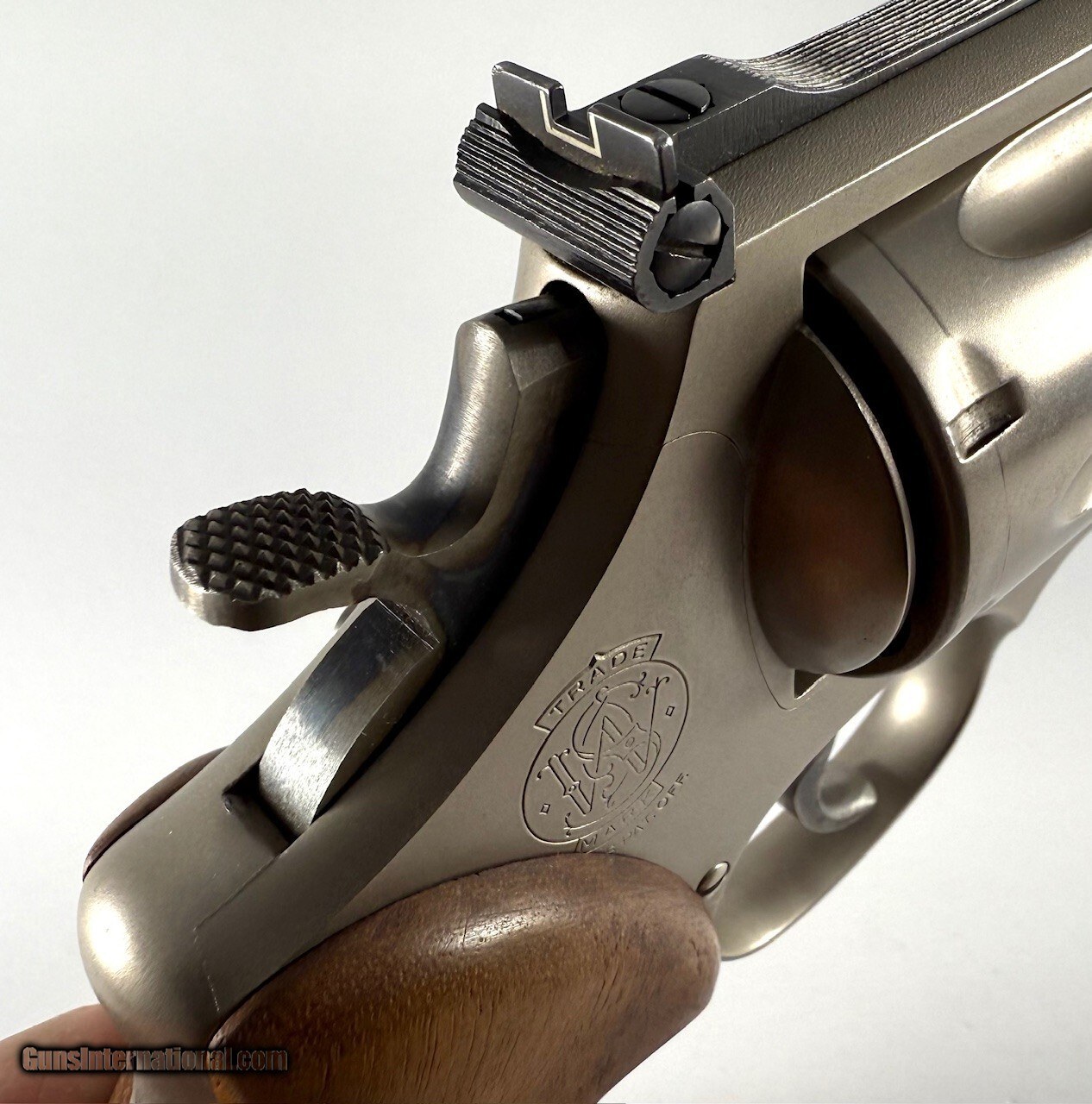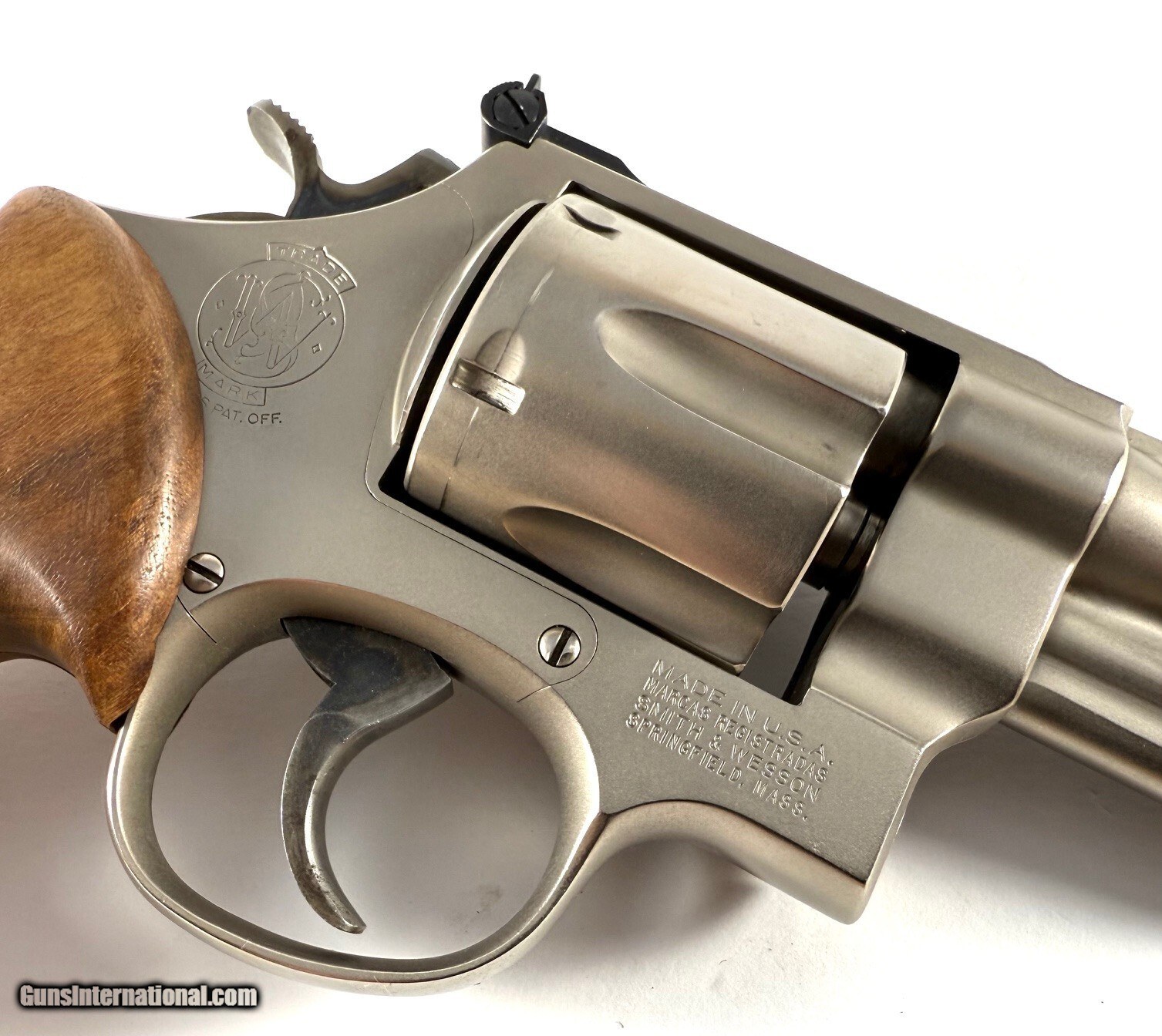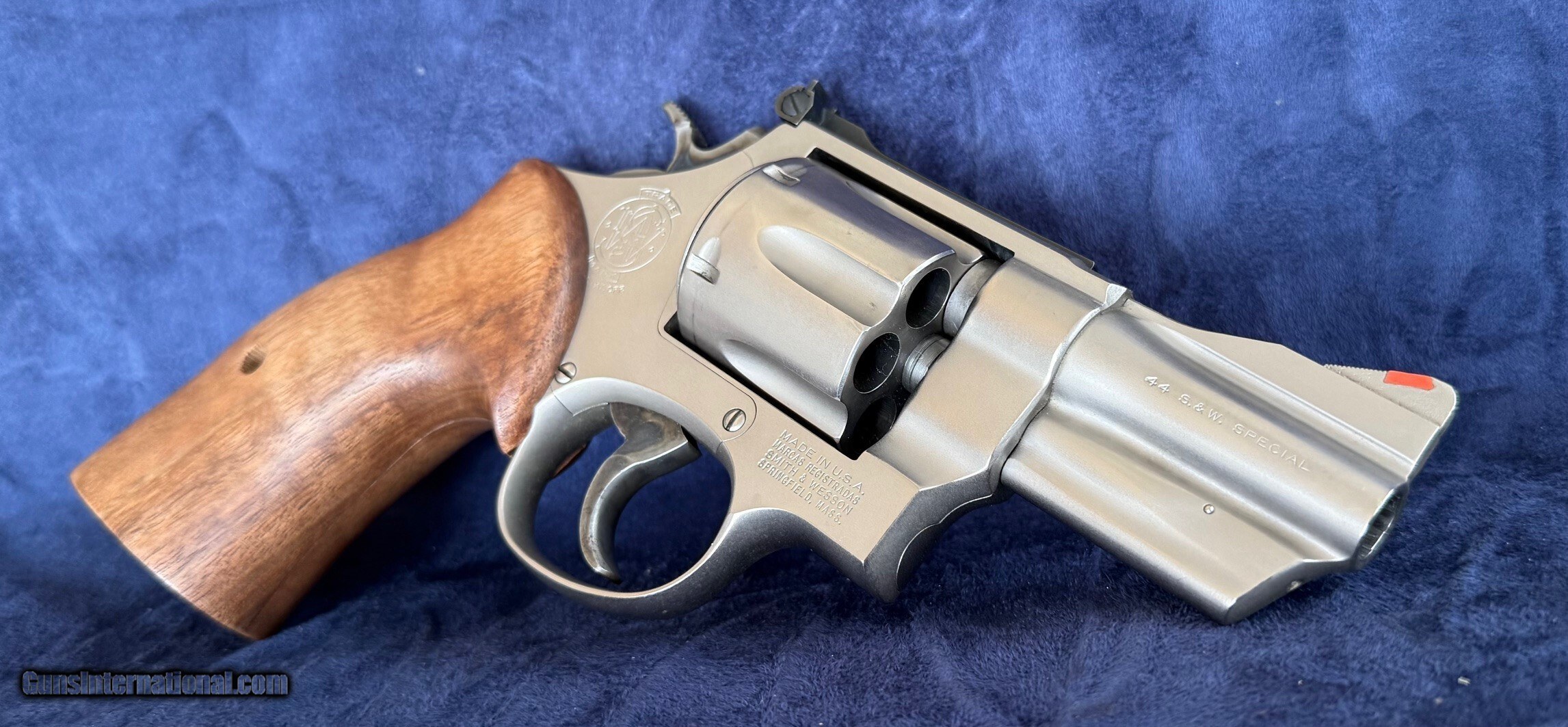 This is a S&W 24 dash 3 and quite possibly a Lew Horton with a 3" barrel and round butt frame that someone has sent out for a Armoly type hard chrome finish. This makes it look like a 624 stainless gun. The finish is extremely durable and would make for an excellent carry gun. Overall super nice condition with solid mechanics. Comes with a new set of round to square butt BEAR HUG conversion grips. No box or paperwork.