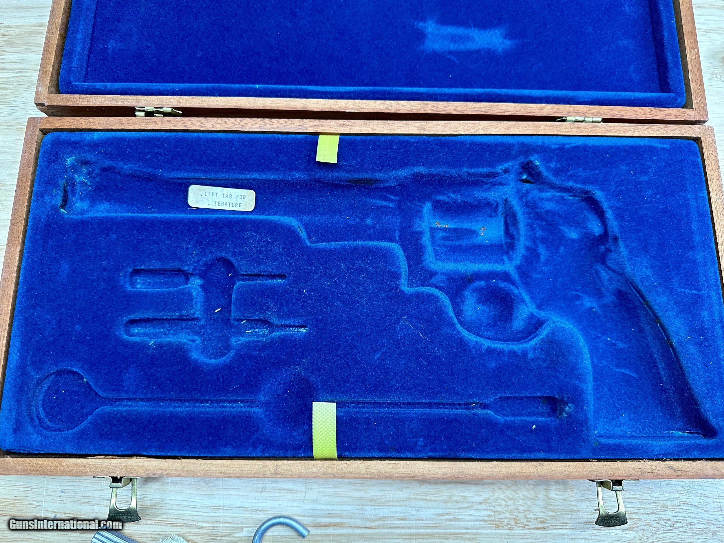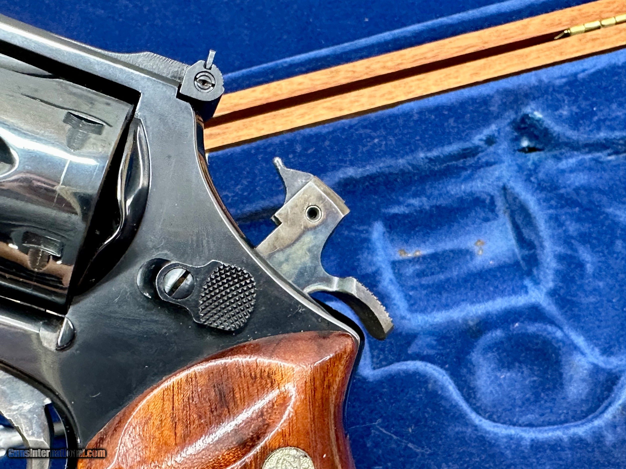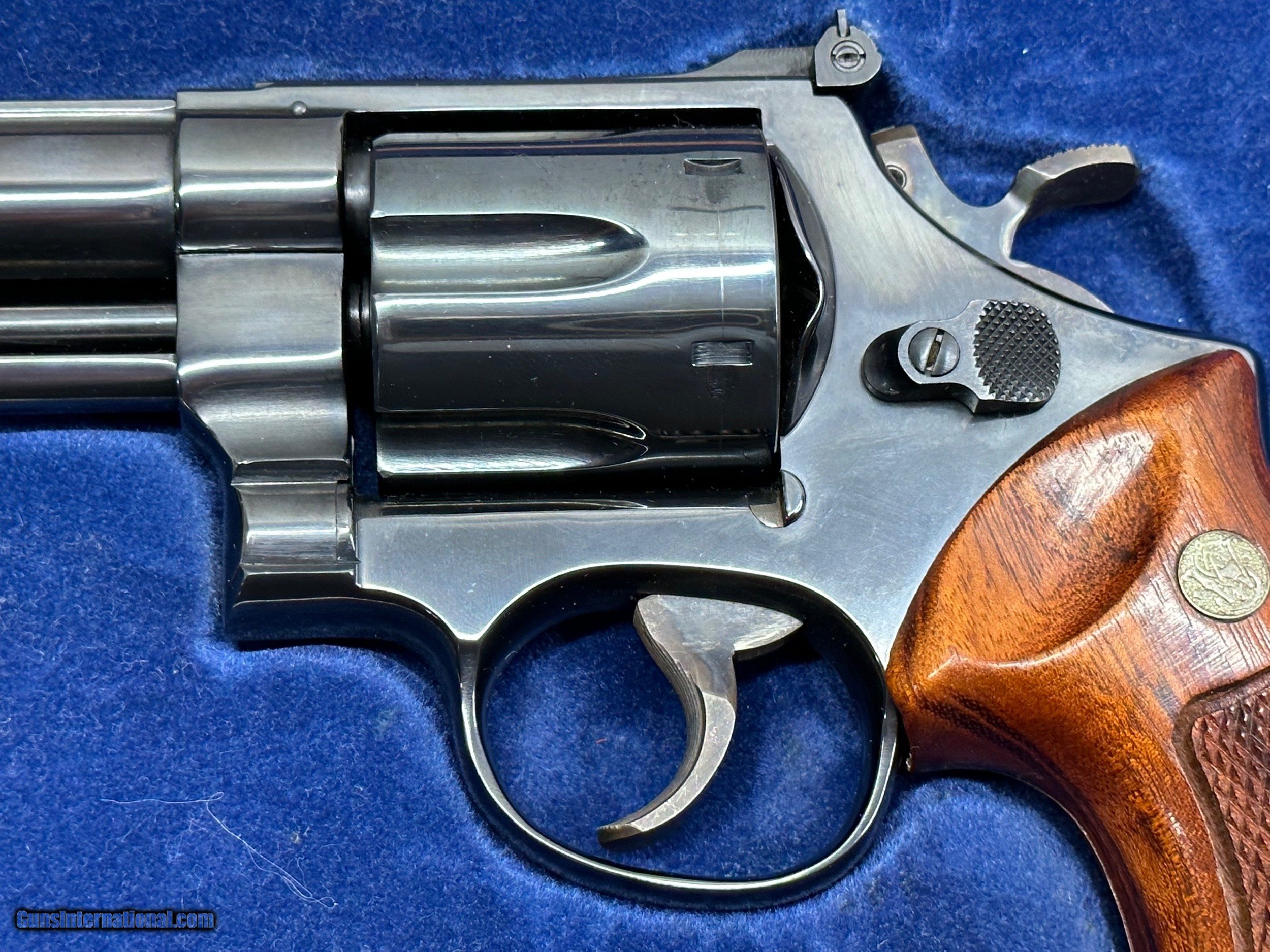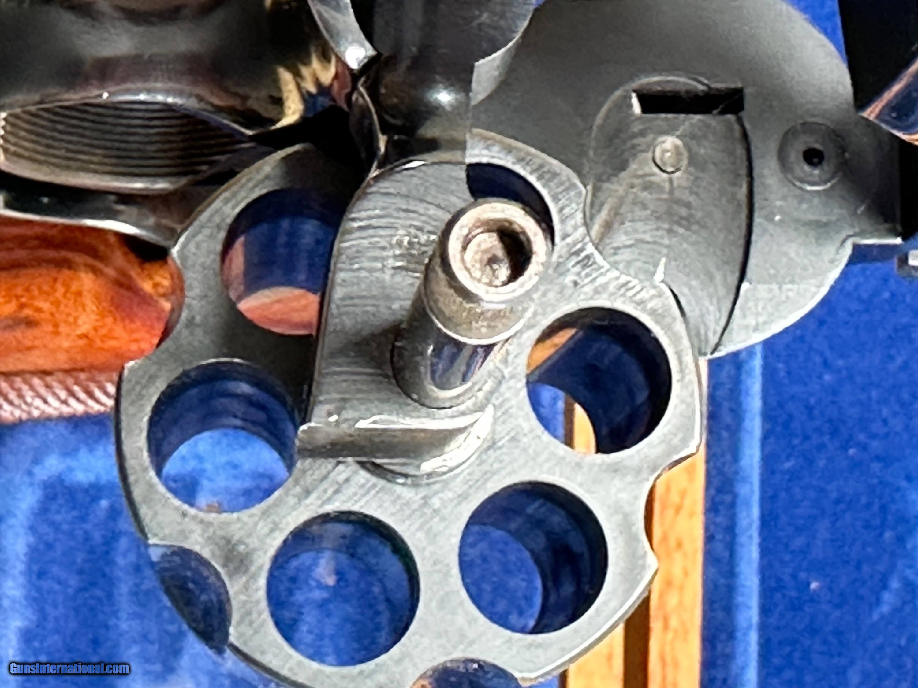 Description: This is a Mint condition Looks like new, Looks potentially unfired. This is a beauty. Features a .500 wide Target Hammer and a .493 wide target trigger and large target grips. THere is no silvering at the end of the barrel like is commonly seen. This comes in the presentation case with original papers and tools. The case shows some wear on the inside and the left hinge needs repair. Has a light score mark on the cylinder from being rotated. Stocks are in excellent condition with no chips or digs or wear. All around gorgeous P&R Revolver Flat 45.00 shipping Price reflects a cash discount of 3.5% Maine Residents add 5.5% sales tax SOLD Manufacturer: Smith and wesson Model: 29-2 Serial Number: N319121 Barrel Length: 8-3/8 Condition: Like New Metal Condition: Like New Wood Condition: Like New Bore Condition: Like New Action: Double action revolver Finish: Blued Manufacture Date: 1975-1976 Extras: Target Model, Papers Tools Presentation case |