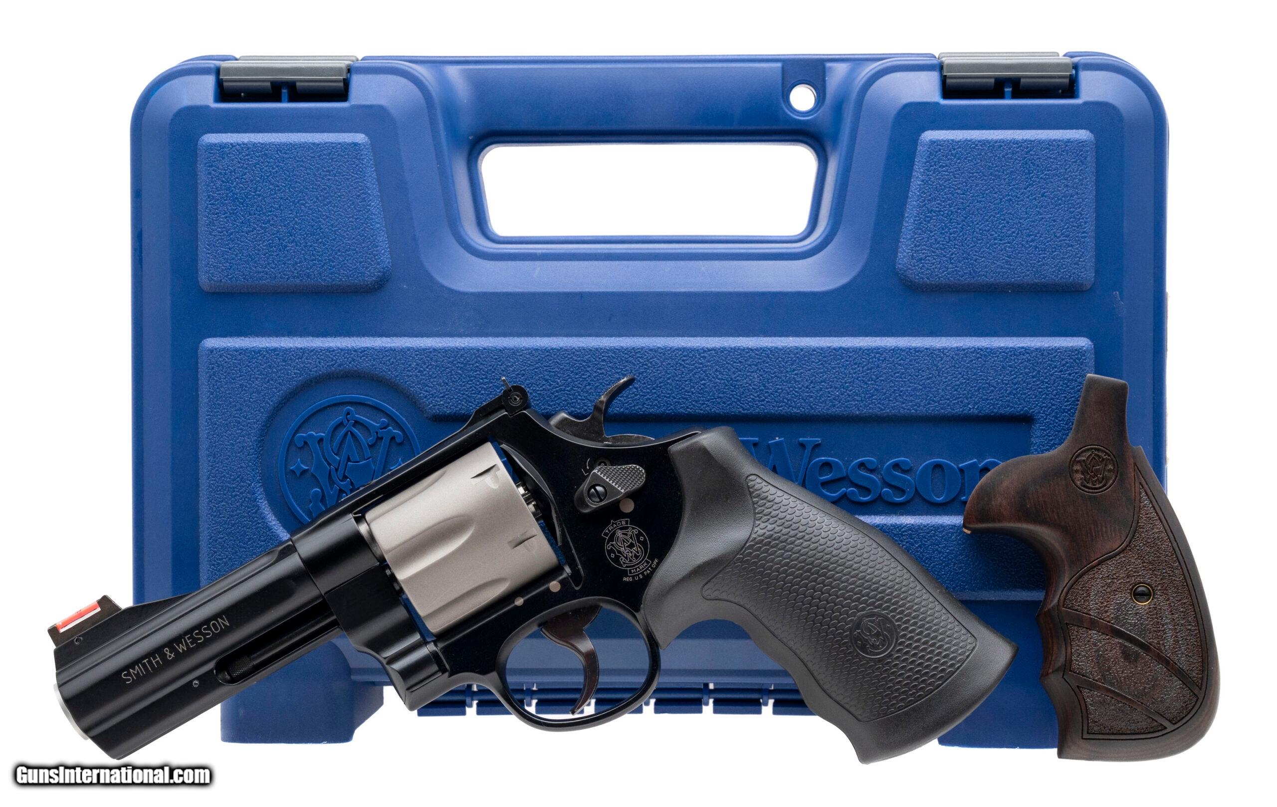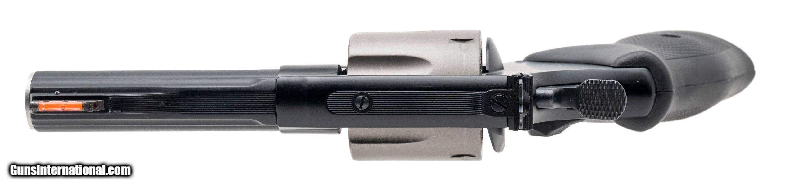 Description: "SN: DRJ8205. Modern production, .44 MAG. with a 4.13"" barrel. Bore is very good. Scandium N-frame double-action revolver with a 6rd titanium alloy cylinder, HIVIZ fiber-optic front sight, adjustable rear sight, matte black finish, and black synthetic grips. Frame shows minor handling marks. Includes original laminate wood grips, and original case. Overall condition is very good. Price: $1,149.95 Contact Seller |