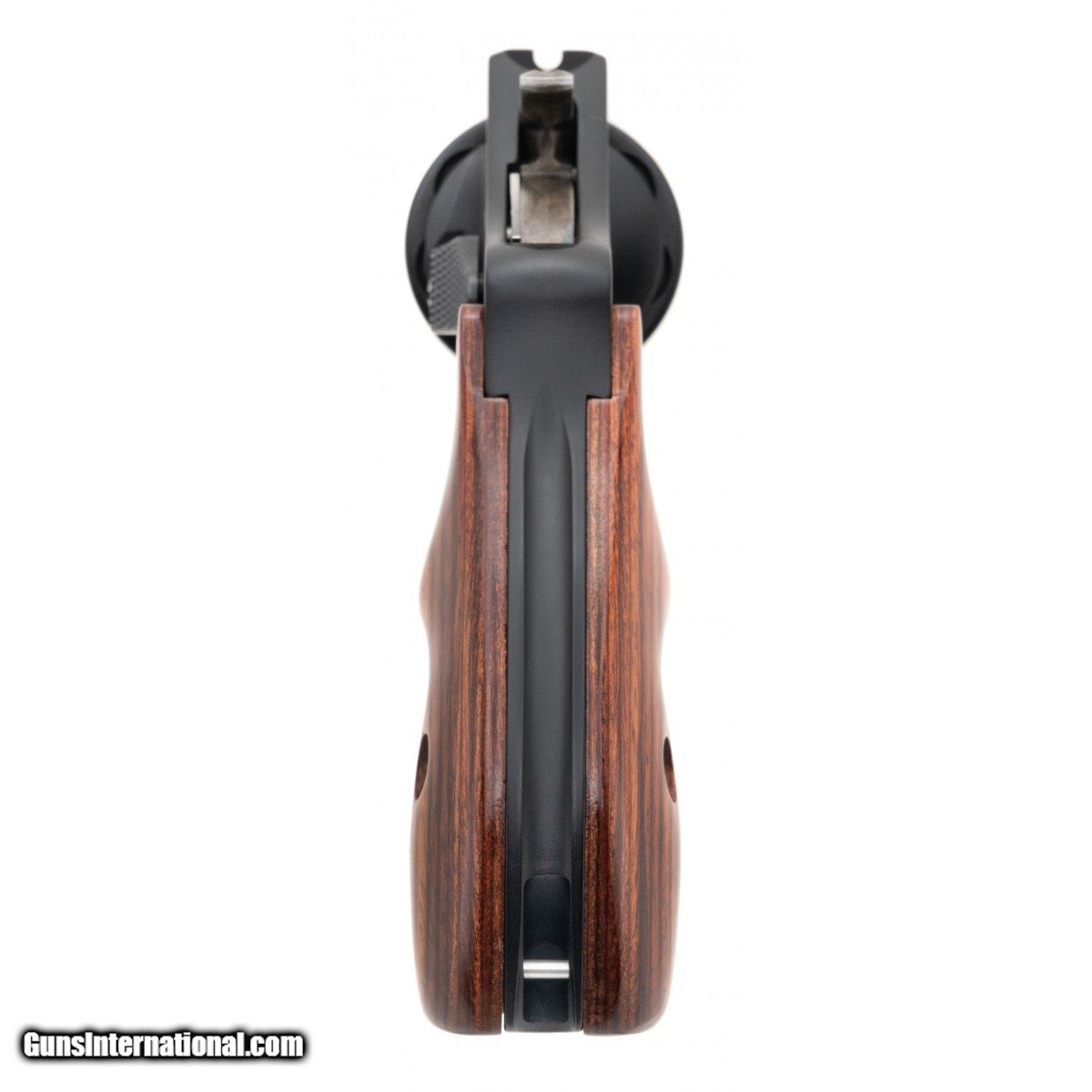 Description: " SN: CZZ5950. Modern production. Snub nose revolver chambered in .22 Winchester Magnum with a 2"" barrel, bore is excellent. Alloy frame with black matte finish, hi viz fiber optic front sight and wood grips. Comes with box. (Consignment) SOLD |