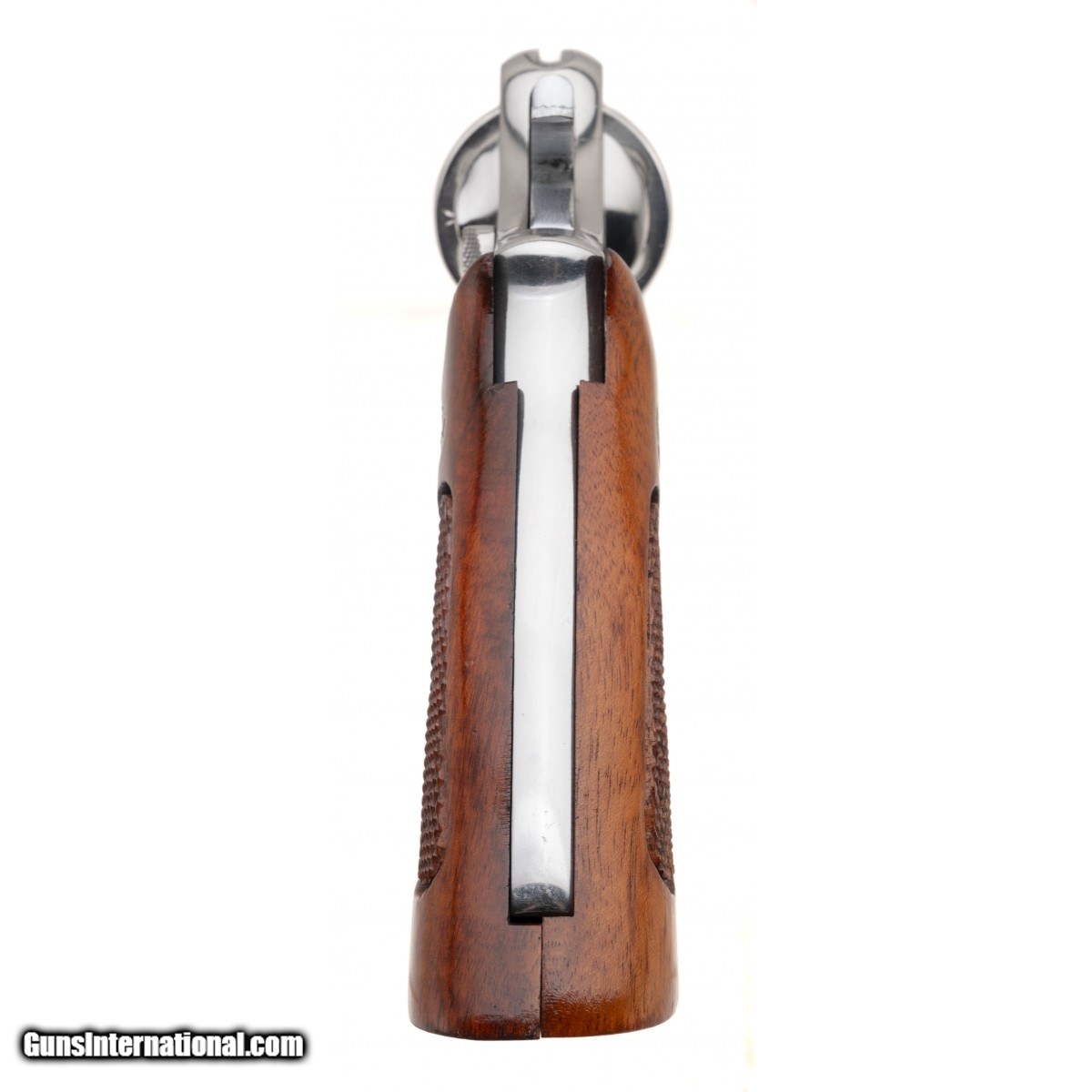 Description: " SN: AAP4103. 1980's Production. .357 Magnum with a 4"" barrel. Bore is excellent. Bright polished stainless steel revolver with checkered wood grips that don't fit correctly. Overall condition is excellent. Comes with box. (Consignment) SOLD |