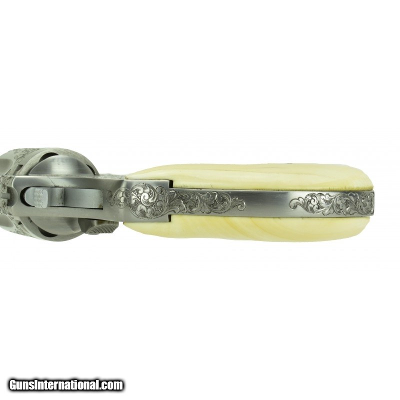 Description: " Beautiful Alvin White engraved stainless Chiefs Special. Has very fine scroll and genuine ivory grips. The gun is not signed but the box label has a notation that says “Eng. A.A. White". The work is certainly of a quality to have been done by Mr. White. The gun is in excellent condition with original box. SOLD |