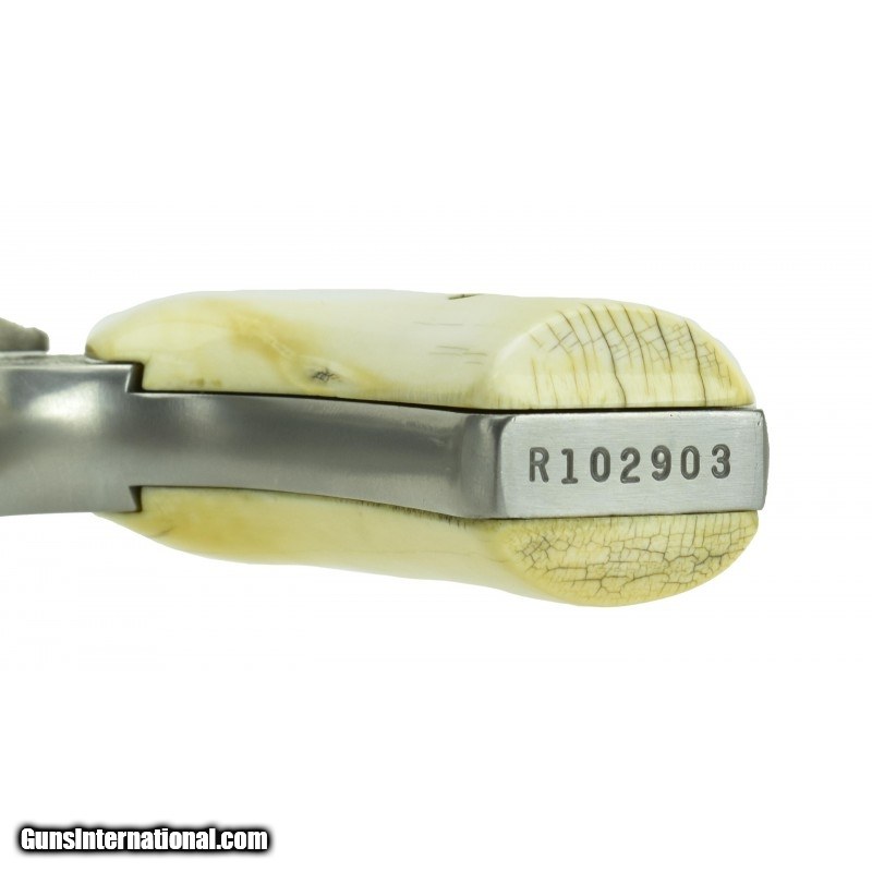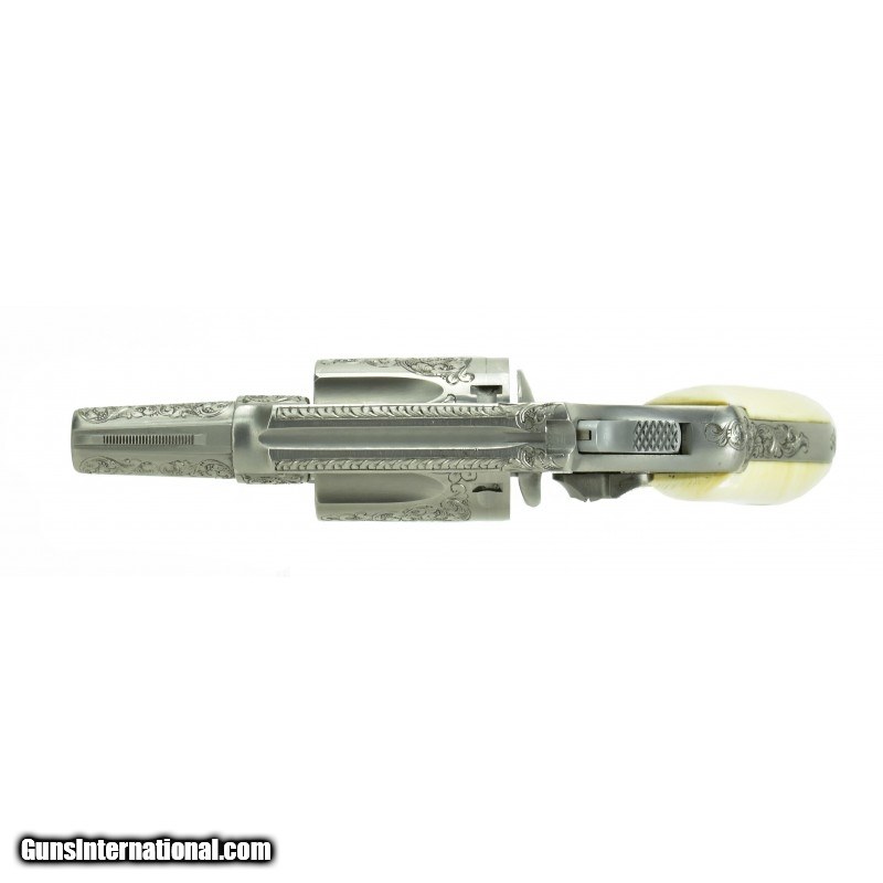 Beautiful Alvin White engraved stainless Chiefs Special. Has very fine scroll and genuine ivory grips. The gun is not signed but the box label has a notation that says “Eng. A.A. White". The work is certainly of a quality to have been done by Mr. White. The gun is in excellent condition with original box.