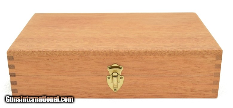 Description: S&W 357 Magnum .357 Magnum caliber revolver. Custom engraved 3½” 5-screw pre-model 27. 1950’s vintage with later engraving. Has full coverage deep relief engraving, high polish blue finish and genuine Stag grips. A great looking Combat Wheel gun. In excellent condition with wooden case. SOLD |