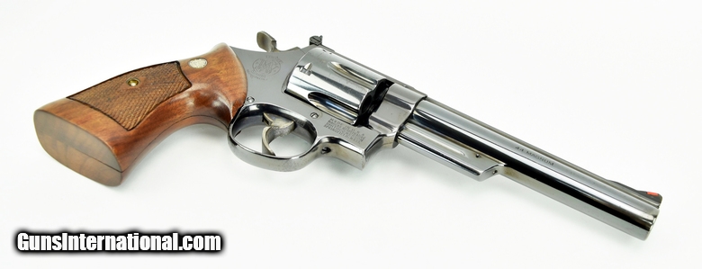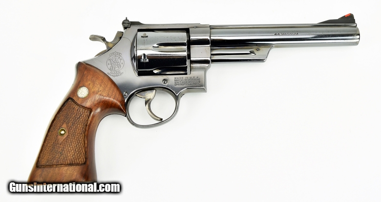 Smith & Wesson .44 Magnum .44 mag caliber pistol. 4-screw pre-model 29 with 6 ½” barrel and diamond grips. Has some marks on the barrel and some muzzle wear, otherwise very good condition. The grips are not numbered and are in excellent condition.