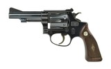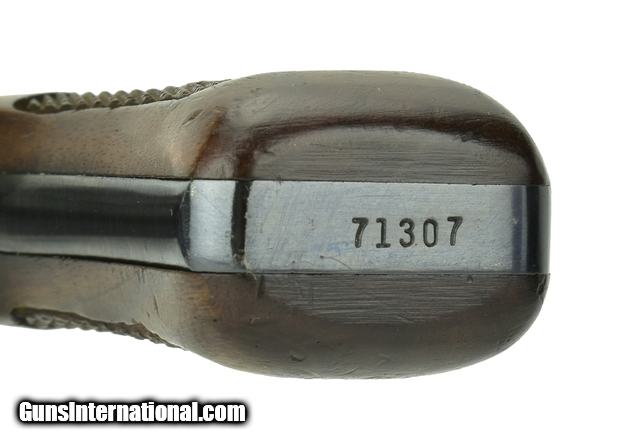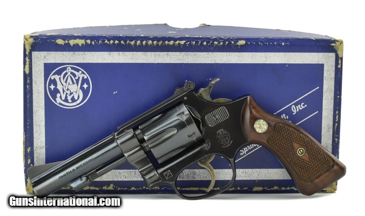 Description: Smith & Wesson 51 .22 Magnum caliber revolver. Rare early 3 ½” blue Magnum kit gun. 1960’s Vintage with flat latch and diamond grips. Excellent condition with 97% original blue finish. Has an unusual mark inscribed on the frame above the trigger guard, with original box.