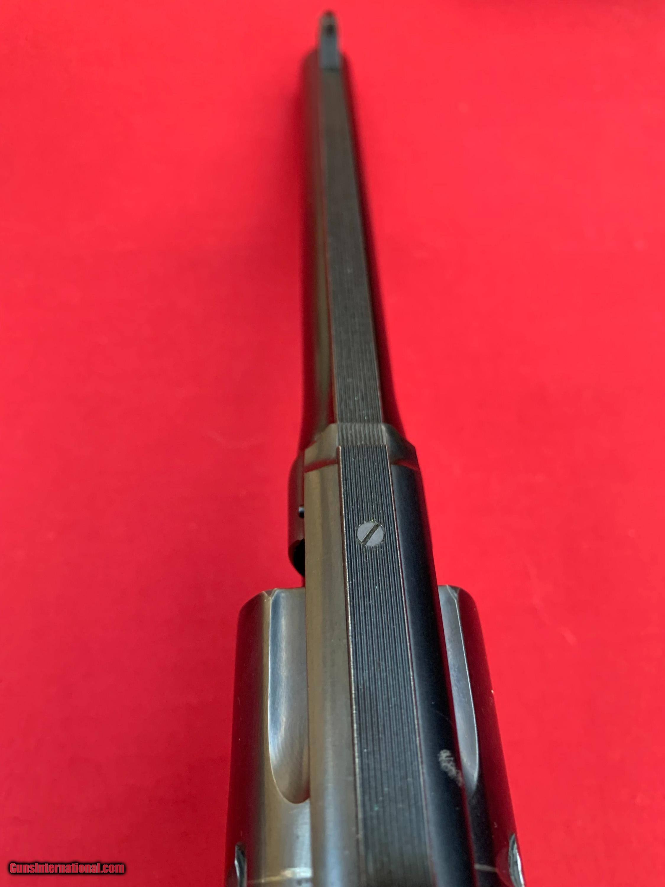 Description: Smith & Wesson K-22 Masterpiece 6" barrel, blued finish, walnut grips in original gold box in excellent condition with very little muzzle wear and only a slight ring in the finish around the cylinder. See pictures for details, any questions please ask, additional pictures or details are available on request. Please contact via email or text message, phone calls best after 5pm if during week days SOLD Handgun Caliber: .22 Long Rifle Manufacturer: Smith & Wesson Model: K-22 Masterpiece Serial Number: K 55947 Barrel Length: 6 Manufacture Date: 1948 Item Location: New Jersey |