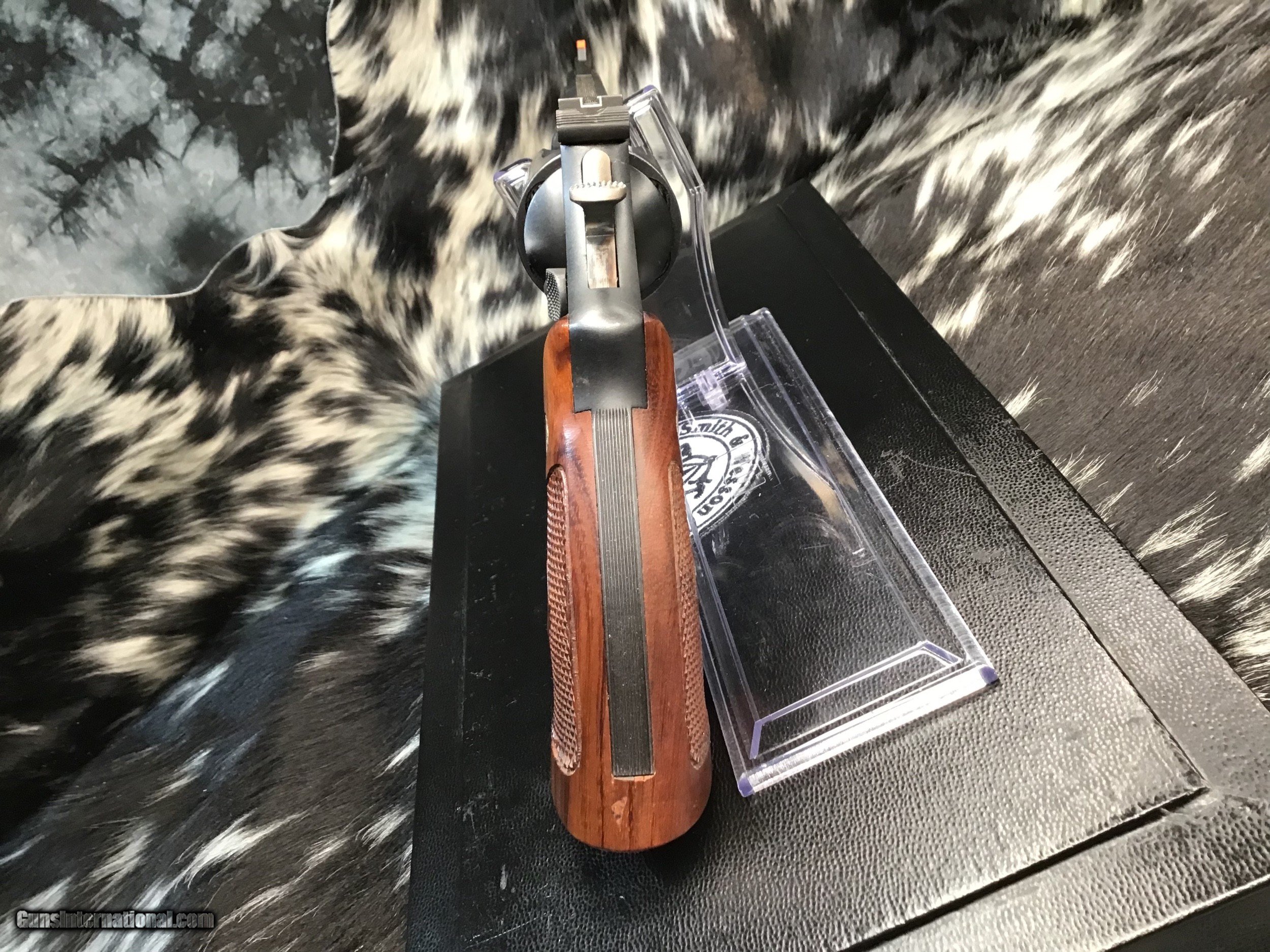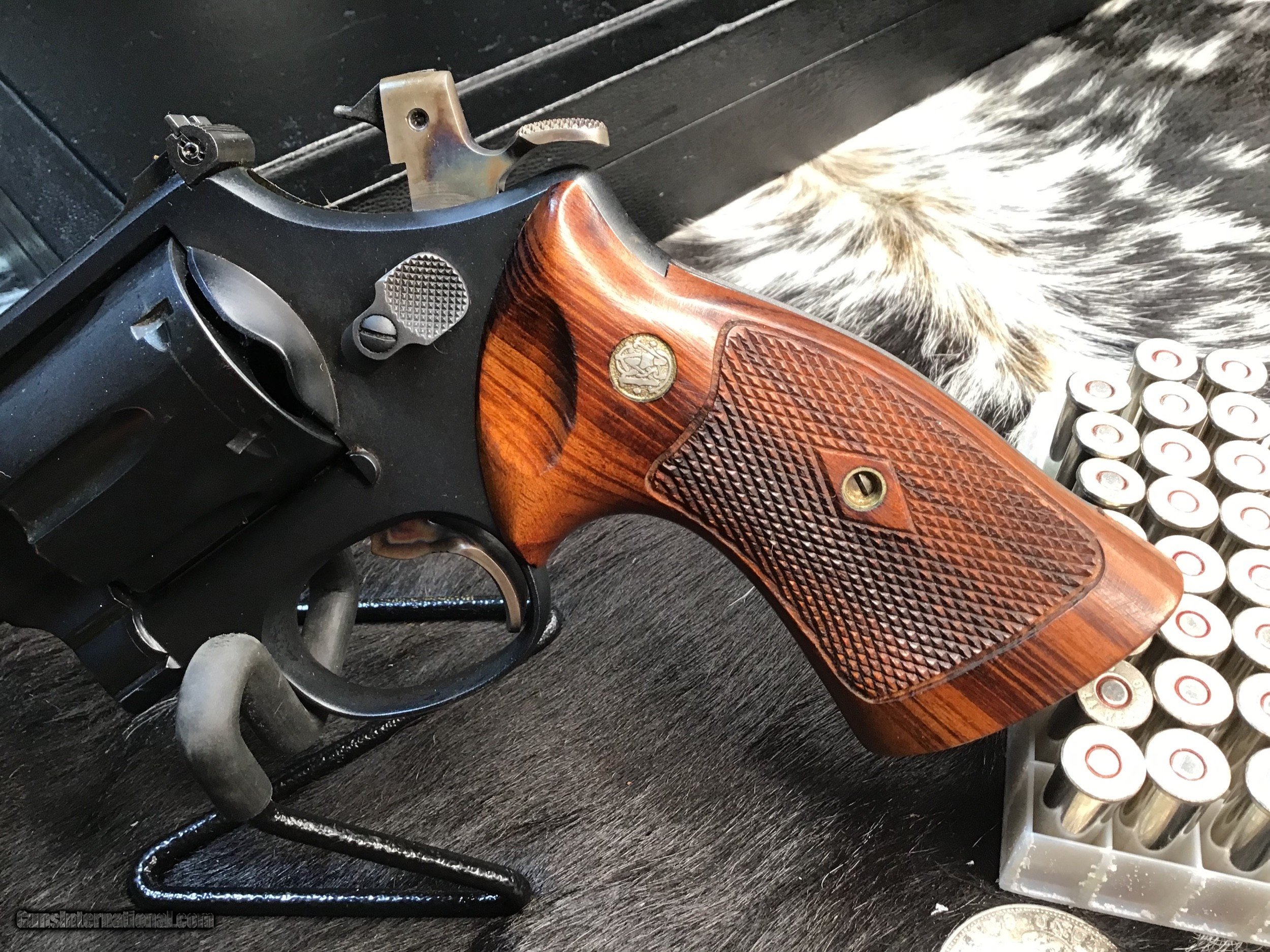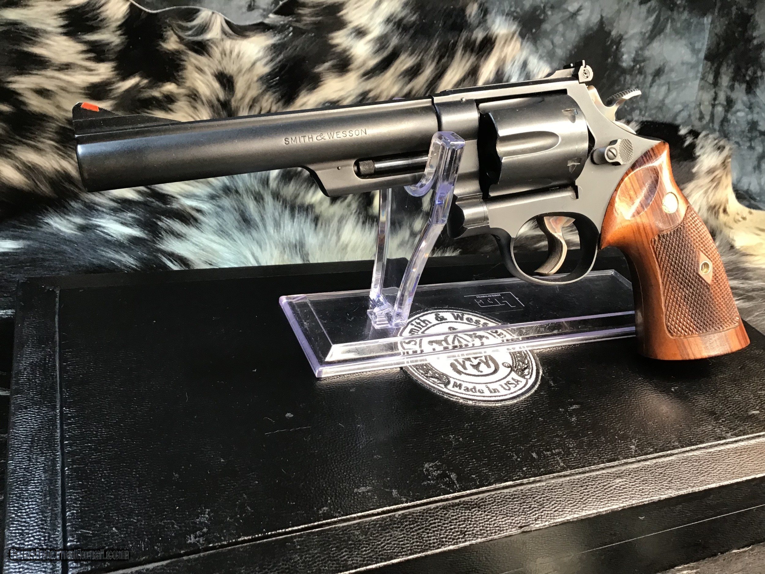 Description: 1957 Mfg. Smith & Wesson Pre-29 model (NT-430) revolver chambered in .44 magnum and wearing a 6 1/2 inch barrel, Beautiful Goncalo Alves Coke bottle Diamond checkered grips and a matte blued finish. Gun remains in excellent condition with light use. Red post front sight with white outline adjustable rear sight. Target hammer, Target trigger and pinned barrel. Come comes in French cut Black presentation case with tools and Smith & Wesson factory letter shown in photos. A fine piece of the American gunmakers craft made in the USA. Add 3% if paying with credit card. Free shipping for all US Veterans. God Bless America from a proud American, and a Viet Nam Vet , thankful for our freedoms.. paid for by the Blood ,Sweat and Tears of our brave men and women in uniform. Ten Below Firearms is a Veteran owned and operated business. We specialize in out of production models of high quality firearms. We love to ship! We ship to all states where legal, just give us a call! Handguns normally ship for $35 and Long guns for $50 and up for extra length long guns. That's 2-3 day USPS Priority shipping, Delivery conformation and with tracking number. Optional Postal insurance is additional $1.75 per $100 and highly recommended. We are OPEN BY APPOINTMENT ONLY FOR IN PERSON VISITS, We trade, sometimes. All payments sent via mail must be received within five days of date of purchase or item will be relisted for sale. Layaway:If needed we offer a 60 day layaway program. Terms, 1/3 of purchase price down, 1/3 due in 30 days, and the final third to include card fees and shipping due at 60 days. Funds are non transferable and non refundable .Layaway is not available on negotiated prices. SOLD Curio/Relic: Yes Handgun Caliber: .44 Remington Magnum Manufacturer: Smith & Wesson Model: Pre-29 Serial Number: S176069 Barrel Length: 6.5 inch Condition: Very good/Fine Metal Condition: Excellent Wood Condition: Excellent Bore Condition: Excellent Action: DA/SA Triggers: Wide Target Finish: Matte Blued Sights: Target adjustable Manufacture Date: 1957 Extras: Factory letter, tools Case: Presentation case Item Location: Mn |