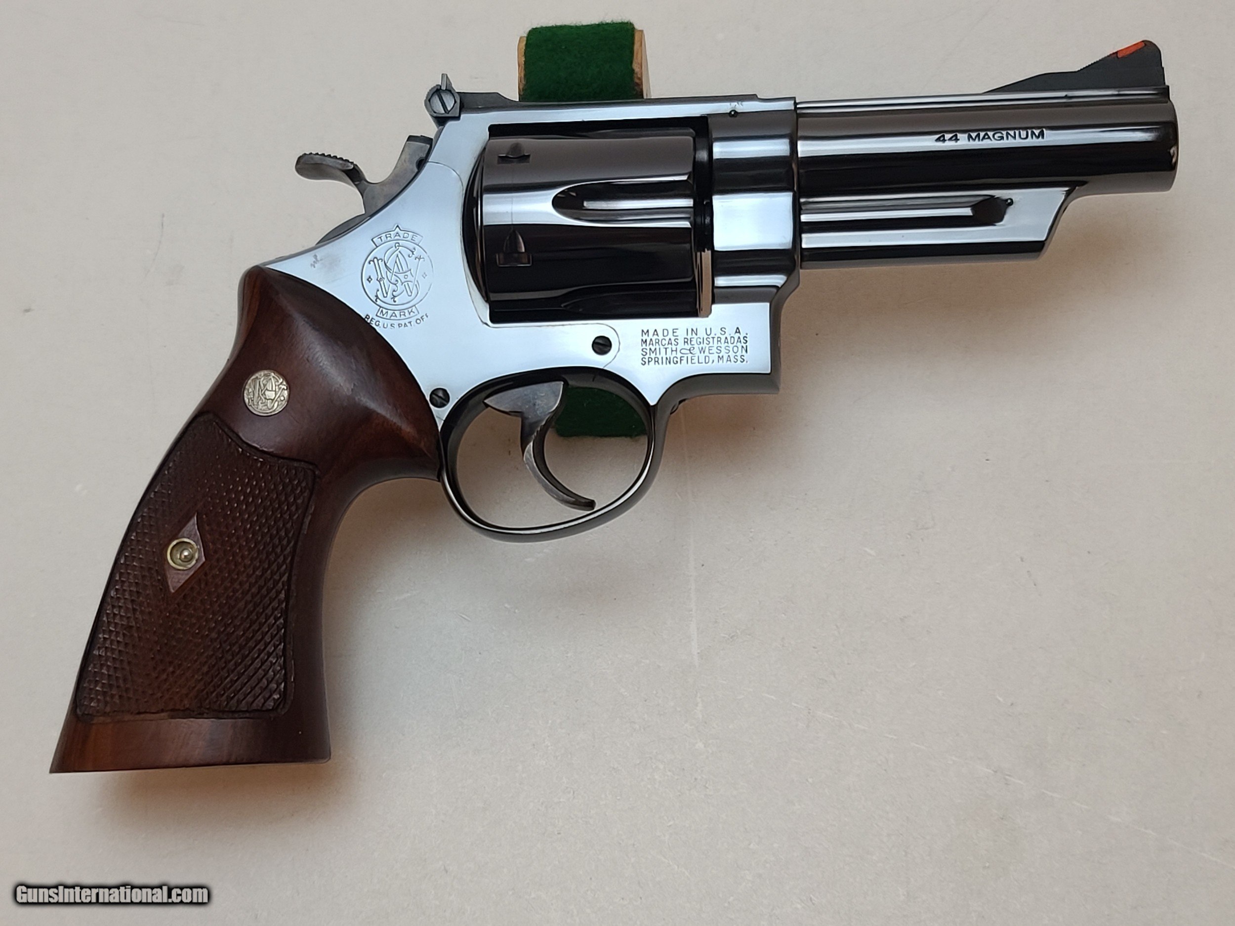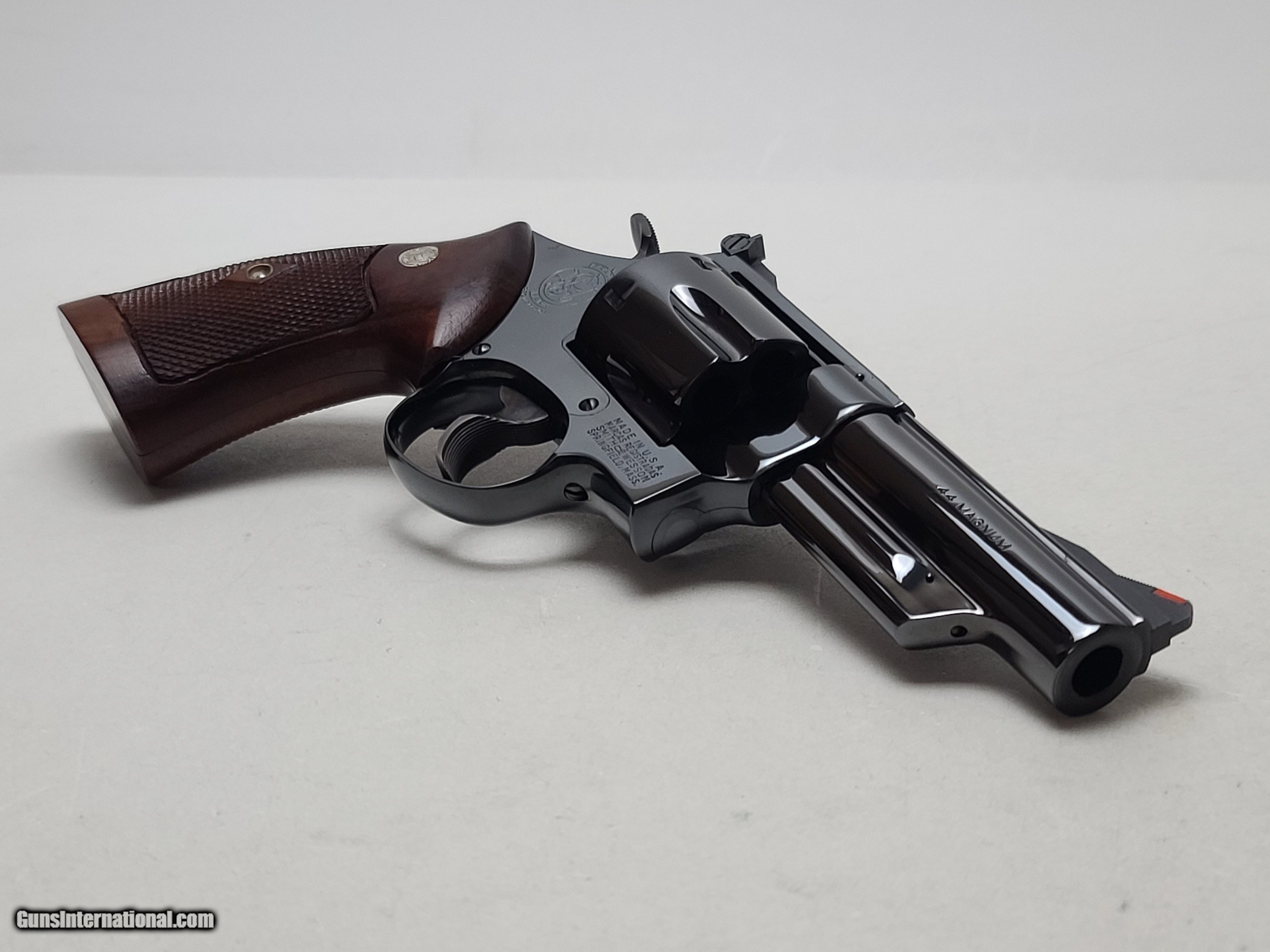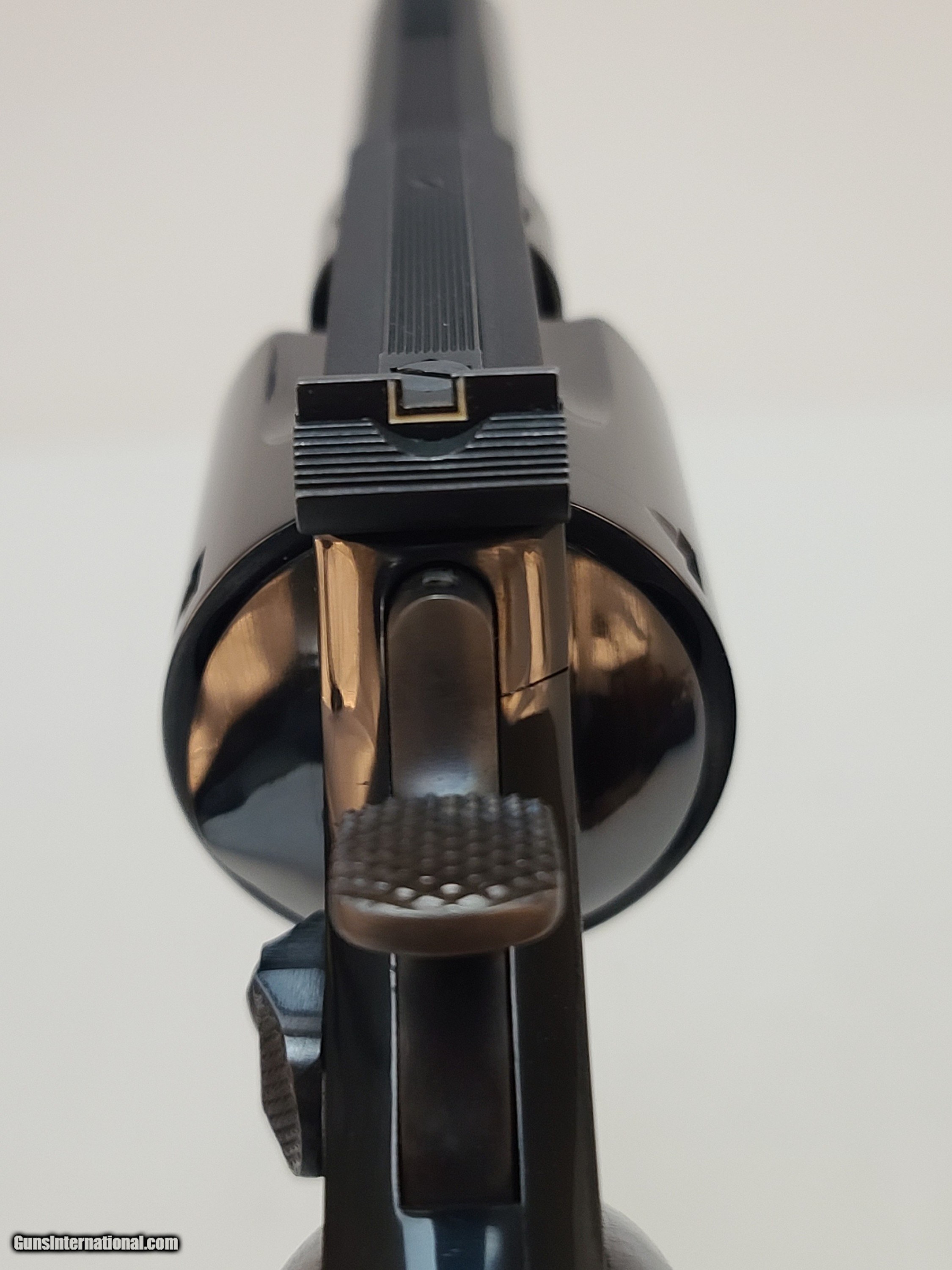 Description: Available here is a mint condition smith and wesson pre model 29 with a 4 inch barrel and 4 screws in the frame. This revolver retains the original authentic high polish blue finish in near perfect condition. It shows slight of brightness on the right side plate.. 1 small mark, otherwise I dont think it has another mark on it. It has not been fired much as confirmed by an expert smith enthuest collector. This is a no excuses firearm with top level finish and condition. Checkering on grips is flawless as well. Box has light wear on outside and lining has tear under rear sight on inside, the tools are all included. No paperwork, This gun is near best of the best. A factory letter is included. Please let me know if you have any questions or concerns.. 480 490 9331, NO Tax is required here, just 50.00 to ship fedex 2-day well insured. FFL is required, C&R transfers OK. SOLD Manufacturer: Smith & Wesson Model: pre 29 Barrel Length: 4 Condition: mint Metal Condition: mint Wood Condition: mint Bore Condition: perfect |