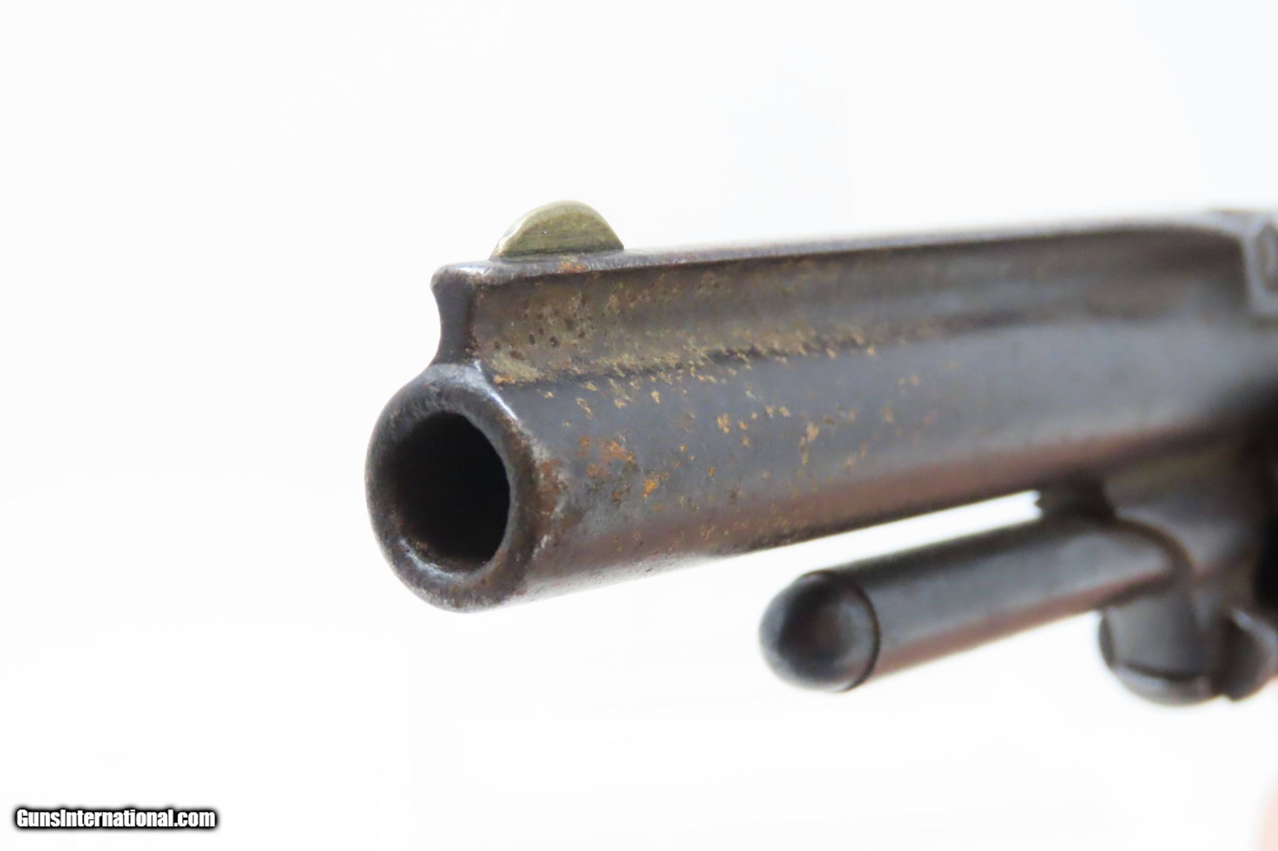 Description: Antique SMITH & WESSON Number 1-1/2 2nd Issue .32 Caliber Rimfire REVOLVER Nickel Plated WILD WEST S&W Spur Trigger Here we present an antique Smith & Wesson Model Number 1-1/2 .32 Rimfire 2nd Issue Revolver, made circa 1868-1875 in Springfield, Massachusetts. Like the 1st Issue, it was also produced in blued steel and nickel-plated varieties, with most models having a ?3 1⁄2-inch barrel. 2nd Issue guns were serial numbered consecutively after the 1st Issue, with numbers ranging from approximately 26,300 through 127,000. The No. 1 was Smith & Wesson’s first metallic cartridge firearm. It utilized the idea of the “bored through cylinder”, which was patented by Rollin White and subsequently exclusively licensed by Smith & Wesson. This concept has forever changed revolving firearms design, and is the same idea used in revolvers today. S&W, via Rollin White himself, aggressively sued any patent infringers and were able to hold their monopoly on the American market for cartridge revolvers from about 1857 to 1870, whereupon their patent expired. The results were a very profitable business, a broke Rollin White, and a grudging U.S. Chief of Ordnance Alexander Dyer, who was still angry in 1870 about not being able to use the technology during the Civil War. The U.S. government ended up giving Colt their contracts since they valued the larger .44 caliber in the Colt 1860 Armies over the .32 caliber full sized No. 2 Armies. The overall condition is good. Strong action with a tight lock up. Good bore, clear, and dim. Both grips are in good shape with an expected amount of handling. Visible marks are legible. Own the original! This is a legitimate antique and not a reproduction. Barrel is 3-1/2 inches. Caliber: .32 Rimfire Overall condition as seen in photos. Very Fast. Very Safe. FREE SHIPPING WORLDWIDE. Delivered directly to your door by express mail! Guaranteed AUTHENTIC & Includes CERTIFICATE OF AUTHENTICITY. ancestryguns $1200 #217817 SOLD Antique: Yes |