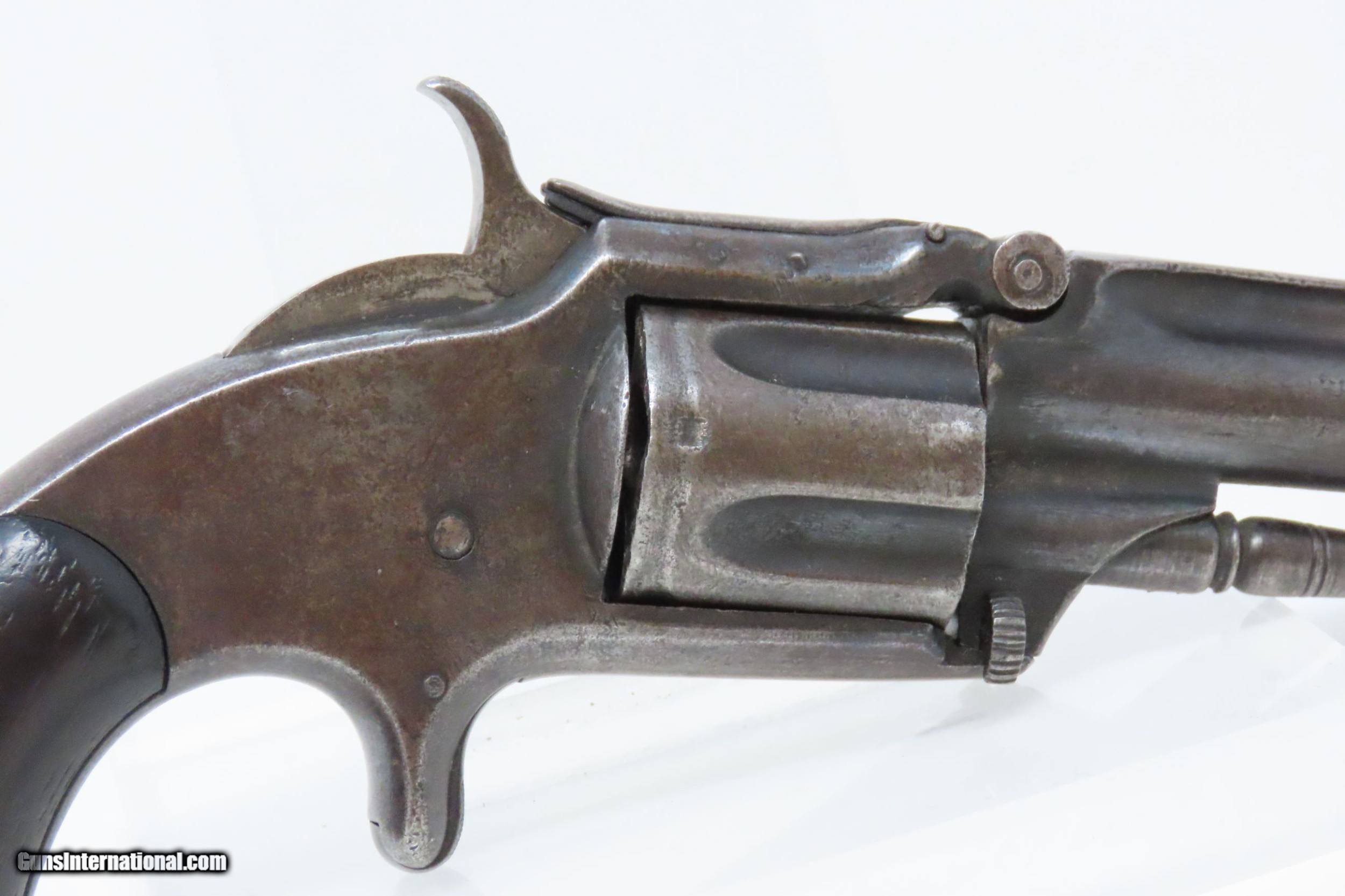 Description: Antique SMITH & WESSON Number 1-1/2 2nd Issue .32 Caliber S&W CF REVOLVER Antique WILD WEST S&W Spur Trigger Here we present an antique Smith & Wesson Model Number 1-1/2 .32 S&W 2nd Issue Revolver, made circa 1868-1875 in Springfield, Massachusetts. Like the 1st Issue, it was also produced in blued steel and nickel-plated varieties, with most models having a ?3 1⁄2-inch barrel. 2nd Issue guns were serial numbered consecutively after the 1st Issue, with numbers ranging from approximately 26,300 through 127,000. The No. 1 was Smith & Wesson’s first metallic cartridge firearm. It utilized the idea of the “bored through cylinder”, which was patented by Rollin White and subsequently exclusively licensed by Smith & Wesson. This concept has forever changed revolving firearms design, and is the same idea used in revolvers today. S&W, via Rollin White himself, aggressively sued any patent infringers and were able to hold their monopoly on the American market for cartridge revolvers from about 1857 to 1870, whereupon their patent expired. The results were a very profitable business, a broke Rollin White, and a grudging U.S. Chief of Ordnance Alexander Dyer, who was still angry in 1870 about not being able to use the technology during the Civil War. The U.S. government ended up giving Colt their contracts since they valued the larger .44 caliber in the Colt 1860 Armies over the .32 caliber full sized No. 2 Armies. The overall condition is good. Semi-bright bore (contains spots of pitting). The action does not function (freewheeling cylinder, intermittent indexing, and a weak hammer spring). Good grips. Legible markings. Own the original! This is a legitimate antique and not a reproduction. Barrel is 3-1/2 inches. Caliber: .32 S&W Overall condition as seen in photos. Very Fast. Very Safe. FREE SHIPPING WORLDWIDE. Delivered directly to your door by express mail! Guaranteed AUTHENTIC & Includes CERTIFICATE OF AUTHENTICITY. ancestryguns $1200 #217818 SOLD Antique: Yes |