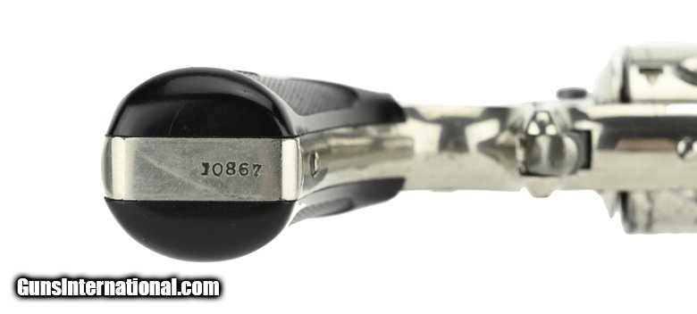 Baby Russian Smith & Wesson .38 S&W caliber. 3 ¼” Barrel length. Manufacture approximately 98% original factory nickel. The cylinder has approximately 90-93% original factory nickel with some light edge wear. This is a very nice baby Russian!