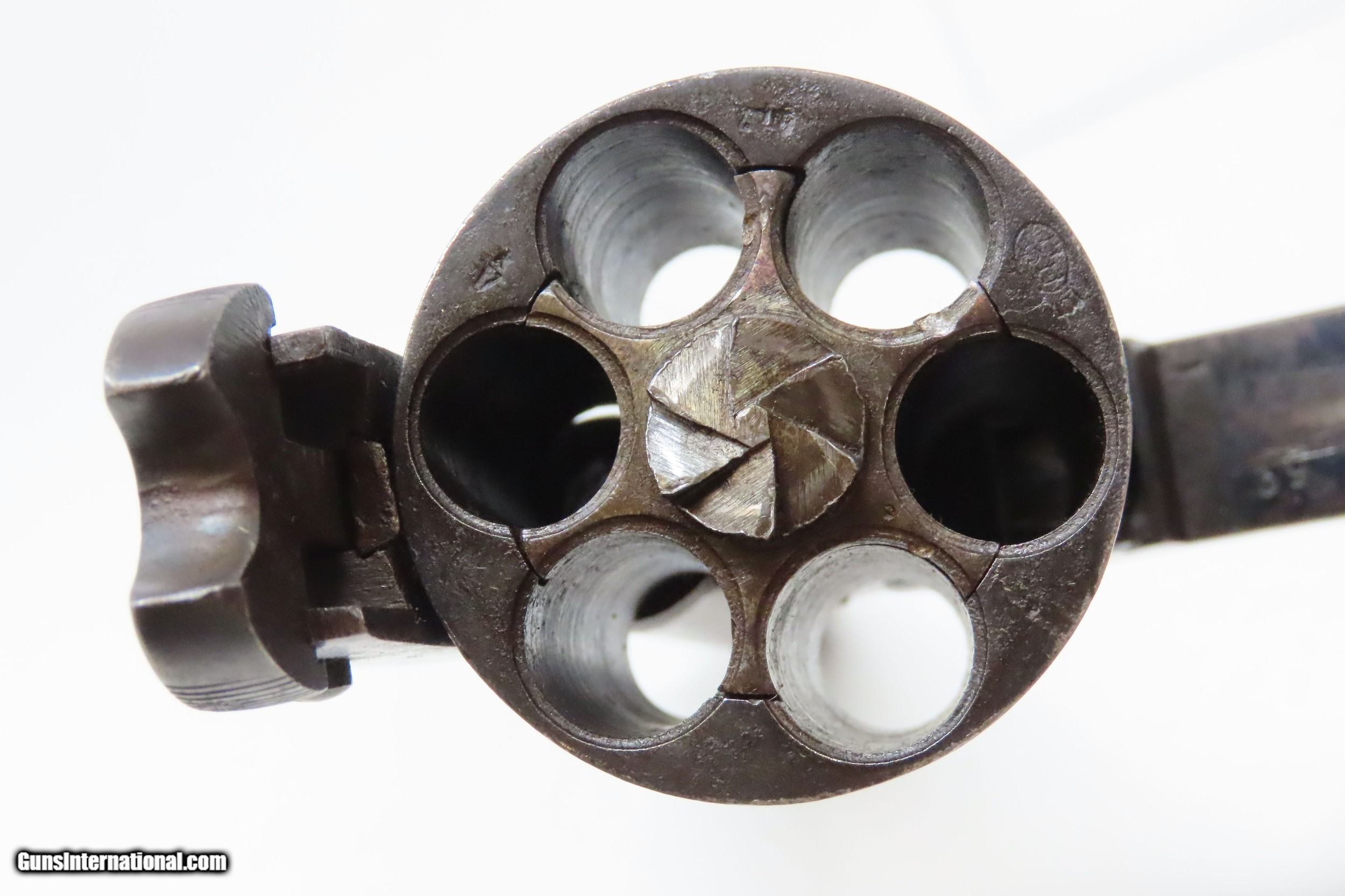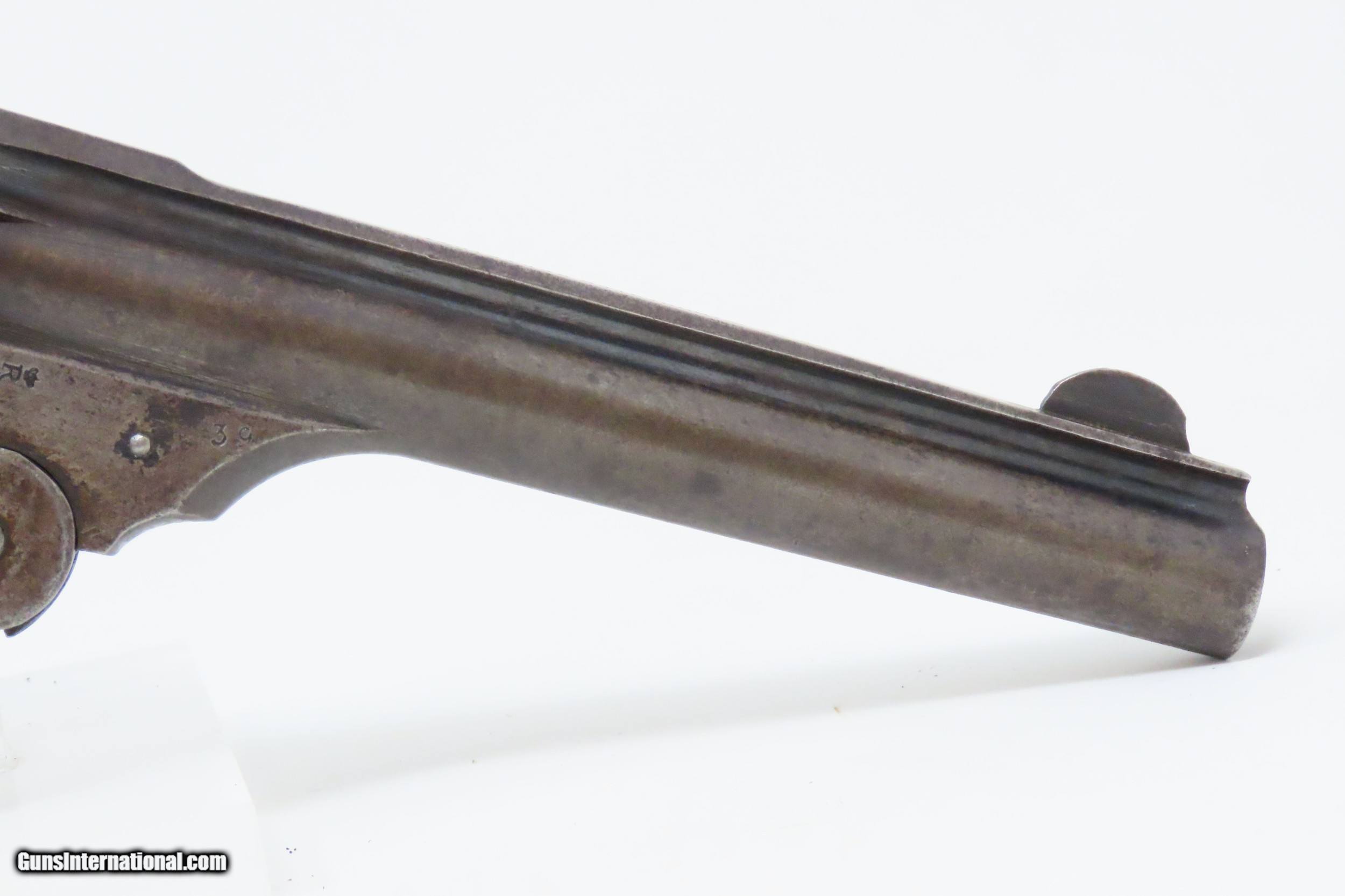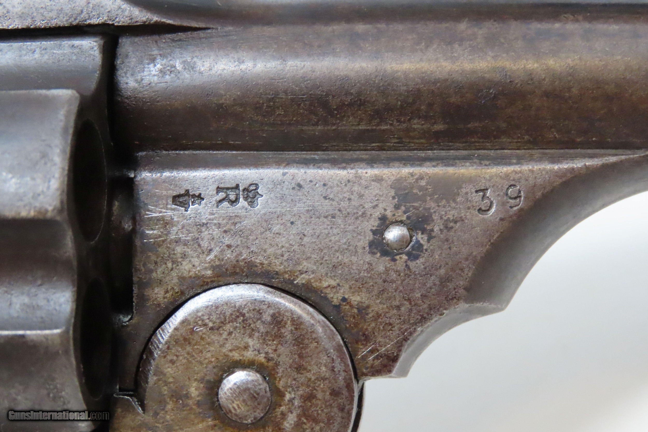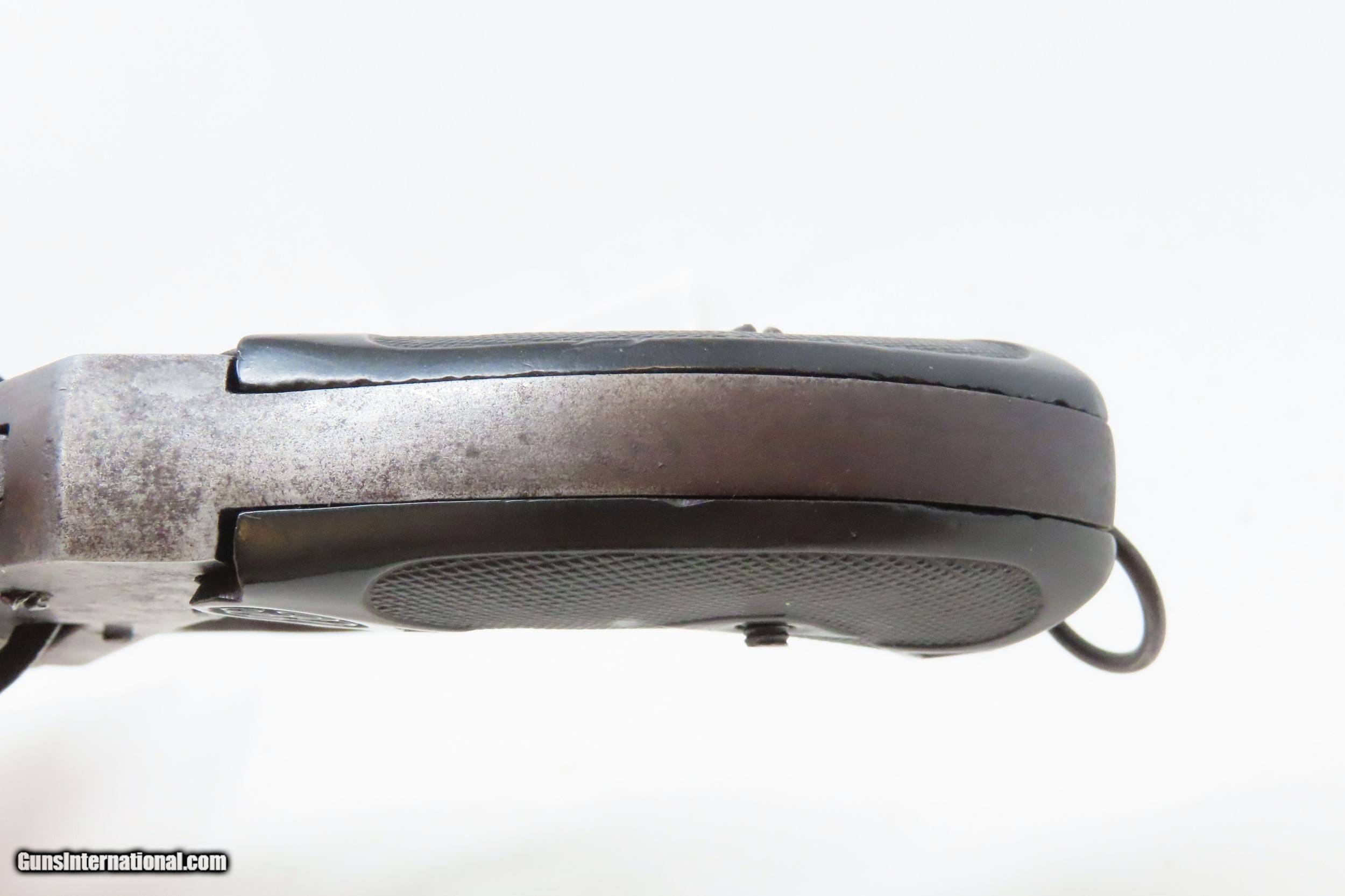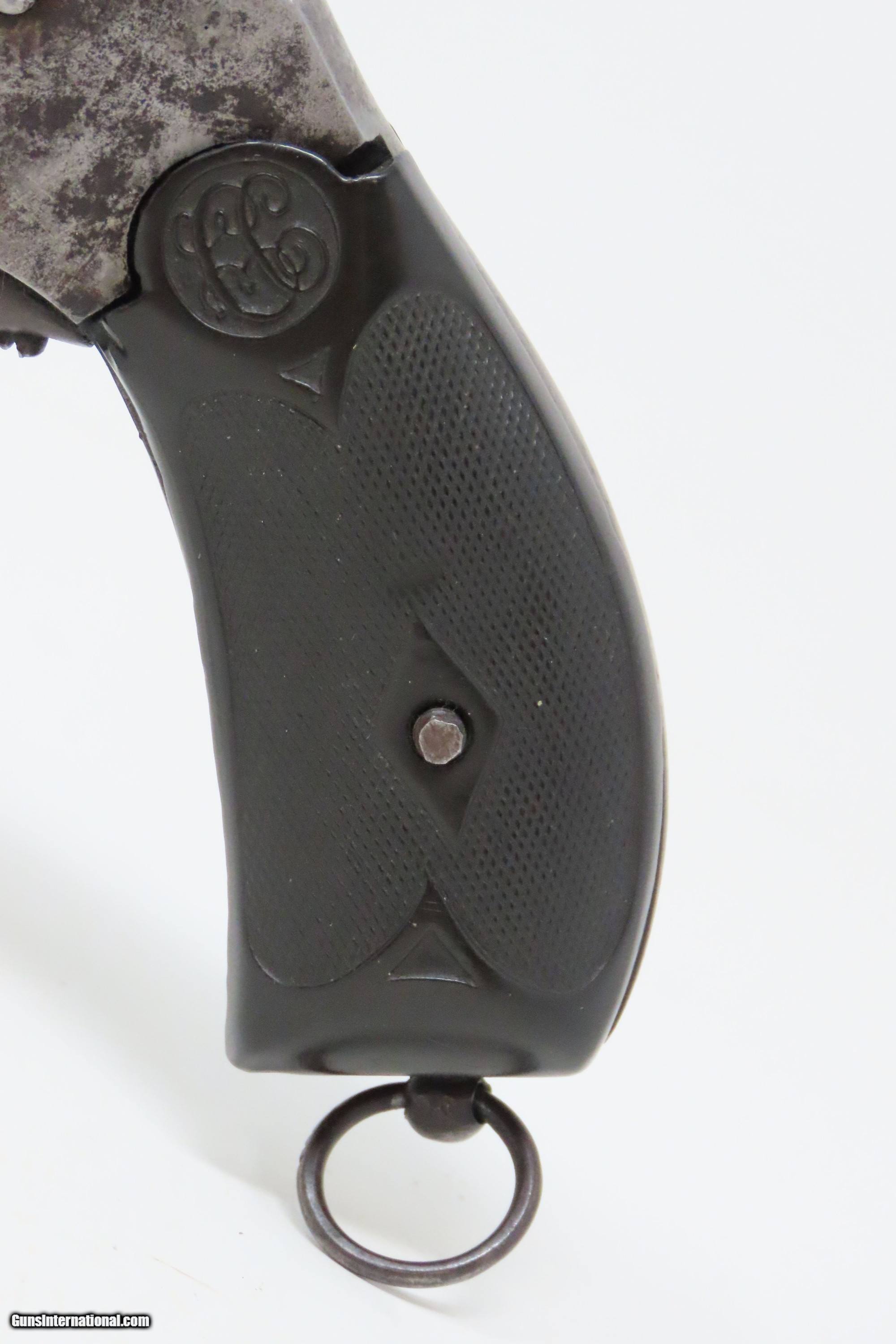 Description: BELGIAN Copy SMITH & WESSON .44 Cal. DOUBLE ACTION Top Break Revolver C&R Period Copy of Smith & Wesson’s Large Cal. Revolver Here we present a C&R Belgian Copy of a .44-40 WCF Smith & Wesson Top Break Revolver, made circa the early 1900s likely in Liege, Belgium. This is a large, double action revolver with 6-shots of .44-40. It has a lanyard ring on the bottom of the grip. This top-break revolver ejects brass when opened. It was very likely made with the intent of exporting to the United States. The overall condition is good. Original finish/patina. The action is strong, though the cylinder timing is just a bit slow. The bore is in good condition: reflective with strong rifling. The grips are worn and move slightly on the frame. This firearm is classified as a Curio & Relic. Barrel is 6-1/4 inches. Caliber: .44 Winchester Center Fire Overall condition as seen in photos. Very Fast. Very Safe. FREE SHIPPING. Will need to be sent to your local FFL or C&R licensee. This firearm is classified as a Curio & Relic. Guaranteed AUTHENTIC & Includes CERTIFICATE OF AUTHENTICITY. ancestryguns $1200 #227935 SOLD Curio/Relic: Yes |