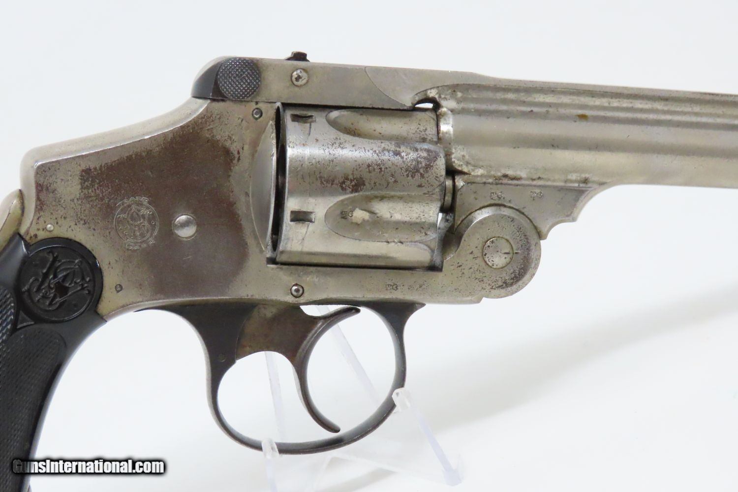 Description: BRIT SMITH & WESSON .38 S&W Safety HAMMERLESS Top Break Revolver C&R “LEMON SQUEEZER” with BRITISH PROOFS Here we present a 5th Model Smith & Wesson .38 Double Action Safety Hammerless Revolver, made circa 1907-1940 in Springfield, Massachusetts. Over the 33-year production run for the 5th model, roughly 41,500 were manufactured. The Smith & Wesson Safety Hammerless models were produced from 1887 (1888 for the 32) to just before World War II. They were chambered in either .32 S&W or .38 S&W with a five-shot cylinder. They were most often produced with a 2-inch, 3-inch, 3.5-inch, or 4-inch barrel. But some 6" barreled versions, as this one is, are known to exist. This revolver was made to be a simple, compact and reliable firearm that one could carry in a pocket or a holster around the turn of the 20th Century. This revolver features an internal hammer design to remove risk of snagging or stopping the action. There is a grip safety built into the back of the grip frame. The frame is a top-break design that activates the automatic ejector. These are very nice features from the turn of the 20th Century! They were known as "The New Departure" to reflect the company's new approach to designing revolvers. This 5th model was the last of the "Lemon Squeezers". The only appreciable difference between this model and 4th Model is the front sight blade on the 5th Model is an integral part of the barrel, not a separate blade pinned onto the barrel. The serial number range on this revolver is 220001 to 261493. This one features British proofs on the cylinder, frame, and barrel. The overall condition is near fine. Original nickel finish with blue accents. There is some thinning on the high-traffic areas and a bit of pitting on the barrel latch. The action is strong and tight all the way around. The bore is bright. Both grips are firm with minimal handling wear. Here is a revolver from S&W to help fill in the collection! This firearm is classified as a Curio & Relic. Barrel is 6 inches. Caliber: .38 S&W Overall condition as seen in photos. Very Fast. Very Safe. FREE SHIPPING. Will need to be sent to your local FFL or C&R licensee. This firearm is classified as a Curio & Relic. Guaranteed AUTHENTIC & Includes CERTIFICATE OF AUTHENTICITY. ancestryguns $845 #201552 SOLD Curio/Relic: Yes |