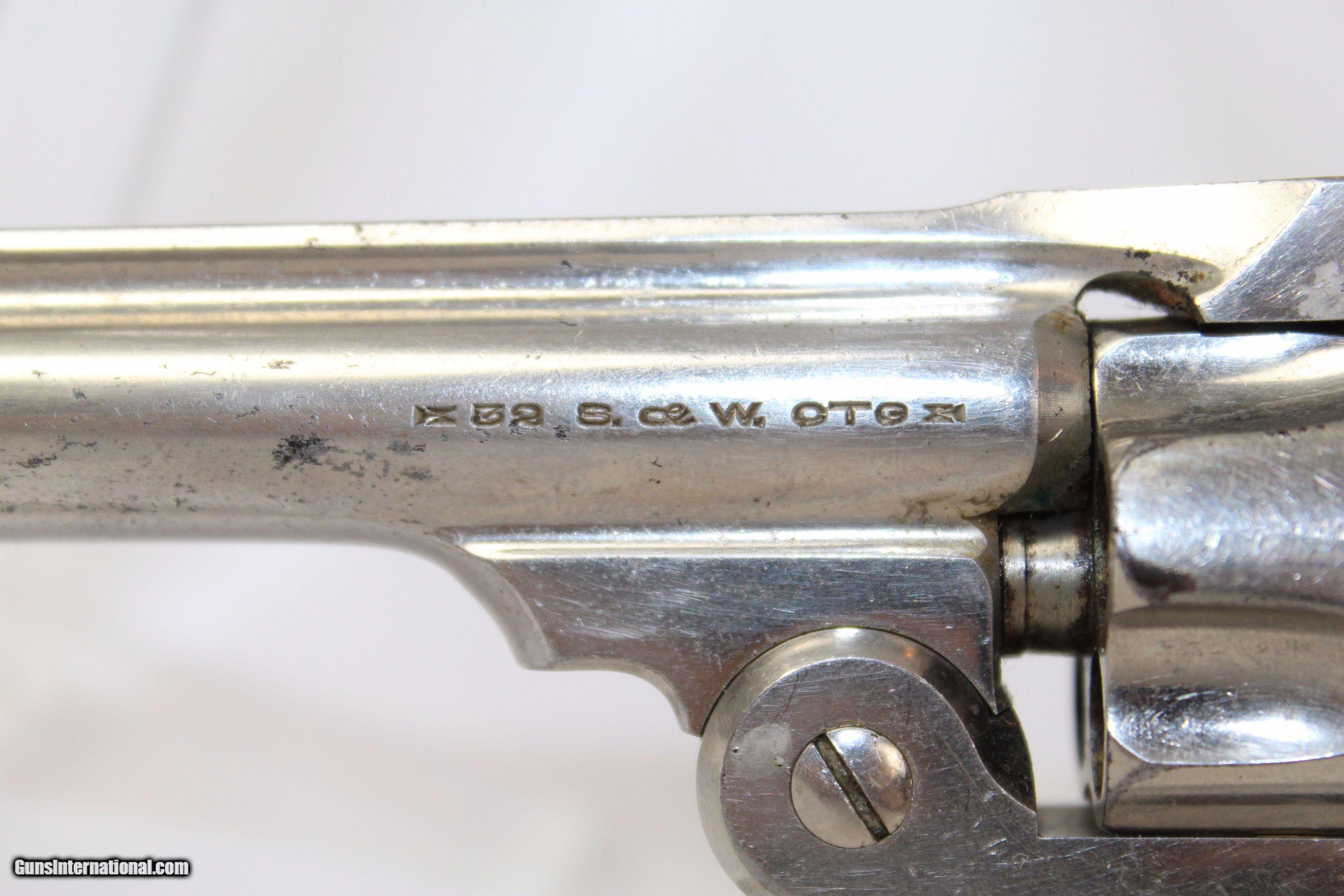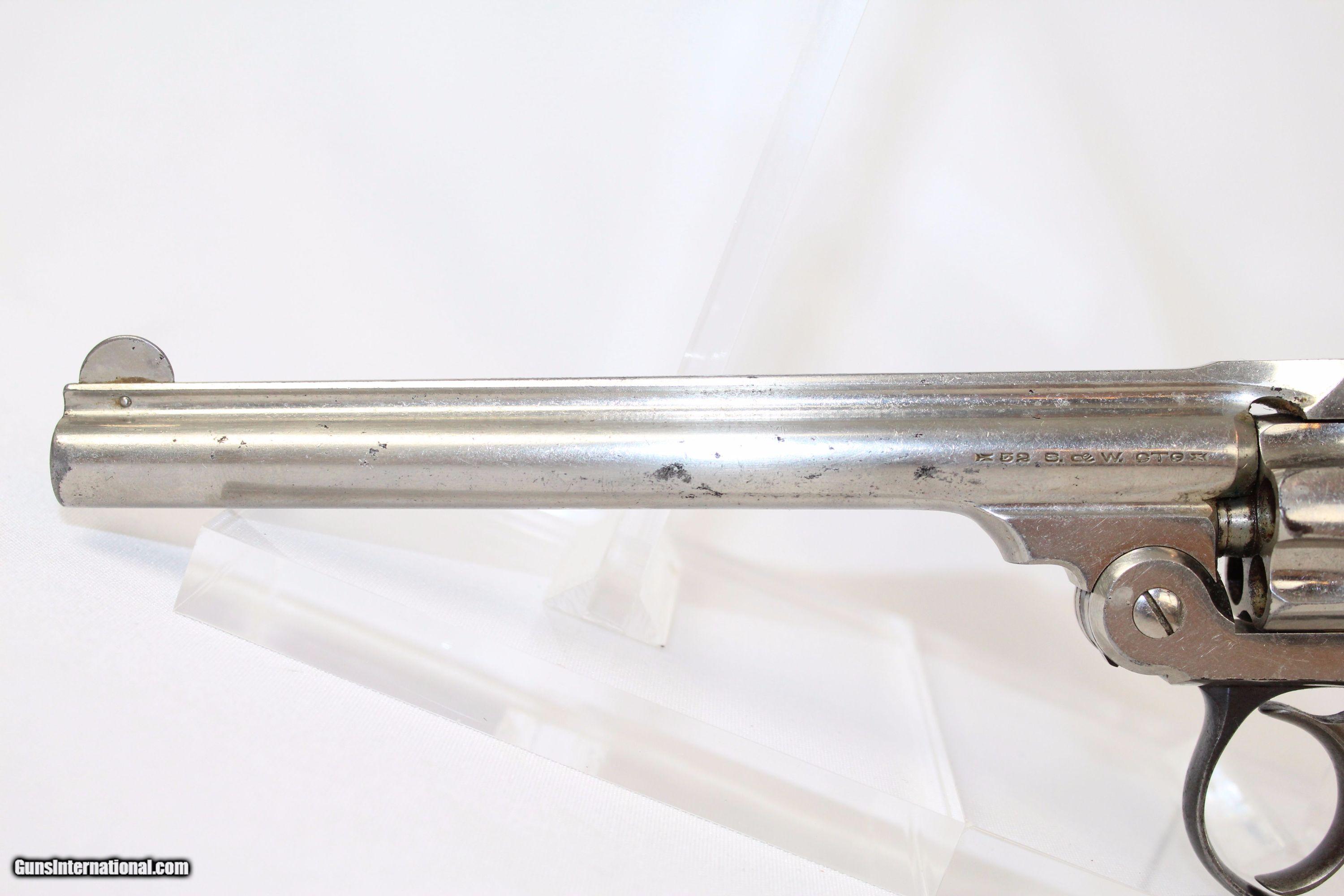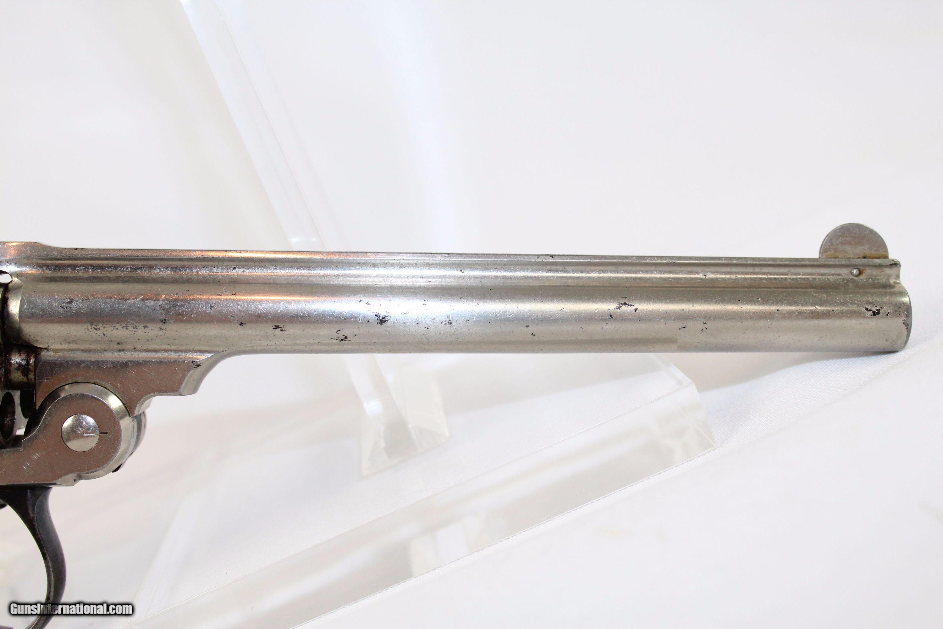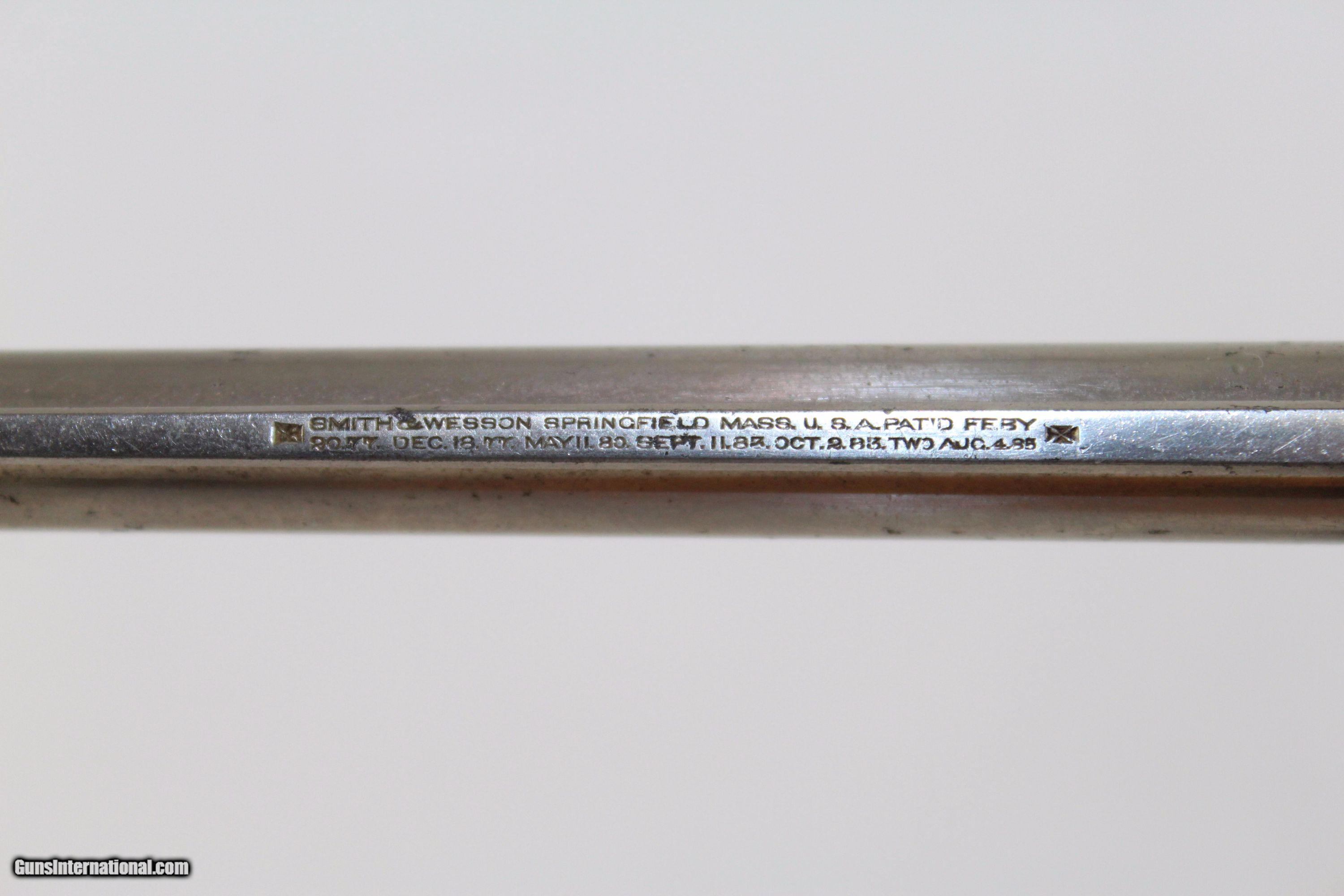 Description: C&R Smith & Wesson .32 S&W HAMMERLESS Revolver Fine & Interesting Pocket Gun with Very Long Barrel Here we present an antique Smith & Wesson .32 S&W Safety Hammerless Revolver, made circa 1907 in Springfield, Massachusetts. These were also known as the “New Departure” or the “Lemon Squeezer”, the latter due to the safety bar in the backstrap. This little revolver holds 5 shots of .32 S&W. It was designed to meet the defensive needs of citizens and law enforcement in the late 19th Century. This is a top break design with an automatic ejector, hammerless design and grip safety. This one features a very long barrel for its size that interestingly negate the other features that make this revolver such a good pocket gun. The 6 inch barrel makes this a scarcer variant. The overall condition is fine. The original nickel finish is 90%. The original blue finish on the barrel latch and trigger guard is about 70%. Case colors are faint but visible on the trigger. The markings are clear and legible. The grips are fine. The bore is in very good condition with sharp rifling. The action is functional, however, the trigger return spring is weak, necessitating manual trigger reset. The firing pin’s tip is also broken. Nevertheless, this is a fine Smith & Wesson that would be worth the small repairs. This firearm is classified as a Curio & Relic. Barrel is 6 inches. Caliber: .32 S&W Overall condition as seen in photos. Very Fast. Very Safe. FREE SHIPPING. Will need to be sent to your local FFL or C&R licensee. This firearm is classified as a Curio & Relic. Guaranteed AUTHENTIC & Includes CERTIFICATE OF AUTHENTICITY. ancestryguns $600 #5159 SOLD Curio/Relic: Yes |