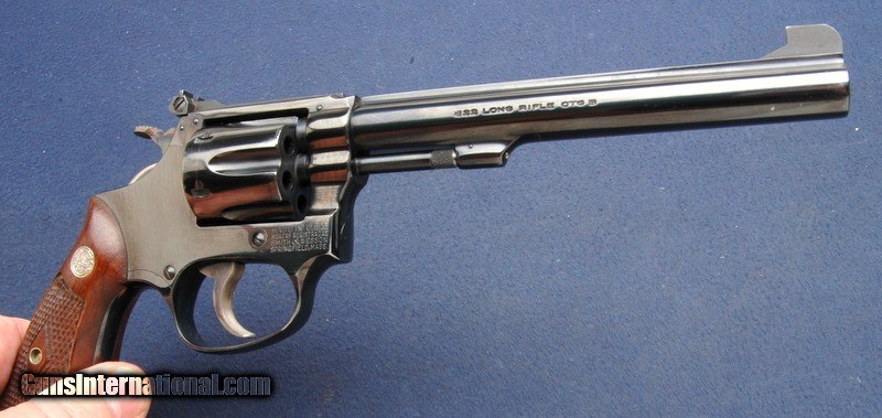 Description: Chambered in .22LR, you can consider this kind of a kit gun target model. 6" barrel, adjustable sights. Only some wear at the muzzle, otherwise about 98%. Bright, oiled bore. Sweet piece! Sorry, no box or papers. $45 shipping to the lower 48, 3% surcharge for using a CC. If you pay with a personal check, you can expect us to hold the item for up to 10 days to ensure that the check clears. SOLD Handgun Caliber: .22 Long Rifle |