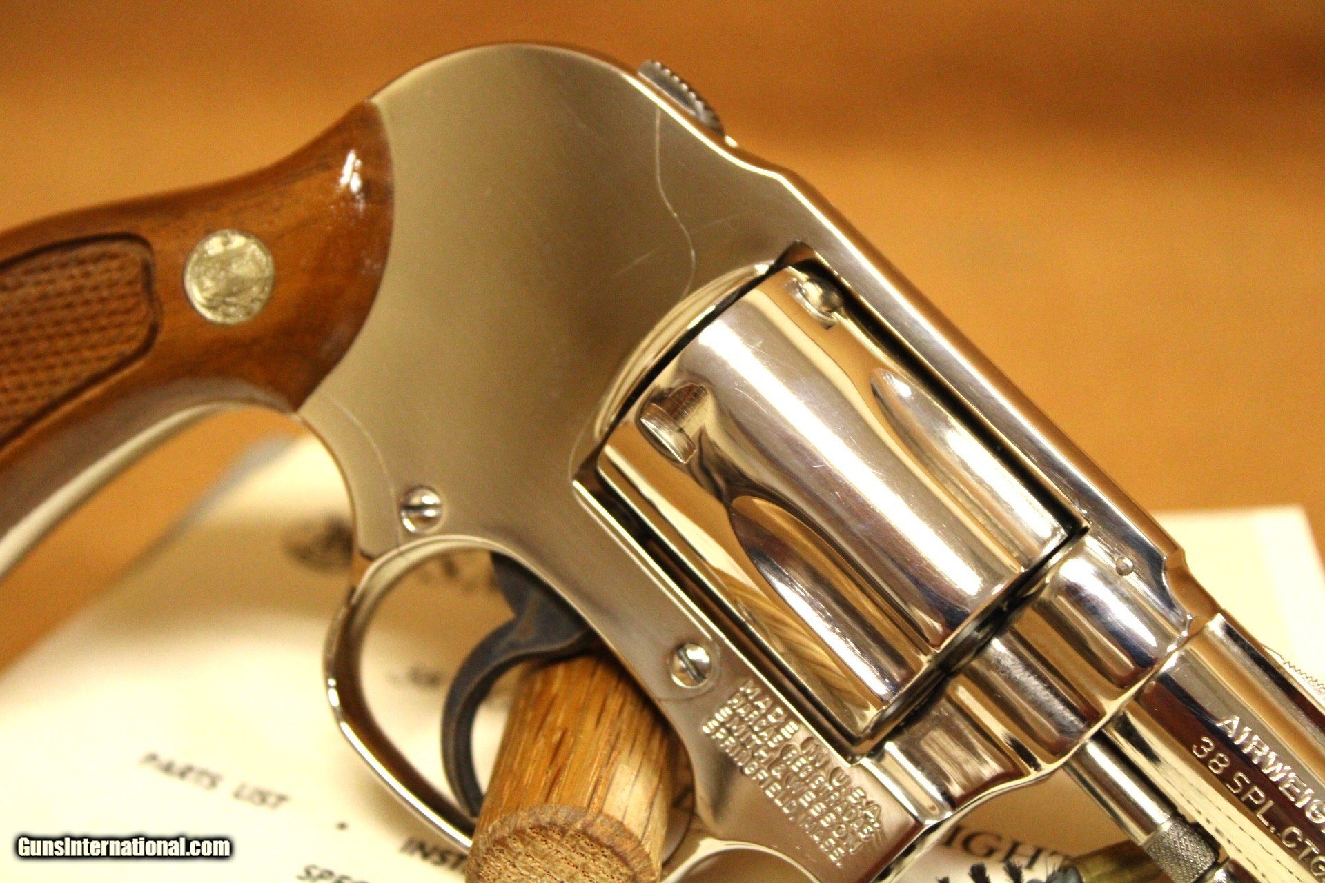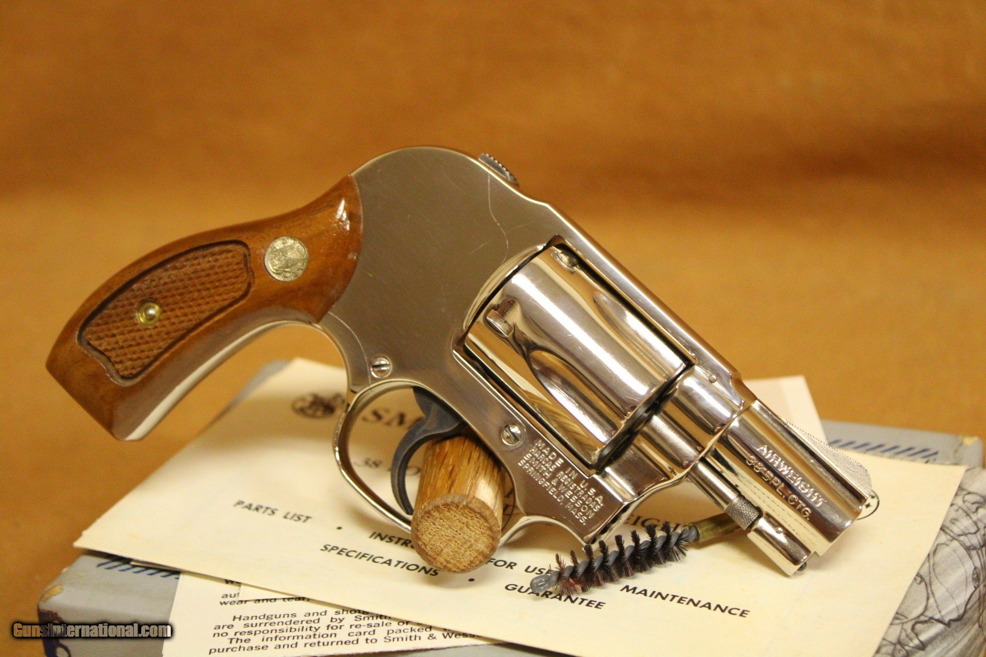 Description: The Bodyguard series, later named Models 38, 49, 638, and 649, offered a compromise not found in many other revolvers. Typically, you can either have a fully enclosed hammer to prevent snags, which prevents use in single-action, or you can have an exposed hammer that can snag but allows precise single-action use. These models, with aluminum, steel, and stainless steel frames respectively, allow both by having a shroud that leaves only the serrated hammer spur exposed. This prevents snagging and allows for single-action use, the best of both worlds. This Model 38 Bodyguard Airweight is a compact and lightweight, snag-free revolver that is still capable of precise shooting when necessary. This example has a nickel finish that would rate 99%. The gun appears to only have been factory test fired. Matching box. Gun is all matching, including the grips. All items are also available for sale in our brick & mortar store and are subject to prior sale. Think long, think wrong. Payment On firearms, we typically only accept credit cards or money orders/cashier's checks.