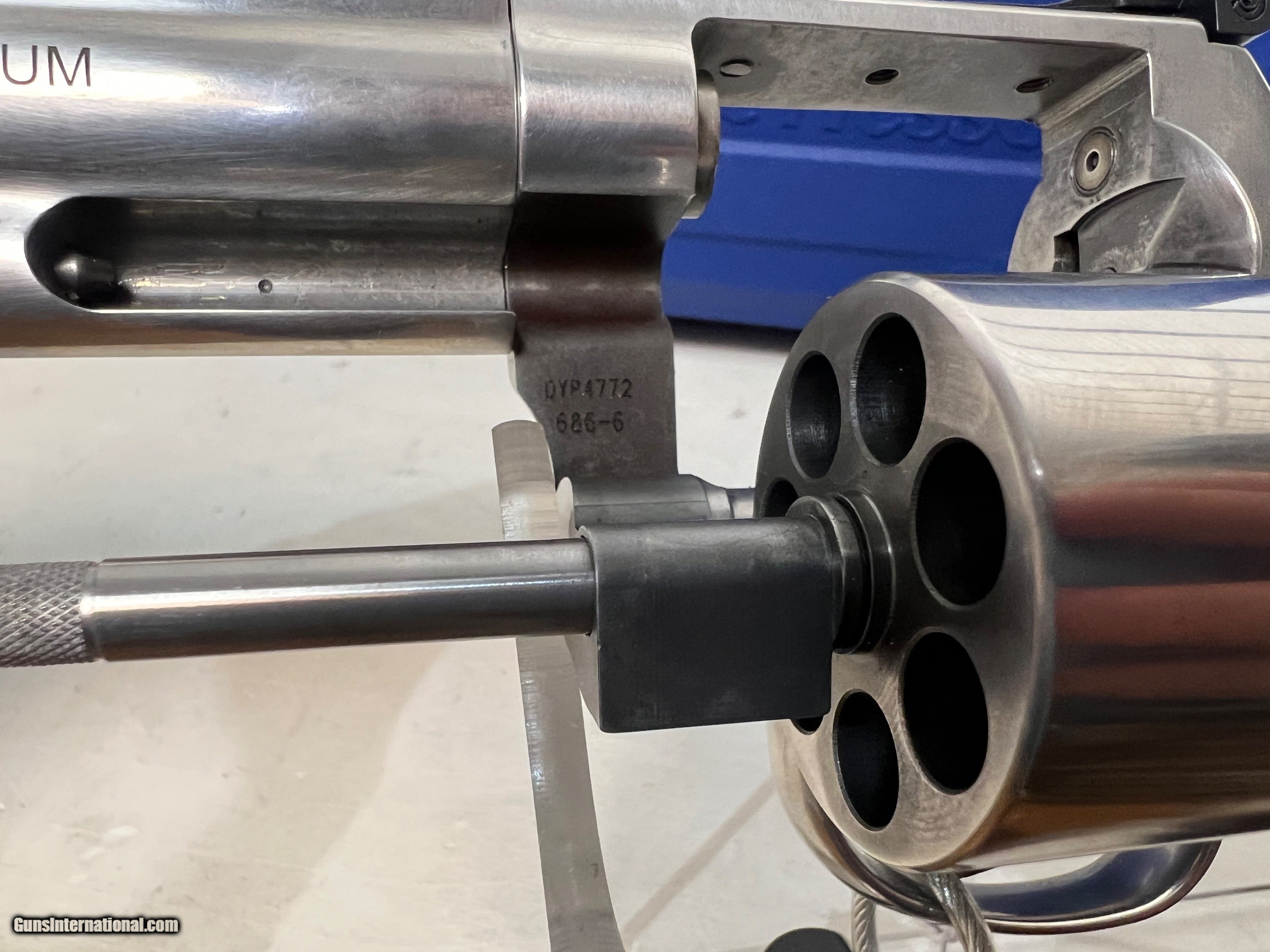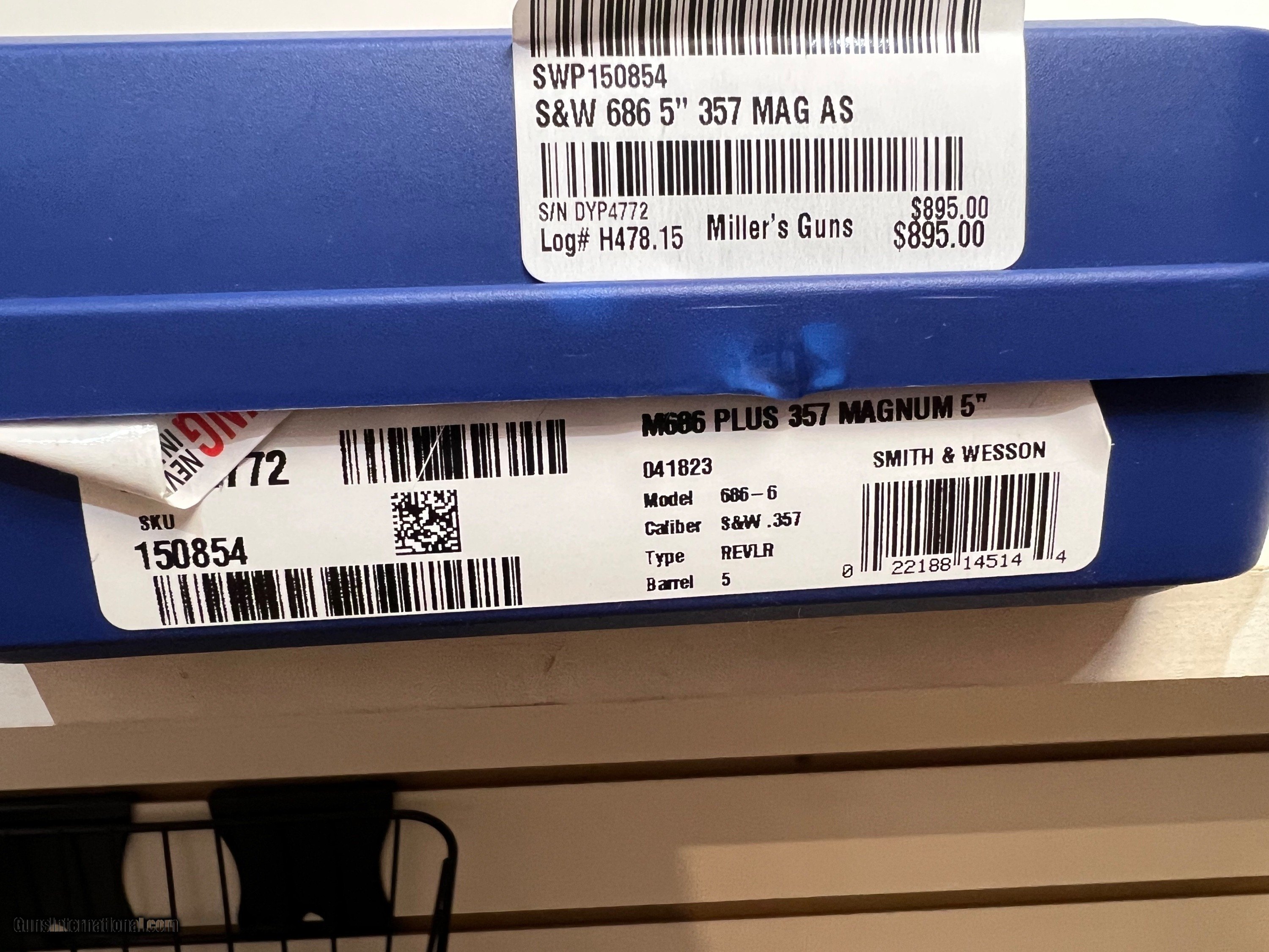 Description: NEW 686 5" 375 Magnum 38 Special 7-Shot Stainless (CALIBER:357);(MAG CAPACITY:7);(MODEL SERIES:686|686 PLUS);(CAPACITY:7);(FINISH:SATIN STAINLESS FINISH);(STOCK:BLACK/SILVER LAMINATE 357 CUSTOM WOOD GRIP);(SIGHTS:FT: RED RAMP RR: ADJUSTABLE WITH WHITE OUTLINE);(OVERALL LENGTH:10.25);(FEATURES:SQUARE BUTT/ FORGED HAMMER + TRIGGER/ UNFLUTED CYL);(GUN TYPE:REVOLVER: DOUBLE ACTION);(ACTION:DOUBLE ACTION);(BARREL LENGTH:5);(DEPT:HANDGUN) Buyer pays shipping Millers Gun Center Located in New Castle, Delaware "Home of TAX-Free shopping" No Credit Card Fees Send Gun international inquiry and then call 302-328-9747 to complete your purchase SOLD Handgun Caliber: .38 Special, .357 Magnum Manufacturer: Smith & Wesson Model: 686 Plus Serial Number: DYP4772 |