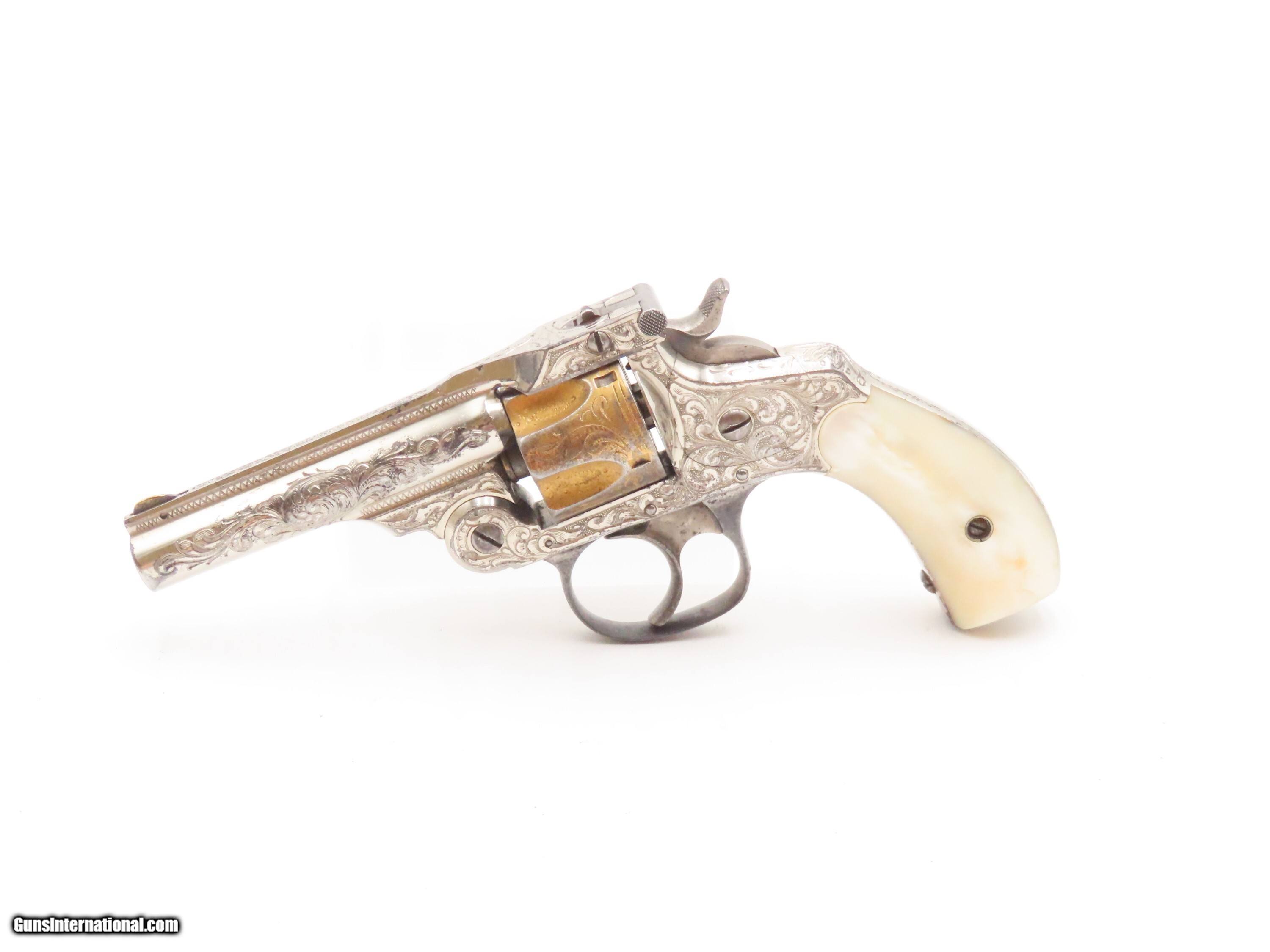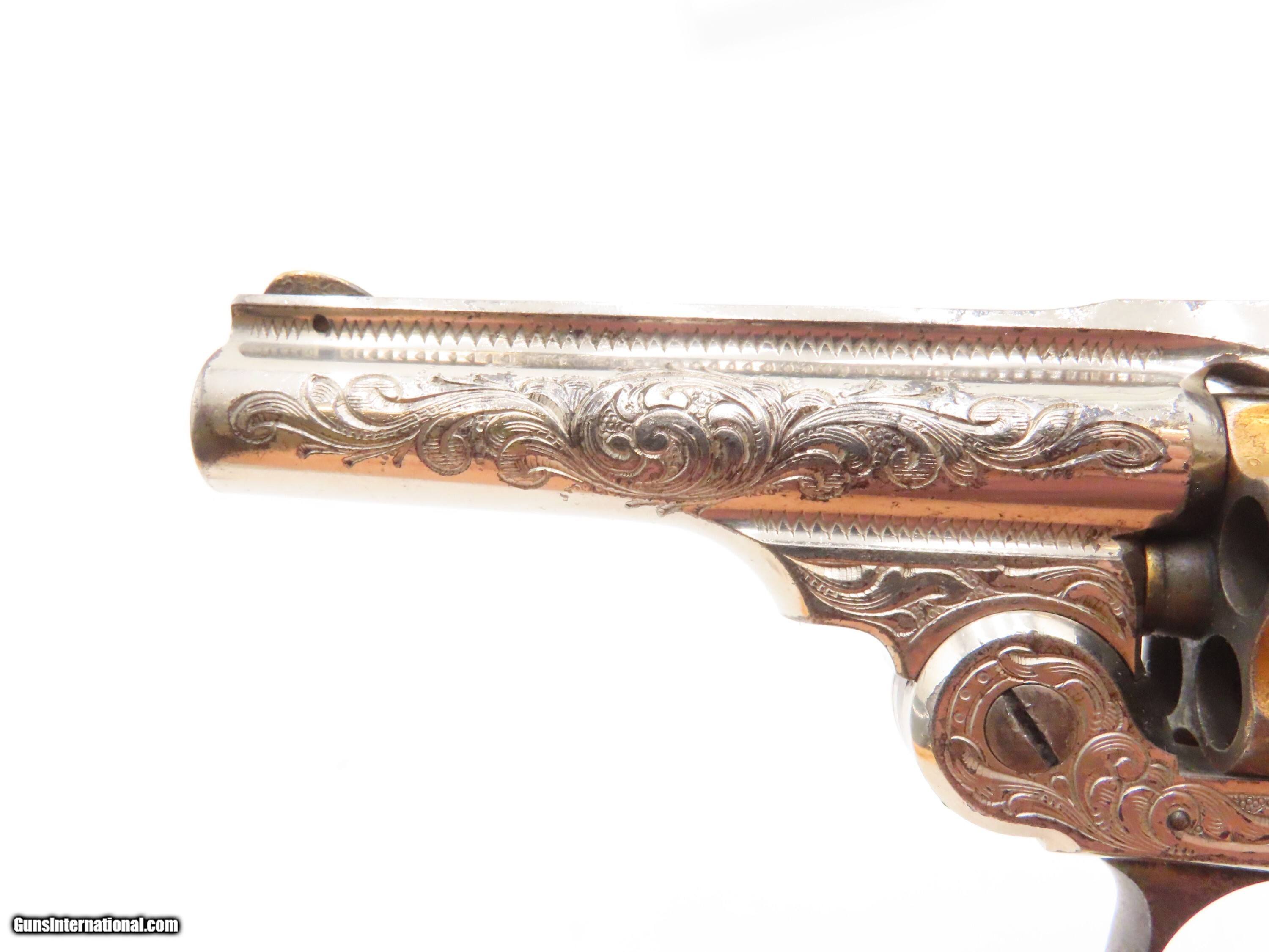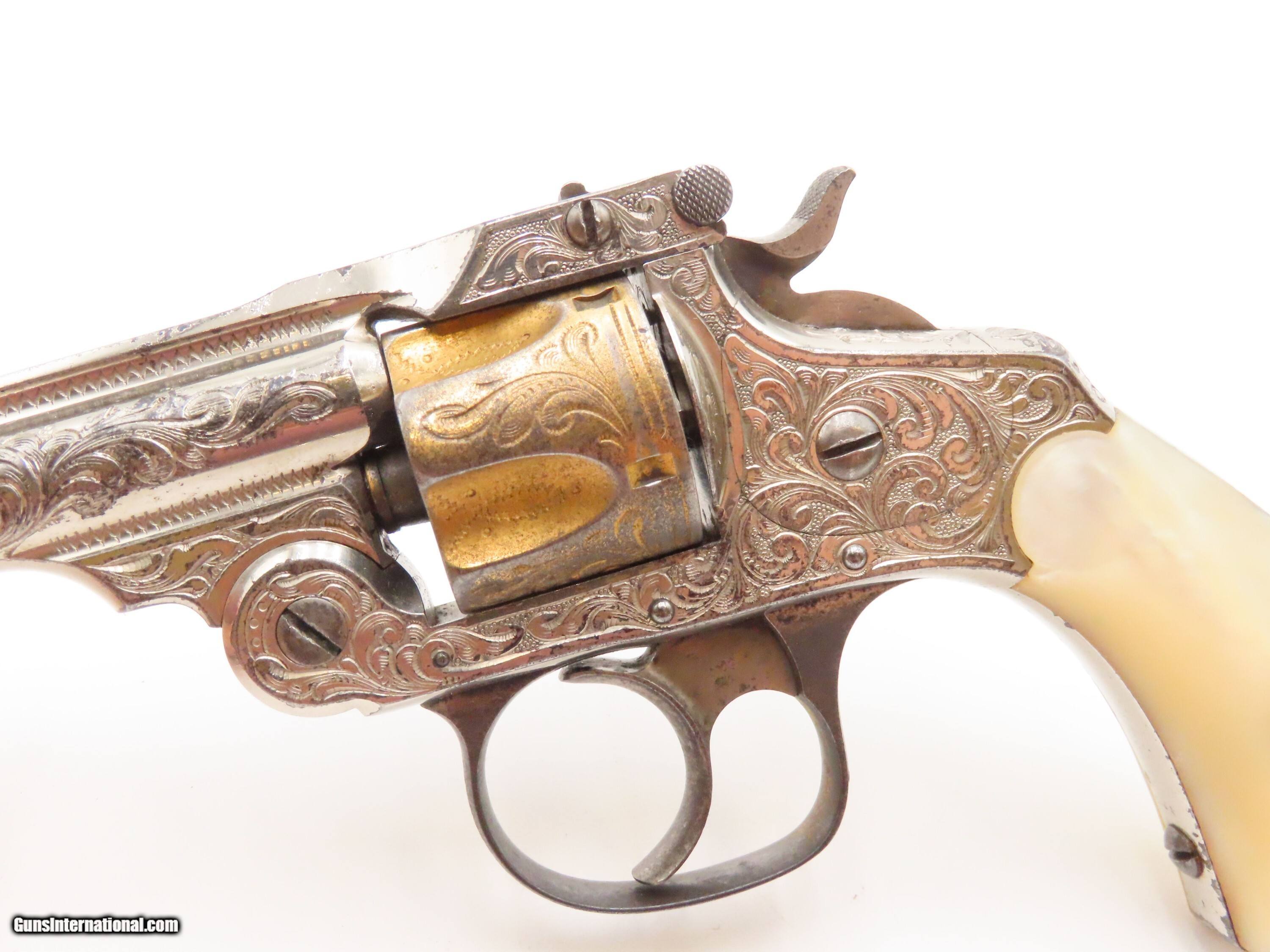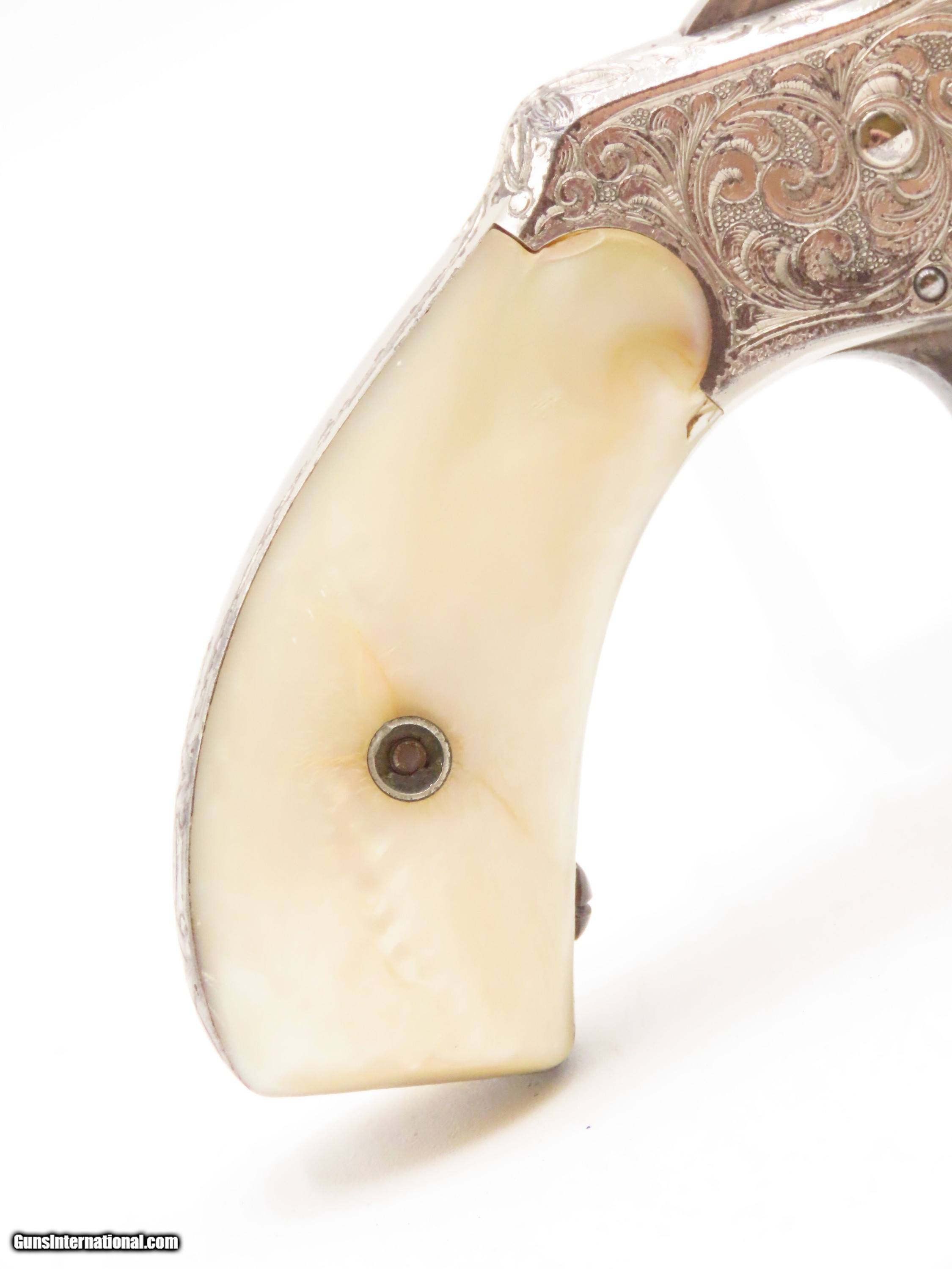 PERIOD NEW YORK ENGRAVED Antique Smith & Wesson .32 DA Revolver PEARL GRIPS Beautiful NICKEL and GOLD PLATED Self Defense Gun