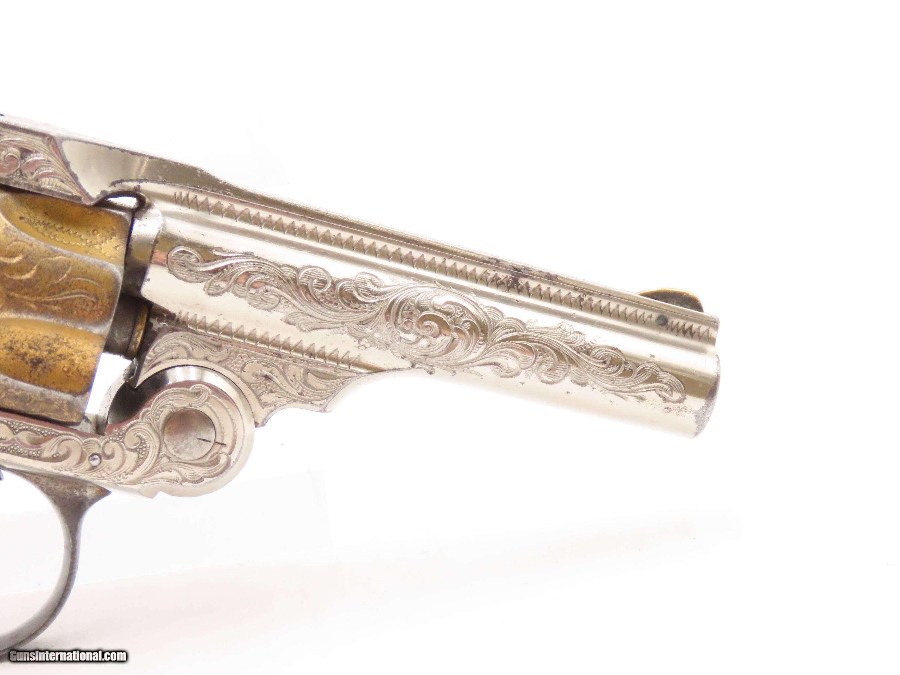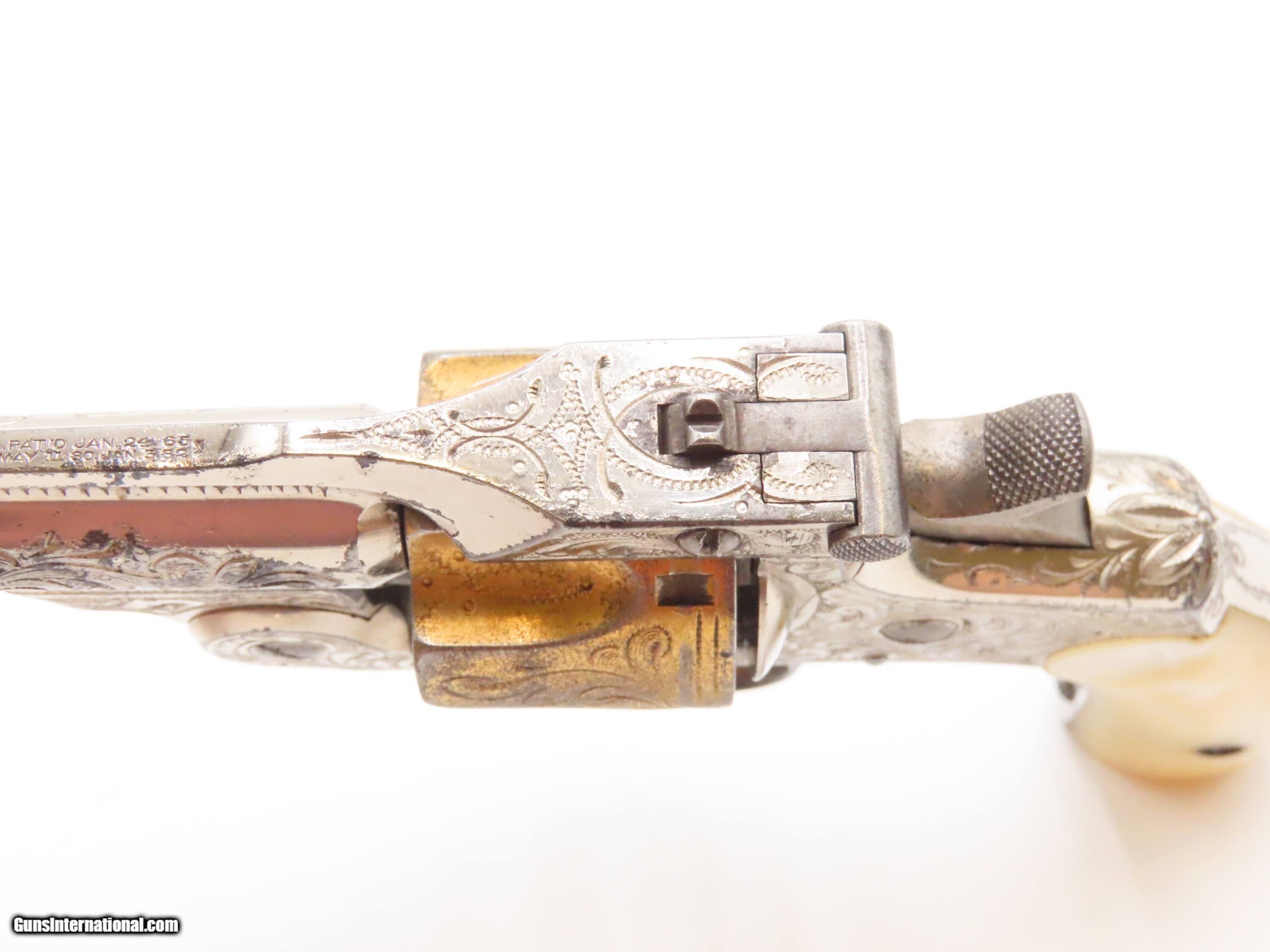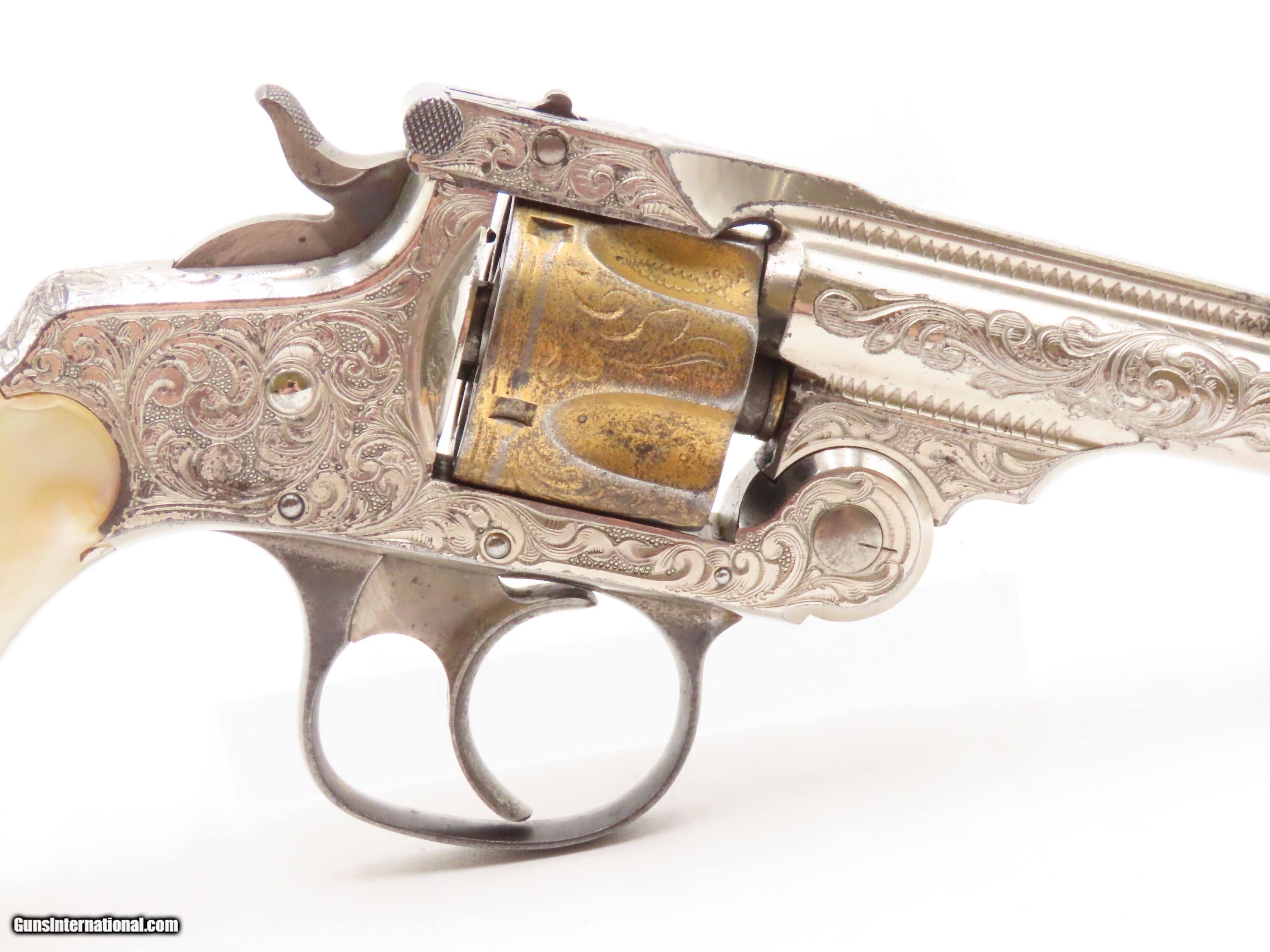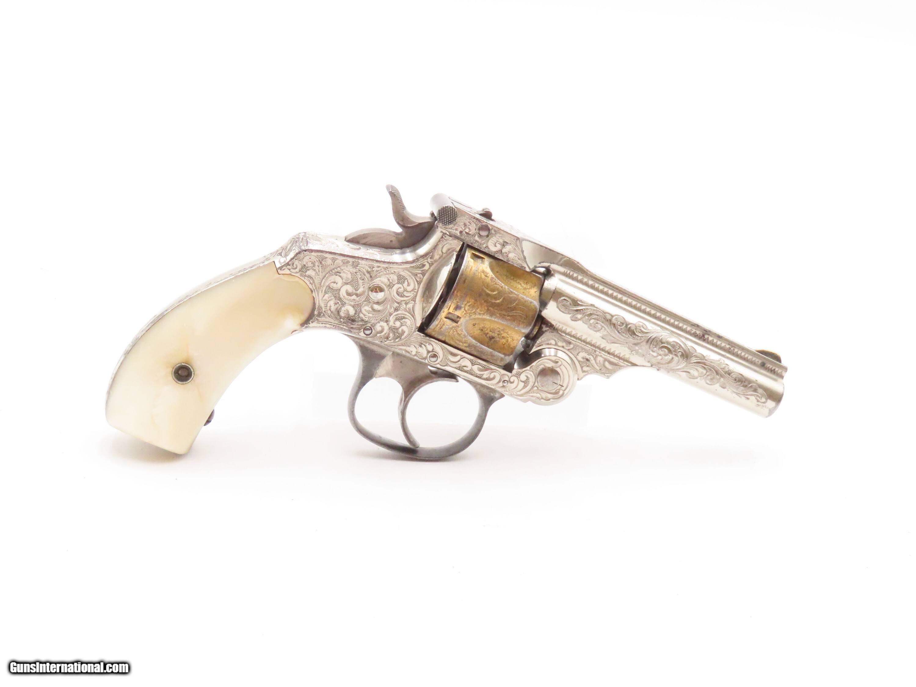 PERIOD NEW YORK ENGRAVED Antique Smith & Wesson .32 DA Revolver PEARL GRIPS Beautiful NICKEL and GOLD PLATED Self Defense Gun