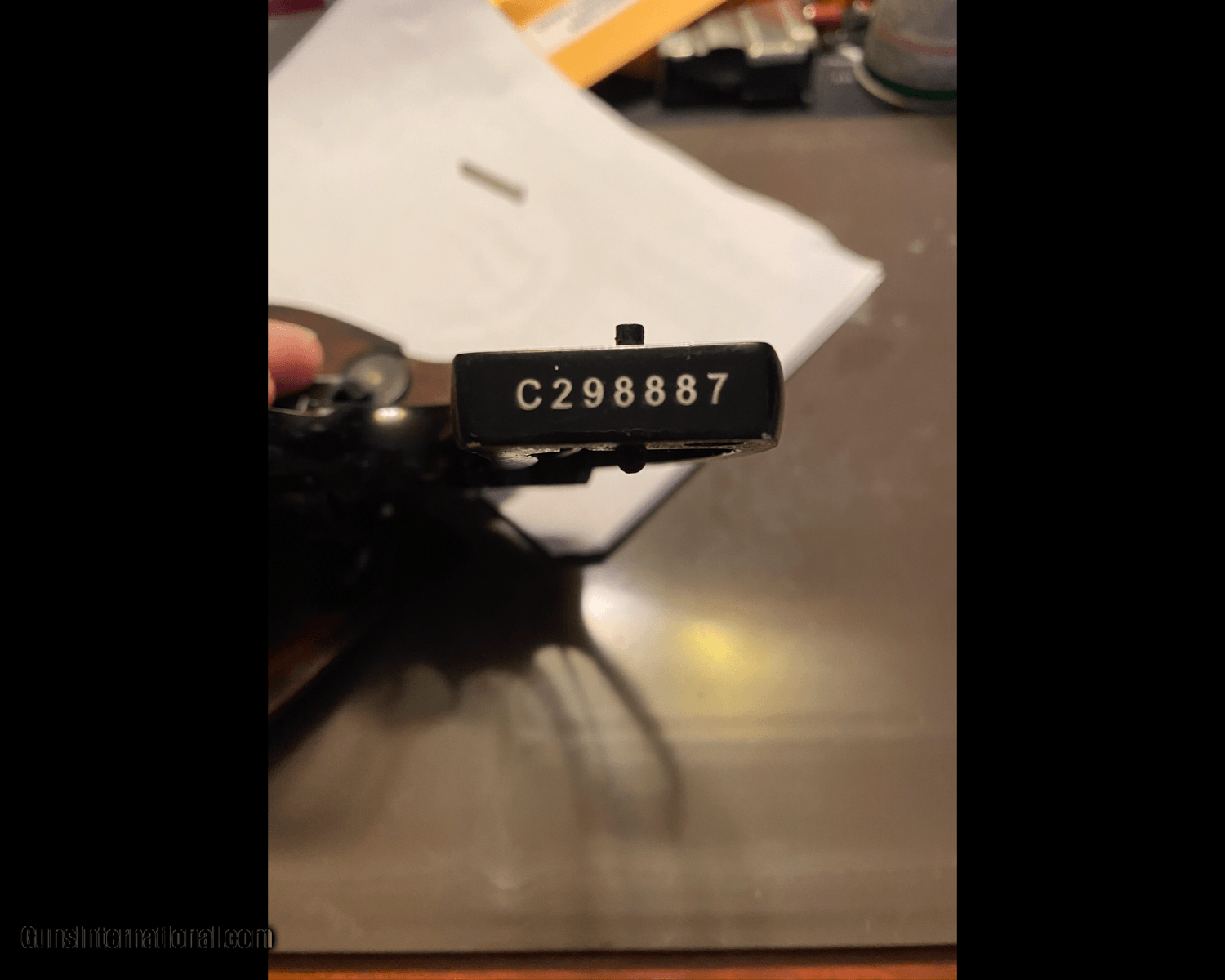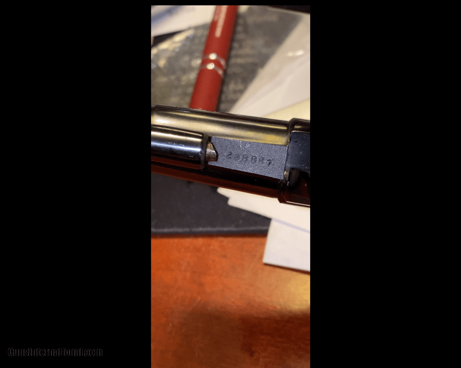 Description: This is a Factory Authenticated Smith and Wesson “Aircrewman” .38 Special Revolver. This extremely rare U.S. Air Force issued handgun was made to be extra lightweight and was factory fitted with an aluminum cylinder. It weighs only 11oz. fully loaded. It was intended for mid-range, moderate pressure .38 Special ammo only and was eventually deemed unsafe. Therefore, after being issued, the entire contract was recalled by the government and destroyed by a combination of “torching” or melting and crushing before final discarding. Very few examples escaped this destruction and typically bring very strong prices on the collector market today. A few crushed/torched examples also survived- probably taken as souvenirs by those ordered to oversee the elimination of these weapons. Of those that were salvaged, many or most were flattened almost beyond recognition and are usually missing cylinders or other major parts. This fine example of an Aircrewman is serial numbered C 298887 on the butt and is in the correct serial range for this obscure model. The back strap correctly marked “PROPERTY OF U.S. AIR FORCE.” The top strap on the left side also correctly marked “REVOLVER, LIGHTWEIGHT. M13” The frame retains the S&W logo as well as the usual Smith & Wesson address and the barrel retains the Smith & Wesson marking on the left side with the caliber designation on the right side. This is a 5-screw model with correct flat latch that was made in 1954 and retains 98% of the original deep blue/black finish. Grips are factory checkered Walnut in excellent condition, serialized to the gun. Trigger has grooved front face and retains case colors as does the hammer. Included with revolver is original Black leather USAF issued holster with lanyard in excellent condition with Air Force markings and ID number. This revolver functions perfectly, but should not be fired with standard .38 Special ammunition. An extremely important martial arm that is almost always missing from even the most complete collections, this is a chance to own an example that was issued and used by our fighter and bomber pilots in the Cold War years of the 1950s and finally recalled and destroyed by our government. The revolver qualifies as a Curio & Relic Handgun, and requires FFL Transfer or NICS Background Check. Serial Number #C298887 is found on butt of grip frame, cylinder, barrel and inside of grips. Includes factory Jenks letter from Smith and Wesson to authenticate this rare military revolver. We believe this to be the highest condition, original, complete and authenticated example of this model offered for sale anywhere. We also have four box's of the military ammunition available for this gun. SOLD Curio/Relic: Yes Handgun Caliber: .38 Special Manufacturer: Smith and Wesson Model: M13 Aircrewman Barrel Length: 2 Condition: Excellent Metal Condition: Very good Wood Condition: Very good Bore Condition: Very good Manufacture Date: 1954 |