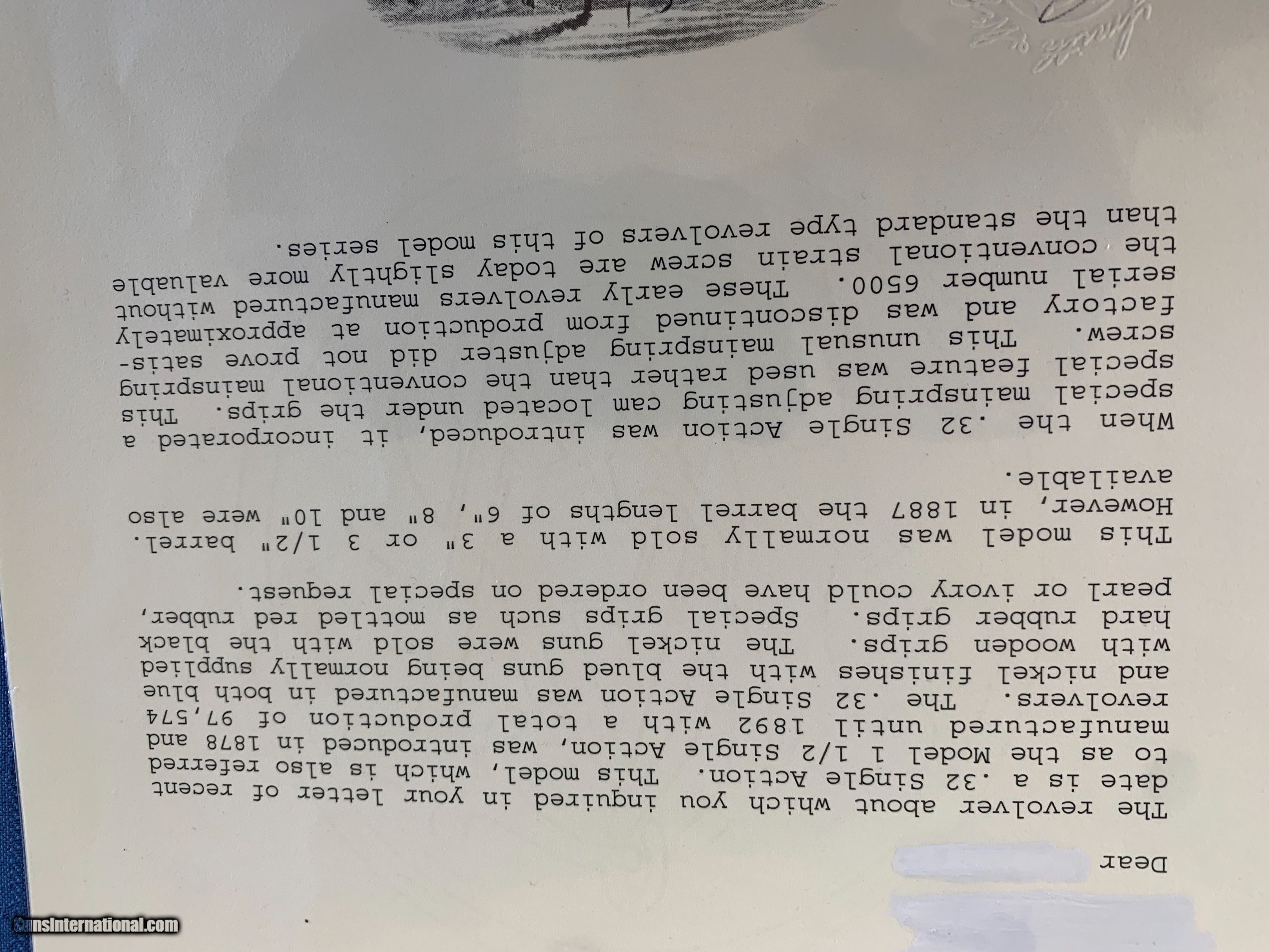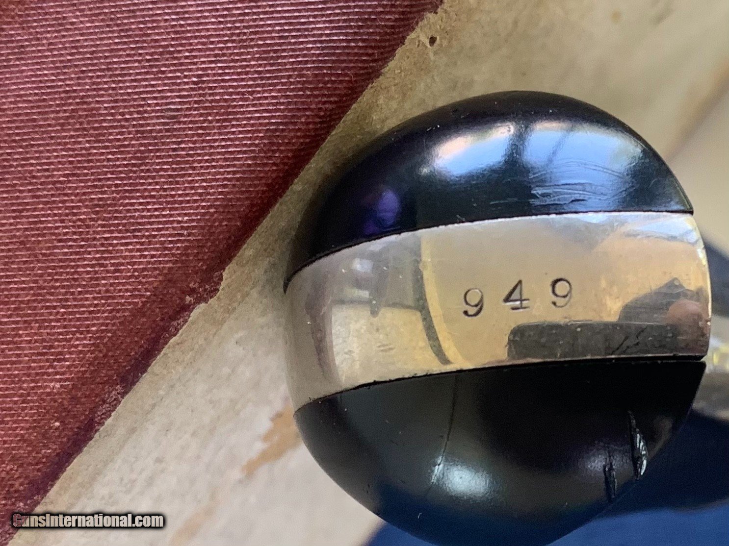 Description: Heres a near mint Smith and Wesson 1 1/2 Revolver . Serial 949 . 1st Year Production! Gun has Original Box . Gun has all of its factory original nickel finish still remaining . Markings are Crisp . Original Factory Sights are Present. Bore and mechanics are Excellent Plus Condition. Gun locks up tight . Box is in excellent condition. Comes with a Factory Letter. Super nice Very Rare Original Boxed Set ! Please review my photos and email me with any questions ? 3 day inspection as allways. Thank you for looking Little Jo SOLD Antique: Yes Handgun Caliber: .32 S&W Manufacturer: S&W Model: 1 1/2 Serial Number: 949 Condition: Near mint |