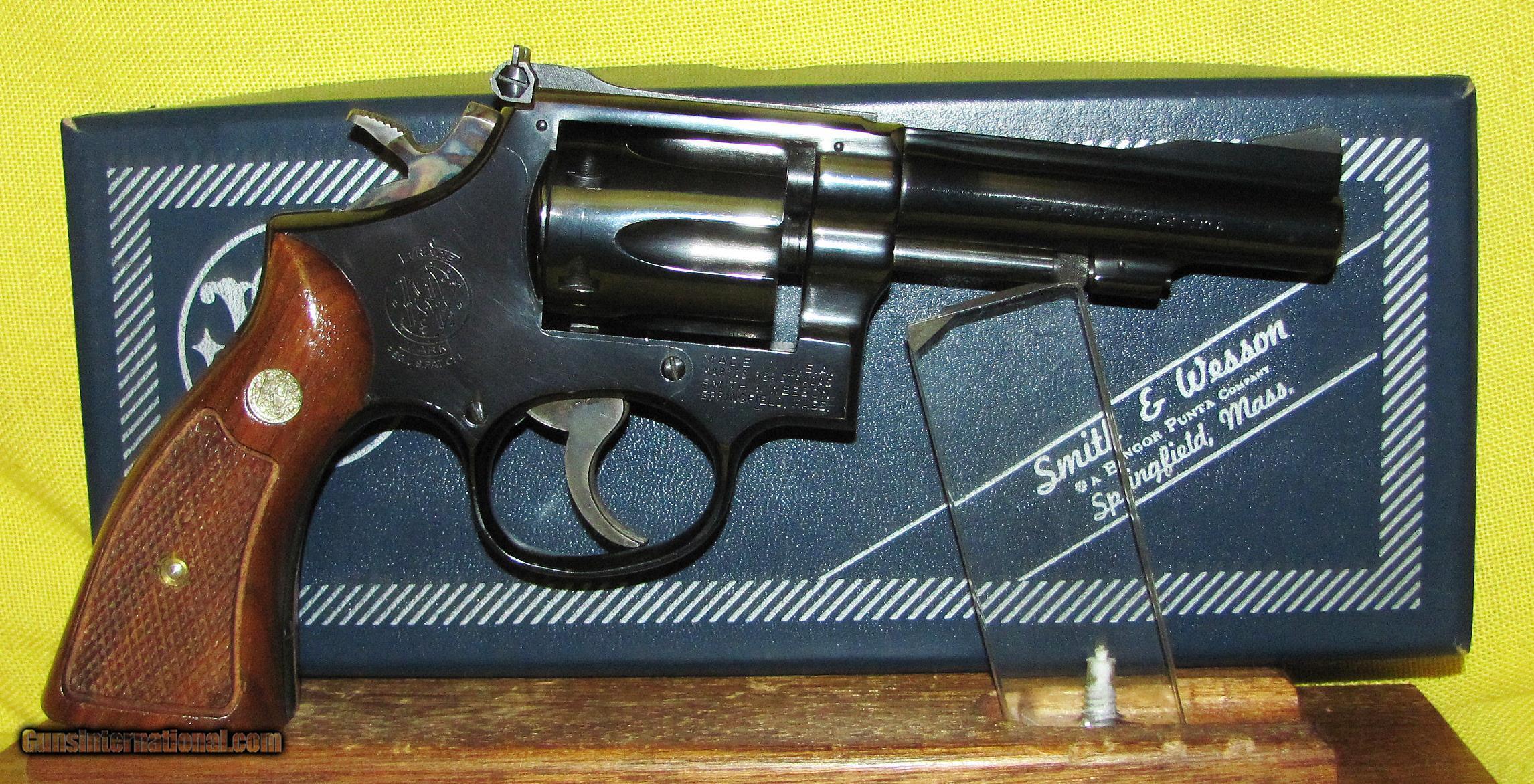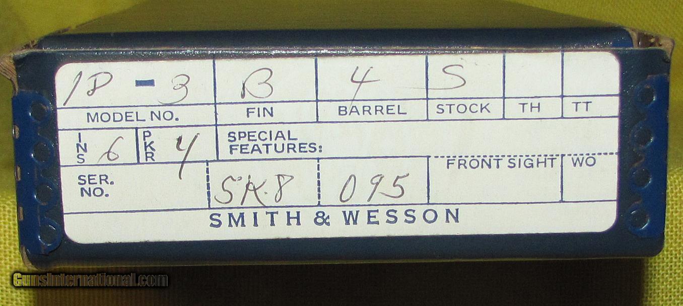 Description: S&W 18-3 COMBAT MASTERPIECE IN .22 L.R. CAL., WITH 4" BARREL. COLOR BLUE. CONDITION 98%+ LIKE NEW. SERIAL NUMBER 5K8095. S&W MODEL 18-3 COMBAT MASTERPIECE, BORE IS LIKE NEW, GRIPS ARE LIKE NEW, 98%+ FACTORY FINISH, COMES WITH ORIGINAL TWO-PIECE BLUE HINGED BOX WITH MANUAL AND WARRANTY CARD, LIKE NEW. OUR NEW STOCK # D32935. SOLD |