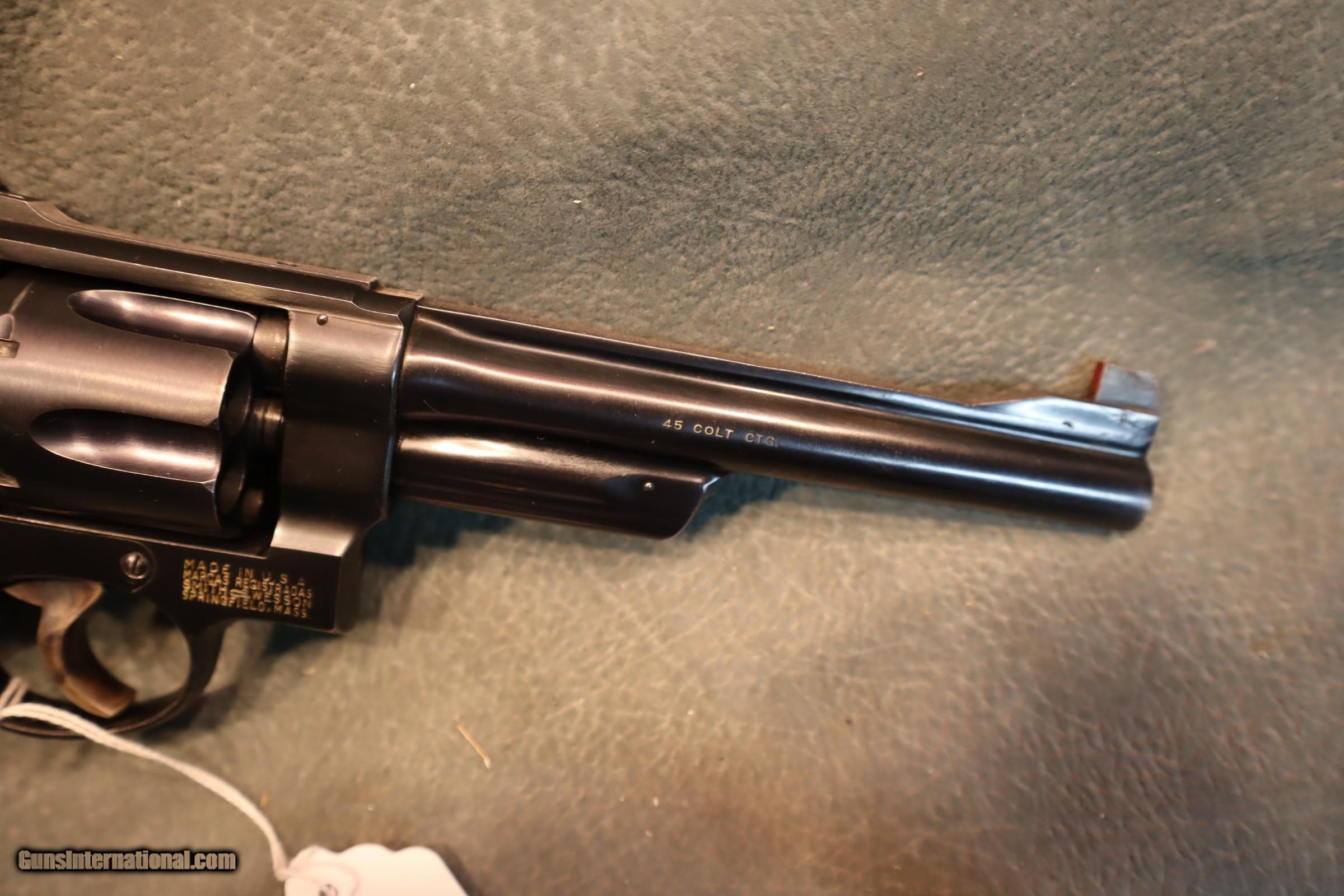 Description: S+W 1950 45 Target in the rare 45 Long Colt caliber,Pre 26 5 screw,6 1/2" barrel,serial #S147361,one on 200 made. GUN COLLECTIONS WANTED FOR CASH! We buy, sell, consign and trade new and used firearms.We will pay finders fees and travel for large collections. This is our 47th year in business. We offer 90 day layaways with 20% down. No return on layaways. Firearms will need to be transferred through a FFL dealer. Prices reflect a cash discount. There will be 3% added to credit card sales. We trade for gold and silver. THANK YOU! SOLD |
