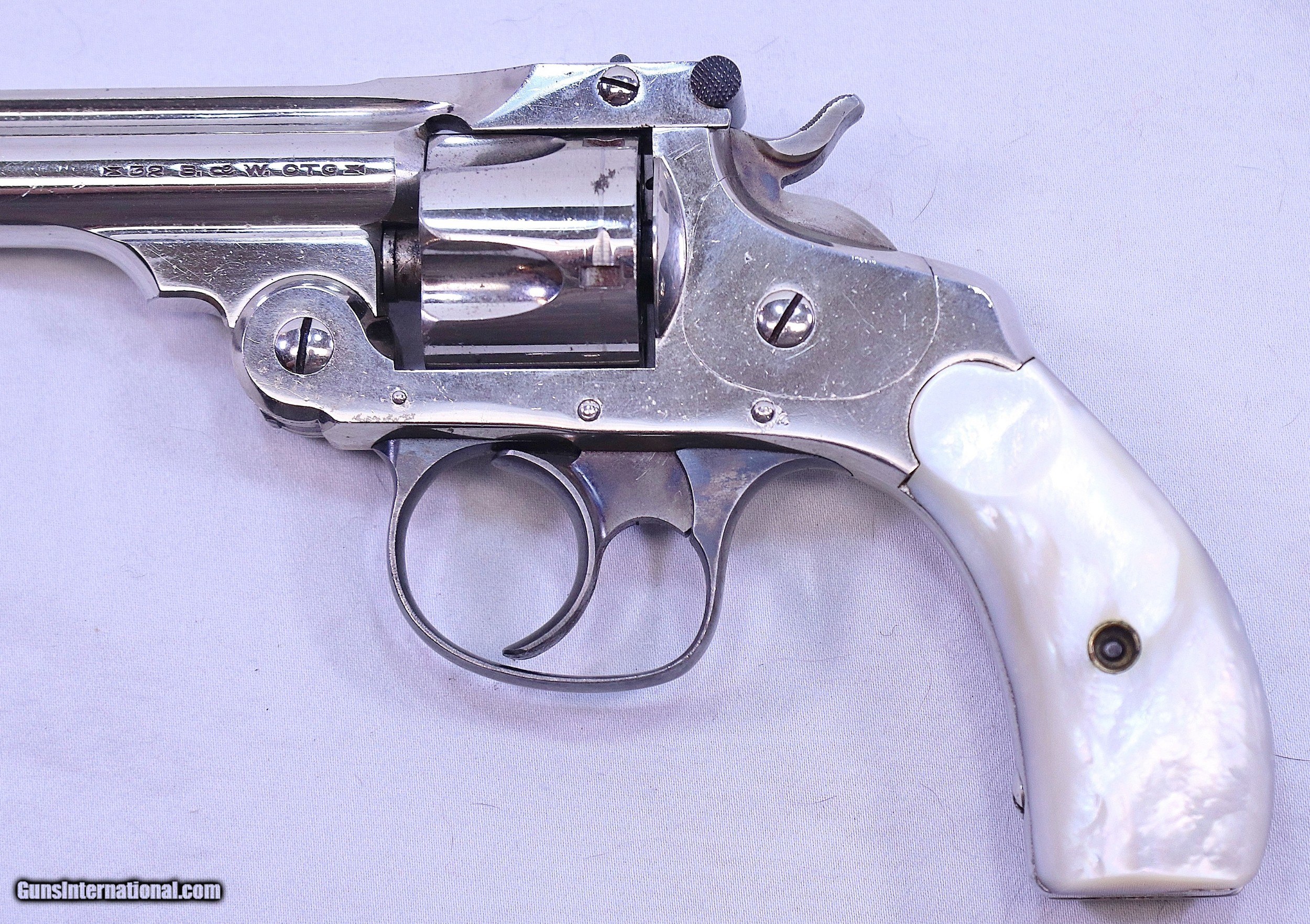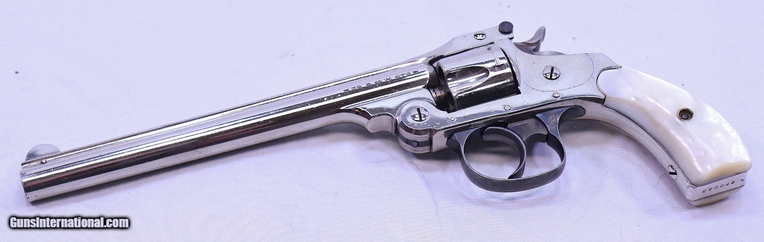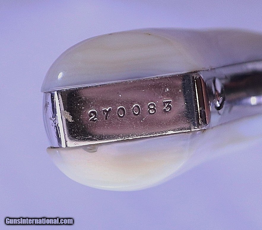 Description: This S&W .32 Double Action Revolver has a rare 6 inch barrel. It has beautiful pearl grips that are in perfect condition. It was made around 1909 and now 111 years later it remains in excellent condition. It has every appearance of being unfired. The bolster is un-marred and the barrel is bright and sharp with the exception of a few storage spots. The nickel plating is in Exc. condition with scattered minor blemishes that can be seen in the photos. The action is very tight and fully functional. A very nice example, fresh from long term storage in someones "sock drawer". A great addition to any S&W collection. .32 S&W with a 6” barrel, Serial Number: 270083, FFL Required Beaver Creek Arms TERMS & CONDITIONS Objective: As a collector of 35 years and Licensed Firearms Dealer since 1989 I have a clear definition of a satisfactory transaction. I will be paid as we agreed to, and you will be satisfied with your purchase. My goal is to establish a client list of satisfied repeat customers who will recommend me to other collectors. It’s just that simple. Exiled Saudi princes with secret funds needing change from an over paid purchase need not apply. Notice: ALL Federal, State, & Local firearms laws will be followed. I will take NO shortcuts in the process of a legal sale or transfer, so please don’t ask. SHIPPING: Normally shipments are made via U.S.P.S. Priority Mail, Insured, with a return receipt. Typical Packing, Shipping and Insurance cost for a handgun is $30.00, and for a Long Gun is $45.00. Checks & Payment are to be made to: Steve Clark Mail to: 380 Beaver Creek Rd. Dillsburg PA 17019 Availability: All items are in stock and available for immediate shipment. Please call or email and an Item will be held up to a week with your Name, Address, & Phone Number. Items marked Reserved are being held for awaiting payment or on layaway. If you are interested in a reserved item, please call or E-Mail to be placed on a backup list. FIREARMS: Modern firearms, post 1898, can only be shipped to a Type 01 Federal Firearms License address. Curio-Relic firearms, as defined by the BATF list, can usually be shipped to a Type 03 Collectors License address. Some states have additional restrictions such as CA, CT, DC, IL, MD, NJ and NY. A signed valid FFL license copy either mailed or emailed will be required for shipment to only the license address. Antique firearms, pre 1898 do not require a Federal License. For purchase, a copy of a Government Issued Identification (Drivers License, Etc), showing date of birth and current address will be required. GUARANTEE: Your complete satisfaction is assured, see objective above. If you are not satisfied, please contact me within 3 days of receipt. Please don’t fire the weapon, safety, function and accuracy are NOT Guaranteed. Any weapon offered by Beaver Creek Arms is never test fired nor is there any representation the gun is functional and safe to fire. These guns are sold for collectors and only represented as used firearms that must be checked by a competent person, observe all the necessary safety precautions prior to attempting to load and fire one of these weapons RETURNS: Returns must be made within 3 days of receipt. They must be received in exactly the same condition with no parts exchanged. If it has been altered, damaged, or fired, a refund will not be made. Packing, shipping and insurance cost will not be refunded. All layaway purchases are returnable for merchandise credit only. Sales: All sales are made with the buyer’s full acceptance of the stated terms of sale. All sales are made in strict compliance with all Federal Firearms Laws. No items contained in thissite are offered for sale where prohibited by any Federal, State or Local laws. By ordering, the buyer certifies that their purchase will be in full compliance with all Federal, State and Local laws. All transactions shall be deemed to occur in Pennsylvania regardless whether by telephone, mail, internet or the physical location of the buyer. All transactions will be subject only to Federal and Pennsylvania State law. Any disputes will be resolved in a Pennsylvania Court. PAYMENT: Bank check, Personal check, and Money Orders are preferred. Visa and MasterCard are accepted with a 3% processing fee. For Visa and MasterCard orders please provide the account number, code number, expiration date, name on card, phone number and card billing address. This information can be phoned in, or E-Mailed. All orders must be paid in advance, C.O.D. orders are not accepted. Checks, both Bank and Personal must clear before the order will be shipped, usually a 2 week delay. LAYAWAYS: A 20% deposit is required. Balance is due in 60 days. Deposits are non-refundable and are forfeited after 60 days. Layaway sales are returnable for merchandise credit only. SALES TAX: Pennsylvania state sales tax is 6% for in state purchases. The payment of other states sales tax, if applicable, for shipped items is the buyers responsibility. DISCREET: Client information will remain Confidential. Your privacy is protected SOLD Curio/Relic: Yes |