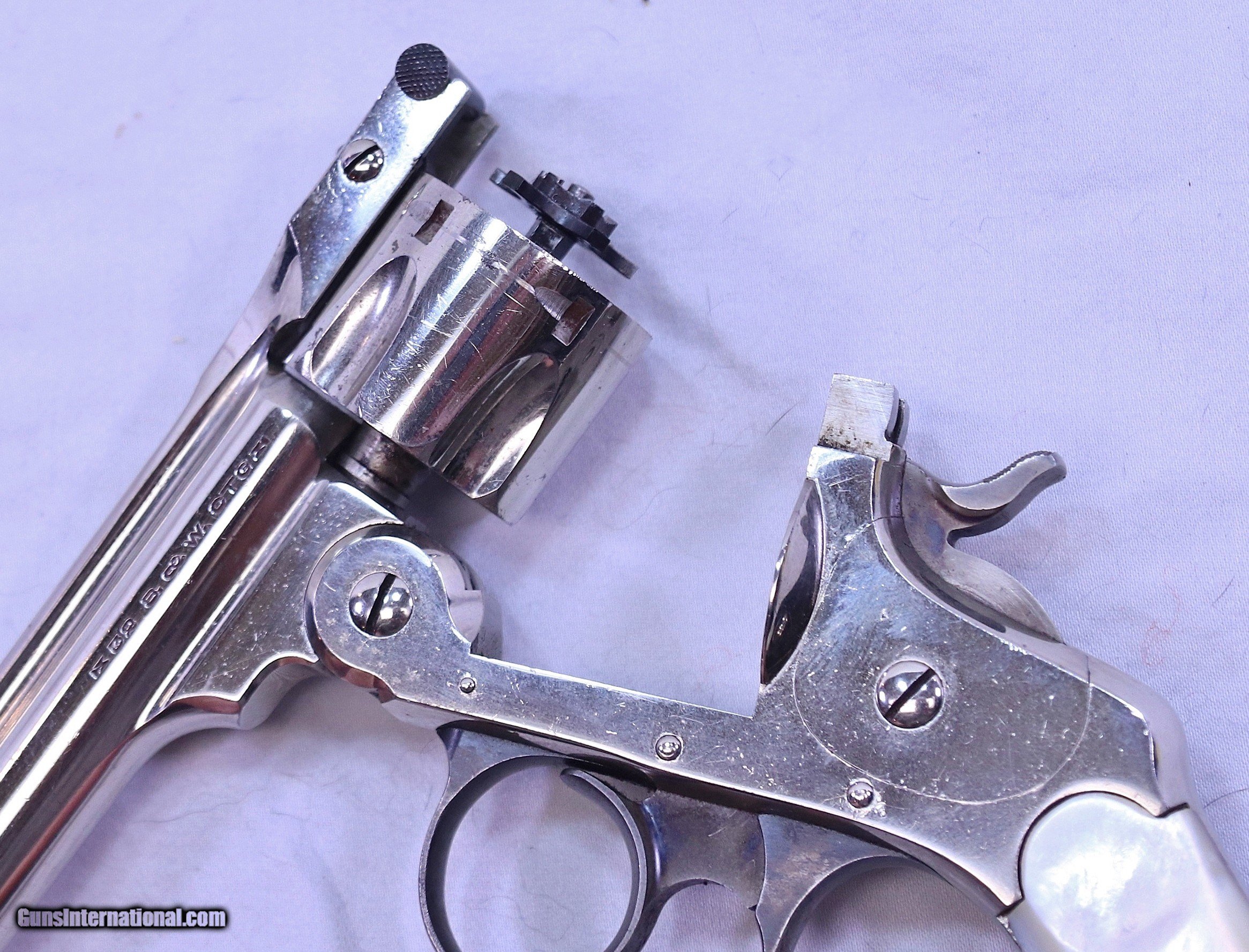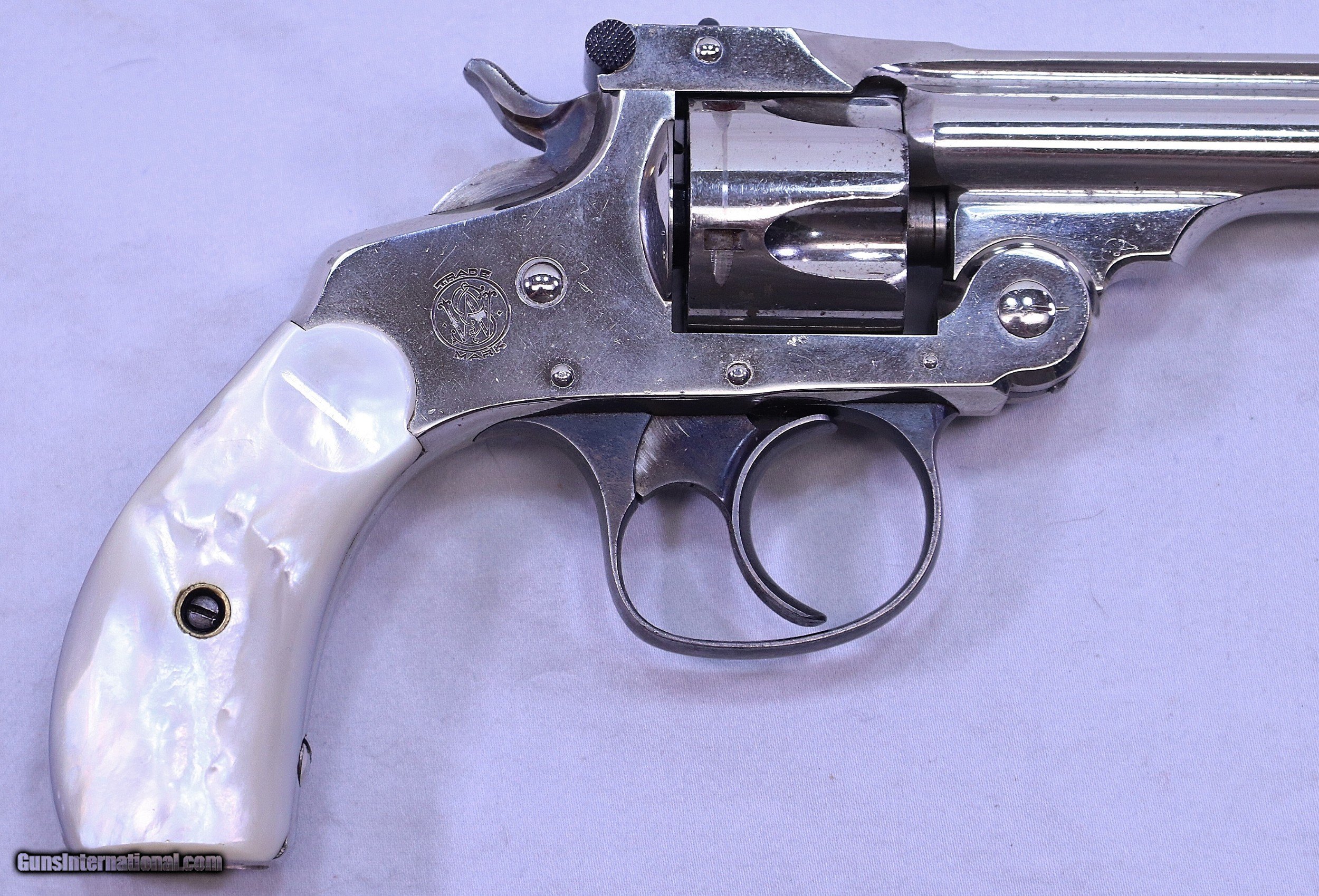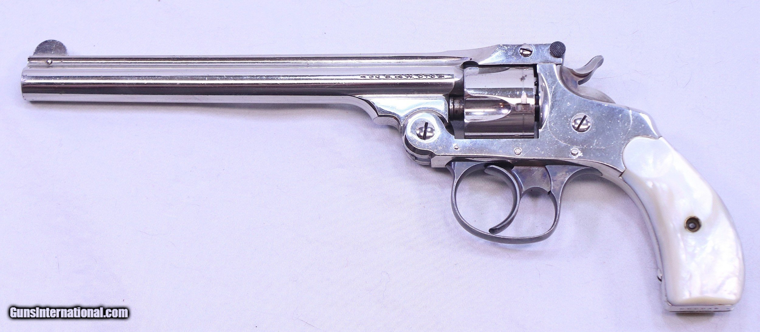 Description: This S&W .32 Double Action Revolver has a rare 6 inch barrel. It has beautiful pearl grips that are in perfect condition. It was made around 1909 and now 111 years later it remains in excellent condition. It has every appearance of being unfired. The bolster is un-marred and the barrel is bright and sharp with the exception of a few storage spots. The nickel plating is in Exc. condition with scattered minor blemishes that can be seen in the photos. The action is very tight and fully functional. A very nice example, fresh from long term storage in someones "sock drawer". A great addition to any S&W collection. .32 S&W with a 6” barrel, Serial Number: 270083, FFL Required Beaver Creek Arms TERMS & CONDITIONS Objective: As a collector of 35 years and Licensed Firearms Dealer since 1989 I have a clear definition of a satisfactory transaction. I will be paid as we agreed to, and you will be satisfied with your purchase. My goal is to establish a client list of satisfied repeat customers who will recommend me to other collectors. It’s just that simple. Exiled Saudi princes with secret funds needing change from an over paid purchase need not apply. Notice: ALL Federal, State, & Local firearms laws will be followed. I will take NO shortcuts in the process of a legal sale or transfer, so please don’t ask. SHIPPING: Normally shipments are made via U.S.P.S. Priority Mail, Insured, with a return receipt. Typical Packing, Shipping and Insurance cost for a handgun is $30.00, and for a Long Gun is $45.00. Checks & Payment are to be made to: Steve Clark Mail to: 380 Beaver Creek Rd. Dillsburg PA 17019 Availability: All items are in stock and available for immediate shipment. Please call or email and an Item will be held up to a week with your Name, Address, & Phone Number. Items marked Reserved are being held for awaiting payment or on layaway. If you are interested in a reserved item, please call or E-Mail to be placed on a backup list. FIREARMS: Modern firearms, post 1898, can only be shipped to a Type 01 Federal Firearms License address. Curio-Relic firearms, as defined by the BATF list, can usually be shipped to a Type 03 Collectors License address. Some states have additional restrictions such as CA, CT, DC, IL, MD, NJ and NY. A signed valid FFL license copy either mailed or emailed will be required for shipment to only the license address. Antique firearms, pre 1898 do not require a Federal License. For purchase, a copy of a Government Issued Identification (Drivers License, Etc), showing date of birth and current address will be required. GUARANTEE: Your complete satisfaction is assured, see objective above. If you are not satisfied, please contact me within 3 days of receipt. Please don’t fire the weapon, safety, function and accuracy are NOT Guaranteed. Any weapon offered by Beaver Creek Arms is never test fired nor is there any representation the gun is functional and safe to fire. These guns are sold for collectors and only represented as used firearms that must be checked by a competent person, observe all the necessary safety precautions prior to attempting to load and fire one of these weapons RETURNS: Returns must be made within 3 days of receipt. They must be received in exactly the same condition with no parts exchanged. If it has been altered, damaged, or fired, a refund will not be made. Packing, shipping and insurance cost will not be refunded. All layaway purchases are returnable for merchandise credit only. Sales: All sales are made with the buyer’s full acceptance of the stated terms of sale. All sales are made in strict compliance with all Federal Firearms Laws. No items contained in thissite are offered for sale where prohibited by any Federal, State or Local laws. By ordering, the buyer certifies that their purchase will be in full compliance with all Federal, State and Local laws. All transactions shall be deemed to occur in Pennsylvania regardless whether by telephone, mail, internet or the physical location of the buyer. All transactions will be subject only to Federal and Pennsylvania State law. Any disputes will be resolved in a Pennsylvania Court. PAYMENT: Bank check, Personal check, and Money Orders are preferred. Visa and MasterCard are accepted with a 3% processing fee. For Visa and MasterCard orders please provide the account number, code number, expiration date, name on card, phone number and card billing address. This information can be phoned in, or E-Mailed. All orders must be paid in advance, C.O.D. orders are not accepted. Checks, both Bank and Personal must clear before the order will be shipped, usually a 2 week delay. LAYAWAYS: A 20% deposit is required. Balance is due in 60 days. Deposits are non-refundable and are forfeited after 60 days. Layaway sales are returnable for merchandise credit only. SALES TAX: Pennsylvania state sales tax is 6% for in state purchases. The payment of other states sales tax, if applicable, for shipped items is the buyers responsibility. DISCREET: Client information will remain Confidential. Your privacy is protected SOLD Curio/Relic: Yes |