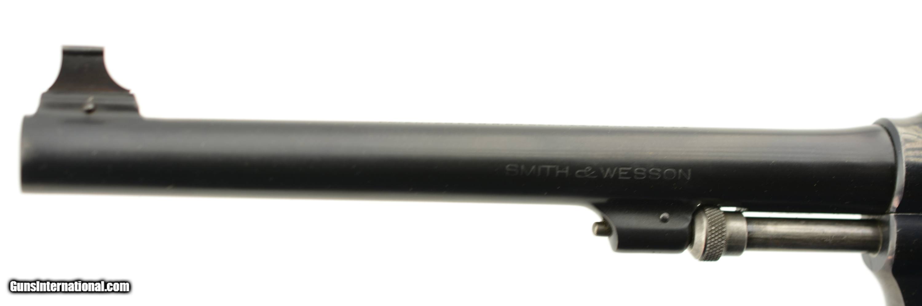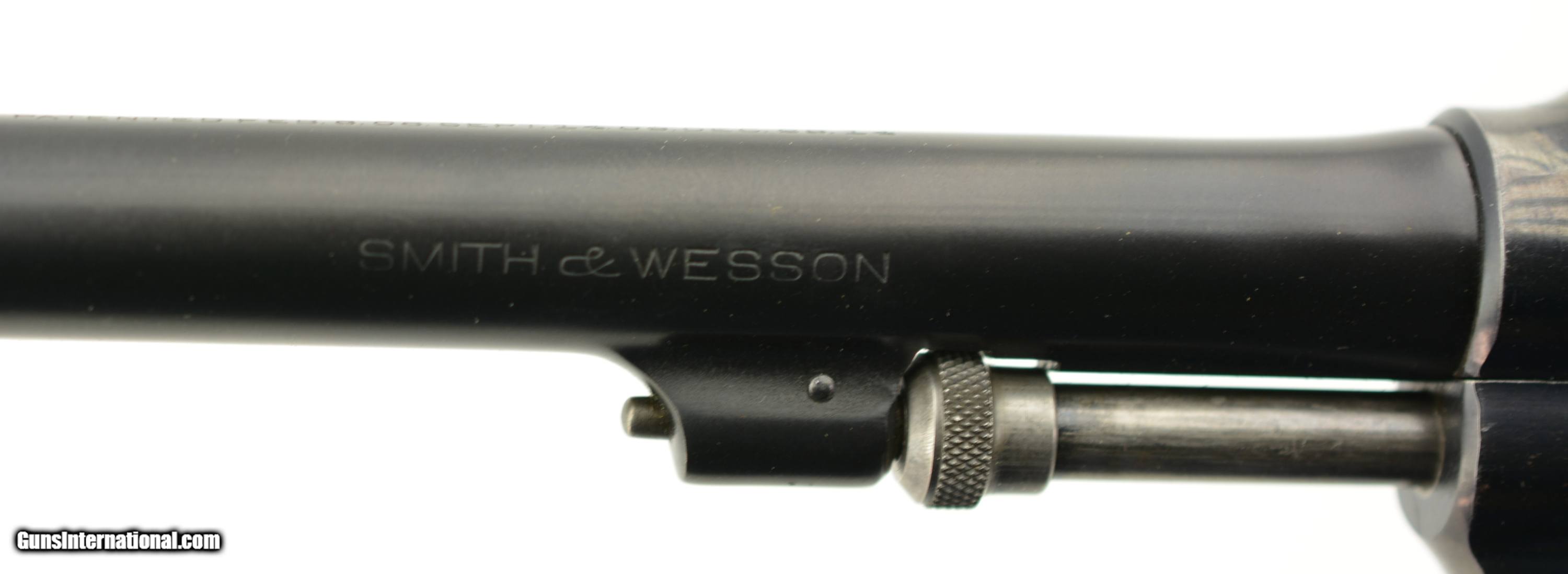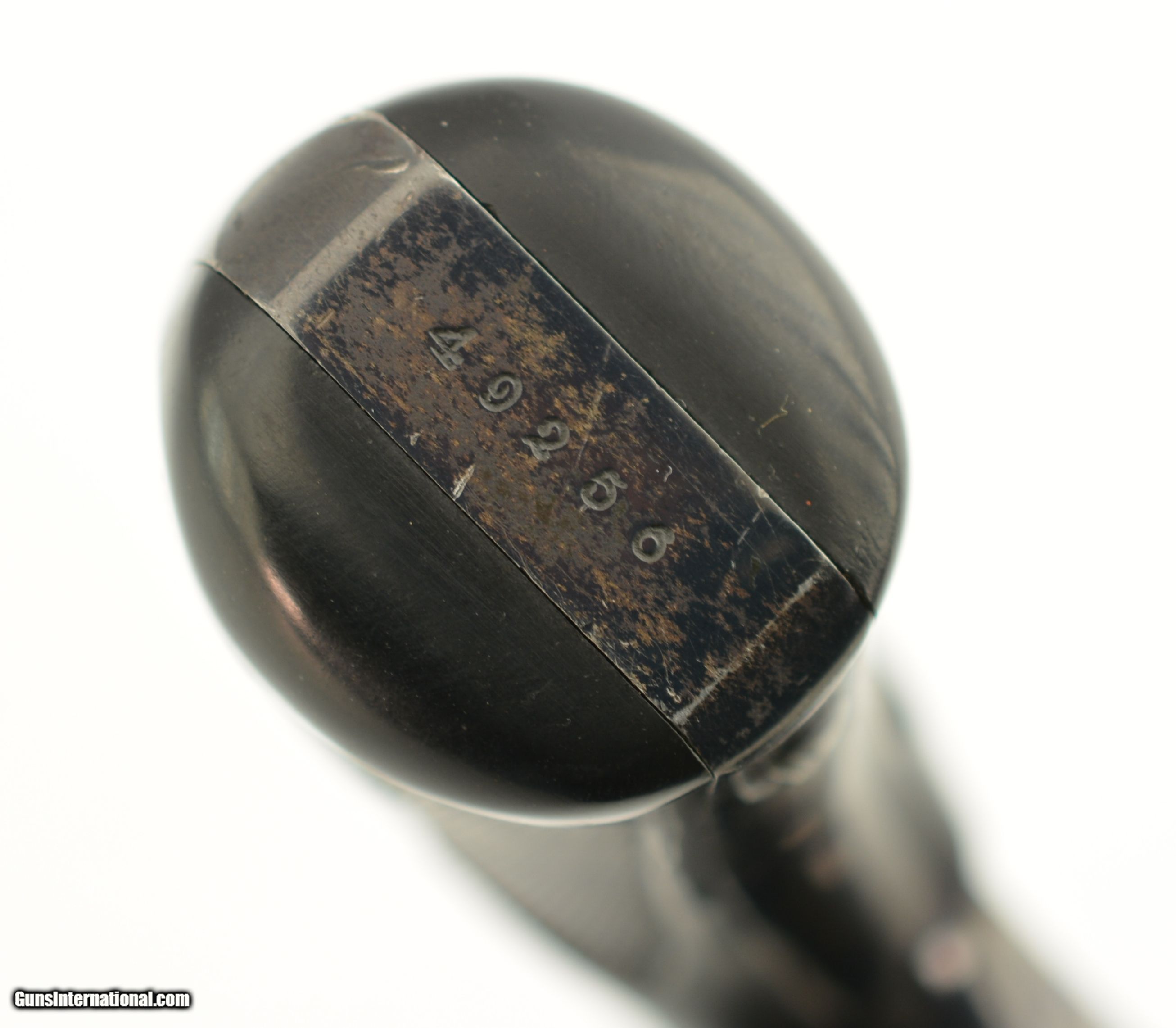 Description: Serial #49256, .32 S&W Long, 6" barrel with an excellent, bright bore. This is a ca. 1906-made revolver that has matching numbers on the frame, barrel, cylinder, yoke, and extractor with the barrel (installed by the factory in 1952) retaining 99% plus of the original blue finish. The frame and cylinder retain about 90-92% of the original, slightly glossier blue finish with silvering along the high edges, a bright turn-ring on the cylinder, and general fading along the ejector rod. The hammer and trigger have a commensurate amount of original color case-hardening remaining, again with silvering along the edges, and the hard rubber S&W grips are in fine shape, with only mild flattening of the points and a few small handling marks and blemishes. The gripstrap is further marked with a S&W rework stamp on the inside of the left panel: "3.52 (star)". The lock-up is tight, and the action is fully functional. This is a fine example of a rare .32 HE Target revolver, with a factory replaced barrel. FFL or C&R SOLD Curio/Relic: Yes Manufacturer: S&W Model: .32 HE Serial Number: 49256 Caliber Info: .32 S&W Gauge Info: .32 S&W |